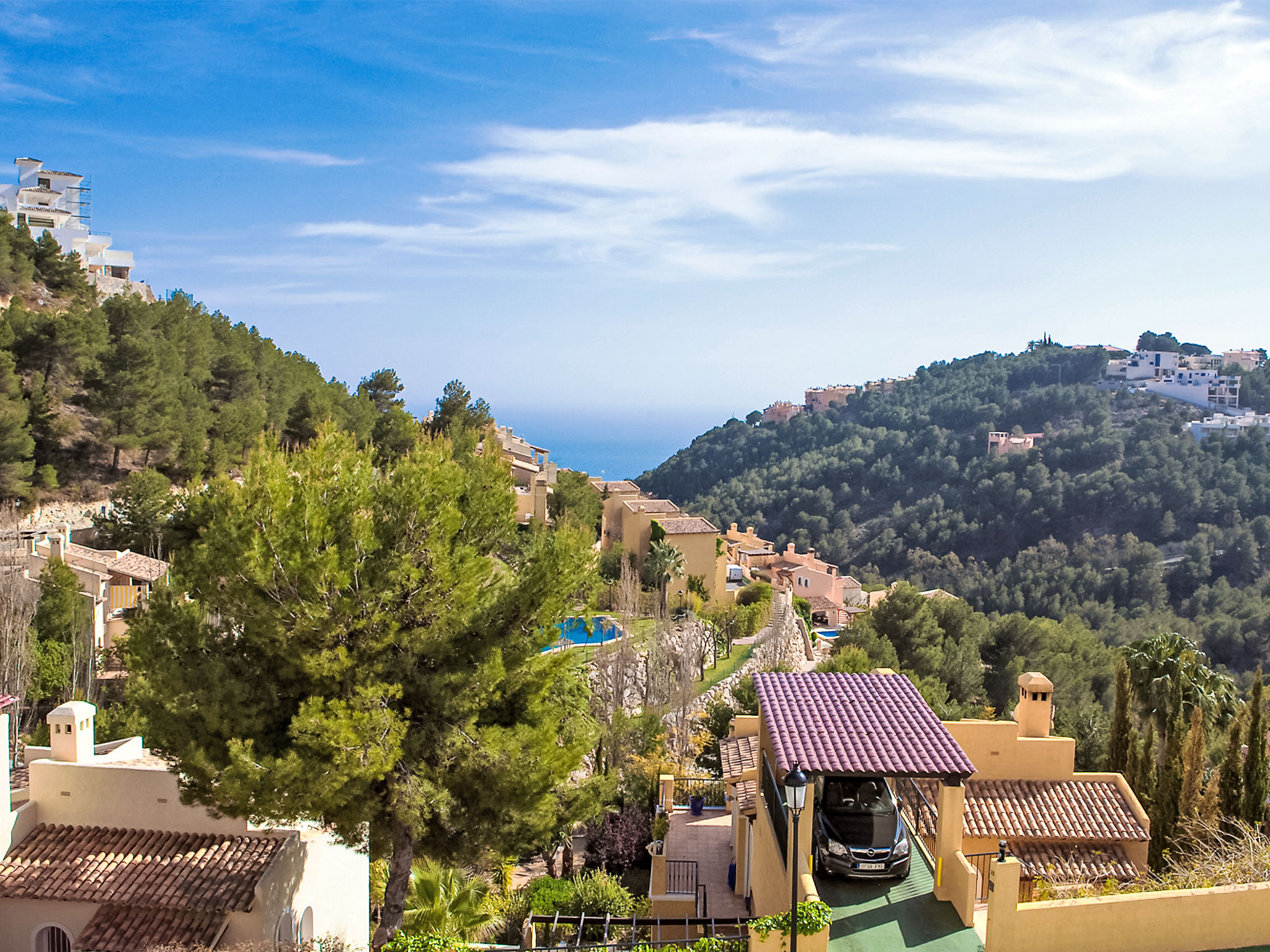 Altea Hills: Gemütliches Appartementhaus "Los Lirios I", Baujahr 2011. 7.5 km vom Zentrum von Altea, ruhige Lage, 3.9 km vom Meer, 3.9 km vom Strand, in einer Sackgasse, Richtung Süden. Zur Mitbenutzung: wunderschöner Garten zum Entspannen, Schwimmbad (20 x 7 m, saisonale Verfügbarkeit: 01.Jan.-31.Dez.). Aussendusche. Im Hause: Fahrstuhl. Parkplatz (überdacht). Einkaufsgeschäft 7.5 km, Supermarkt 3.5 km, Restaurant 4.7 km, Bar 4.7 km, Sandstrand "Calpe" 11 km, Steinstrand 3.5 km. Sporthafen 4.7 km, Jacht-Hafen 4.7 km, Golfplatz (9 Loch) 6 km, Kinderspielplatz 100 m. Nahe gelegene Sehenswürdigkeiten: Mundomar, Aqualandia, Terra Natura, Terra Mítica, Benidorm Palace en Benidorm, Club de Golf Don Cayo 6 km, Club Villaitana Golf 22.4 km. Wandergebiete: Sierra Bernia. Bitte beachten: Fahrzeug empfohlen. Geeignet für Familien, geeignet für Senioren. Bewachte Residenz. Die Residenz wird durch elektrische Tore geschlossen. In diesem Haus sind weitere Ferienwohnungen mietbar.