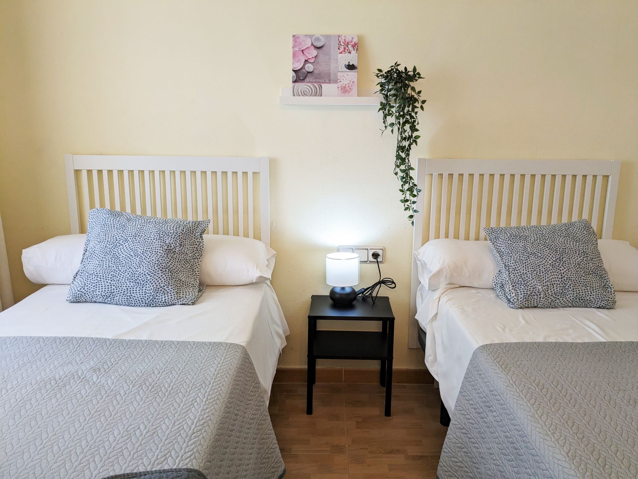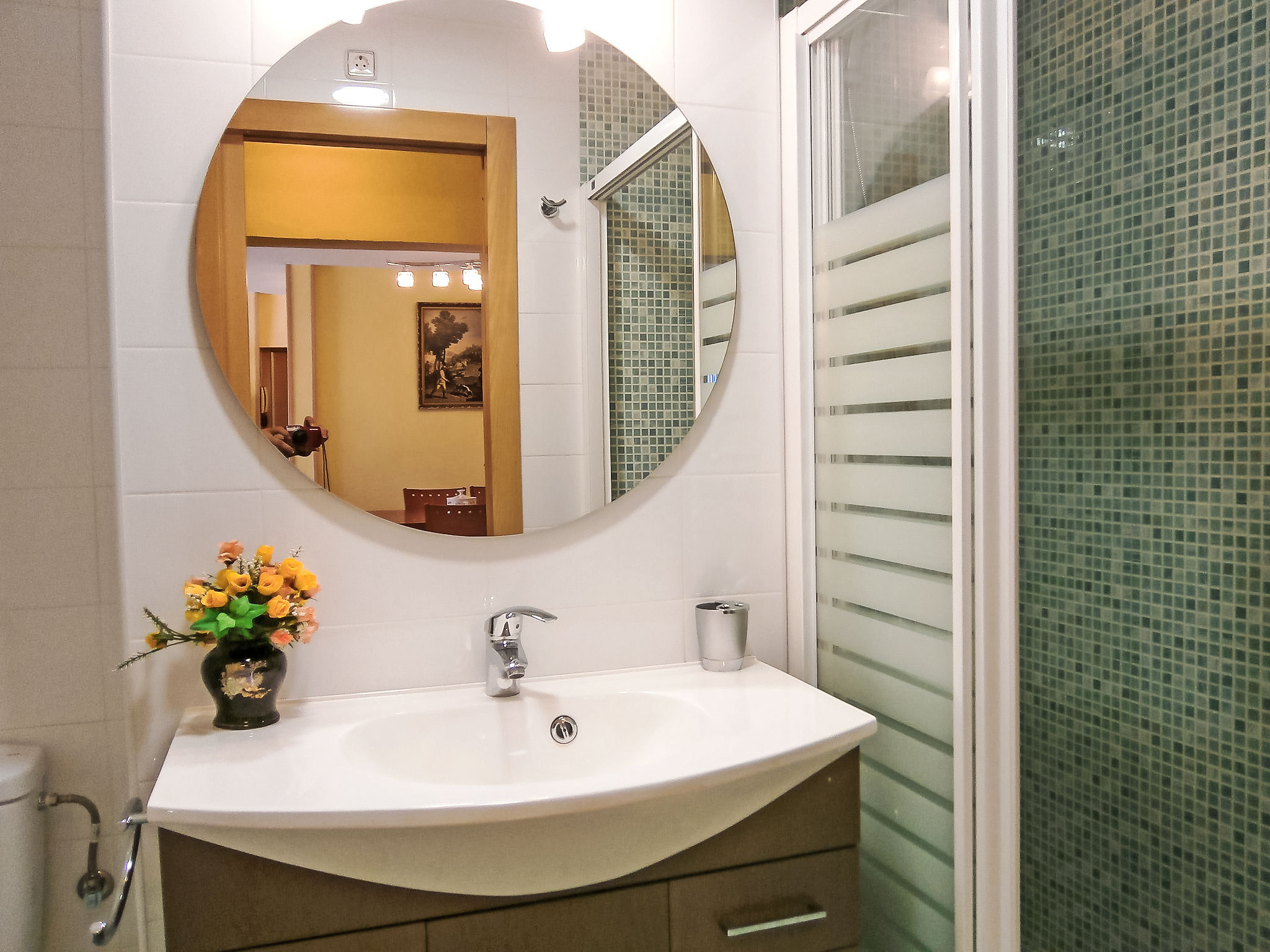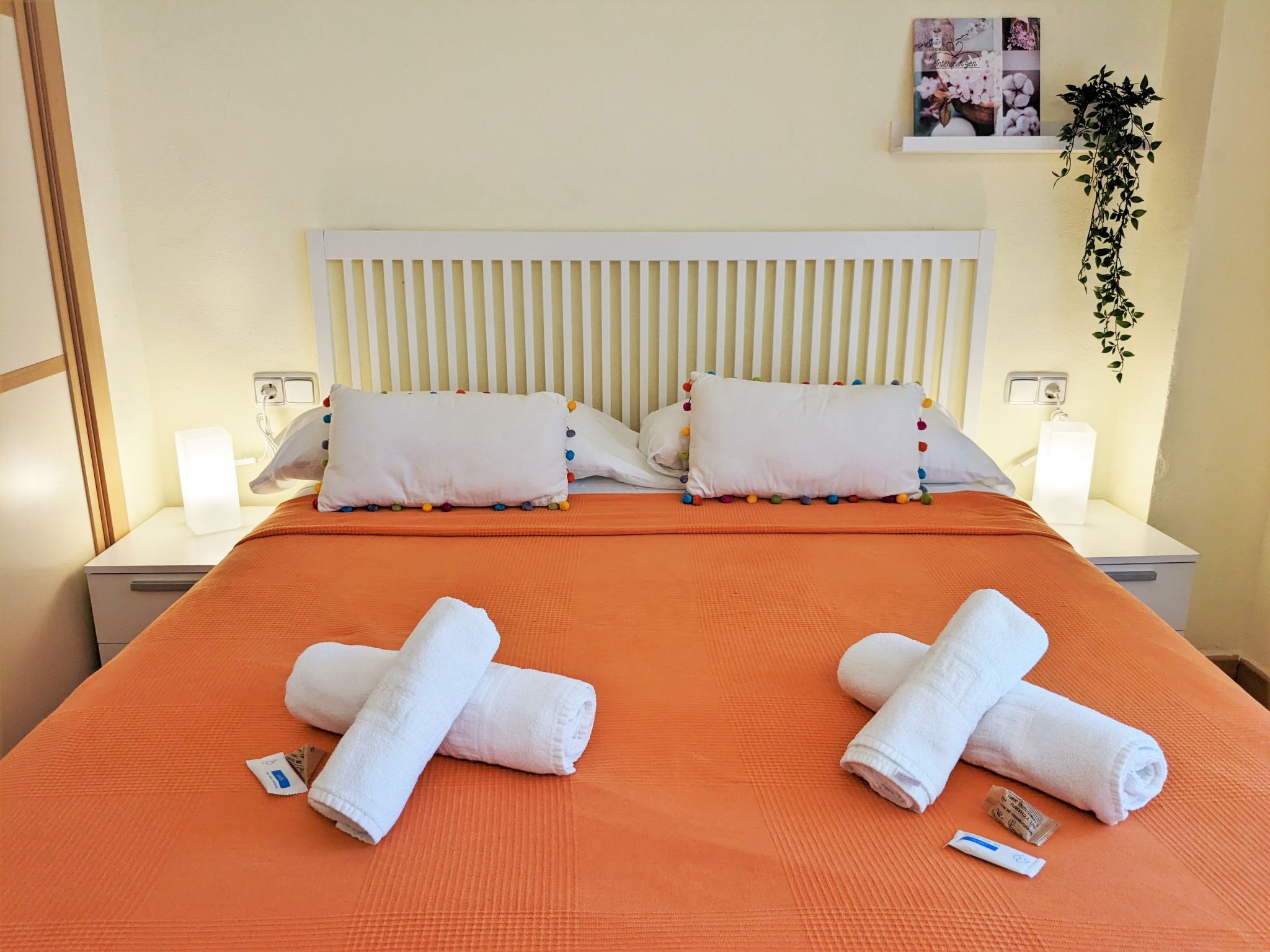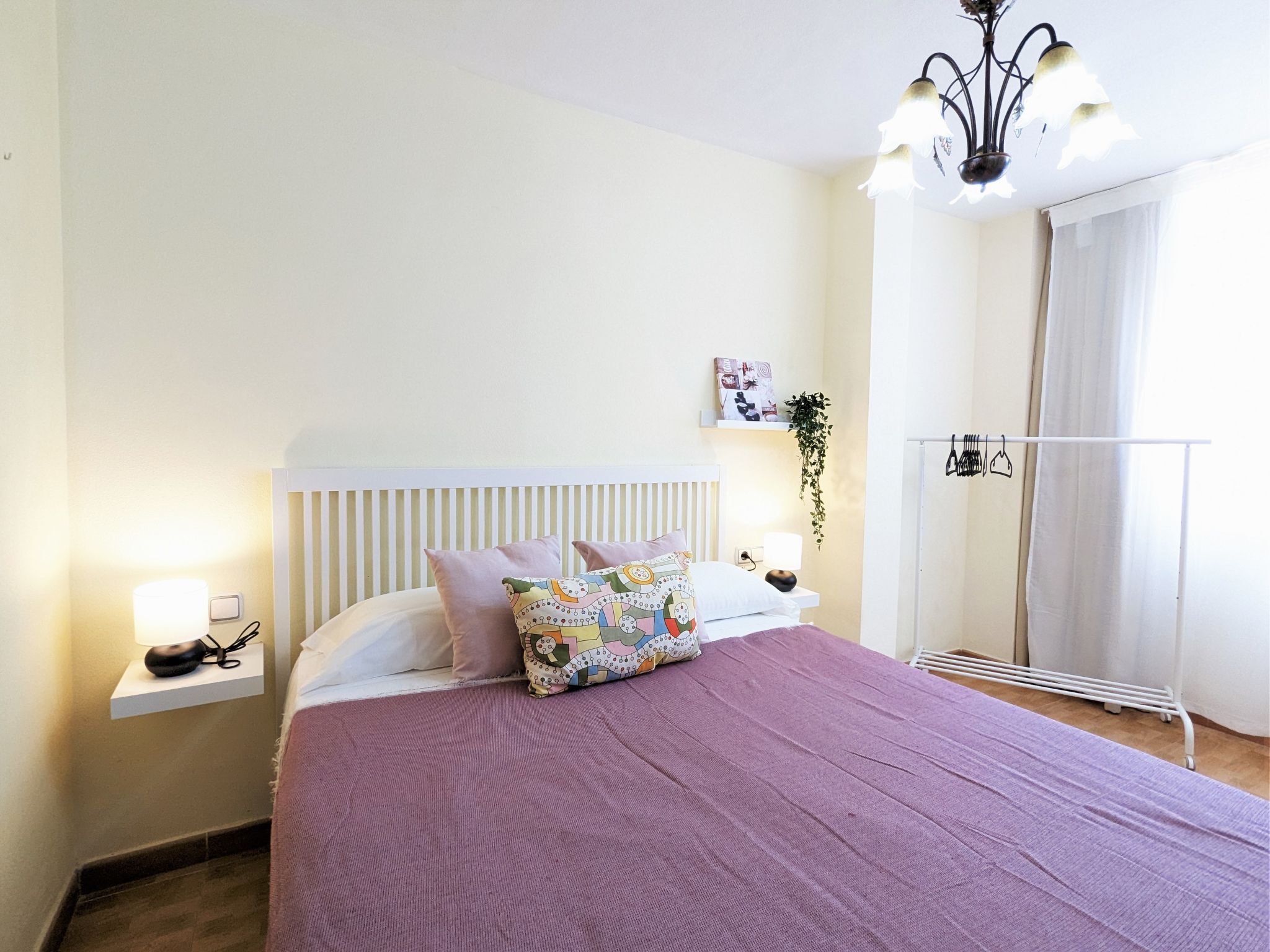 "La Goleta", 4-Zimmer-Wohnung 90 m2 im 5. Stock, Südlage. Objekt geeignet für 6 Erwachsene. Geräumig und hell, zweckmässig und komfortabel eingerichtet: Wohn-/Esszimmer 23 m2 mit Digital-TV und E-Heizung. Ausgang zur Terrasse. 1 Zimmer 21 m2 mit 1 franz. Bett (135 cm, Länge 190 cm), Dusche/WC, E-Heizofen und Ventilator. 1 Zimmer 15 m2 mit 2 Betten (90 cm, Länge 190 cm). 1 Zimmer 15 m2 mit 1 franz. Bett (135 cm, Länge 190 cm), E-Heizofen und Ventilator. Küche 6 m2 (Backofen, 4 Glaskeramikherd Platten, Toaster, Wasserkocher, Mikrowelle, Tiefkühler, elektrische Kaffeemaschine). Dusche/WC. Terrasse 11 m2, Terrasse 6 m2. Terrassenmöbel. Seitliche Sicht auf die Ortschaft und das Meer. Zur Verfügung: Waschmaschine, Bügeleisen, Haartrockner. Parkplatz. 1 kleines Haustier/Hund erlaubt. AT321570BM
