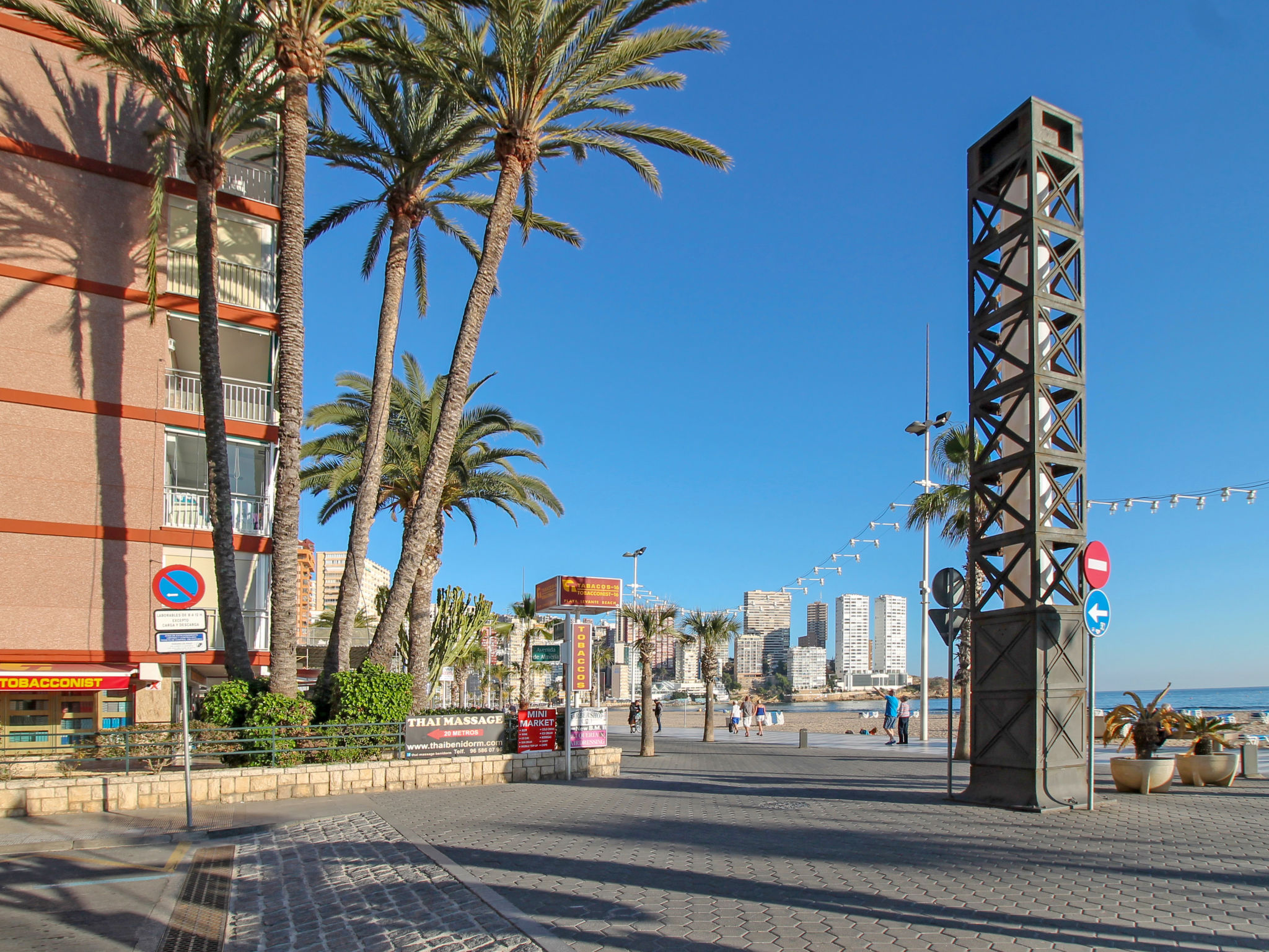 Playa Levante: Sehr gemütliches, komfortables Appartementhaus "La Goleta", auf 6 Stockwerken. Im Ort, 200 m vom Zentrum von Benidorm, im Bezirk Playa de Levante, zentrale, belebte Lage, 50 m vom Meer, 50 m vom Strand, Strasse zu überqueren. Im Hause: Fahrstuhl. Parkplatz (beschränkte Anzahl). Supermarkt 100 m, Restaurant, Bar 50 m, Bushaltestelle "Benidorm" 100 m, Bahnstation "Benidorm" 2 km. Golfplatz (18 Loch) 3 km, Wanderwege ab Haus 300 m. Nahe gelegene Sehenswürdigkeiten: Aqualandia 1 km, Mundomar 1 km, Benidorm Palace 1 km, Terra Mitica 3 km, Terra Natura 3 km, Karting 4 km. Bitte beachten: Babyausstattung auf Anfrage. Jugendgruppen nur auf Anfrage. Die Nachbarschaft ist sehr lärmempfindlich. Ruhe und gutes Benehmen wird erwartet.