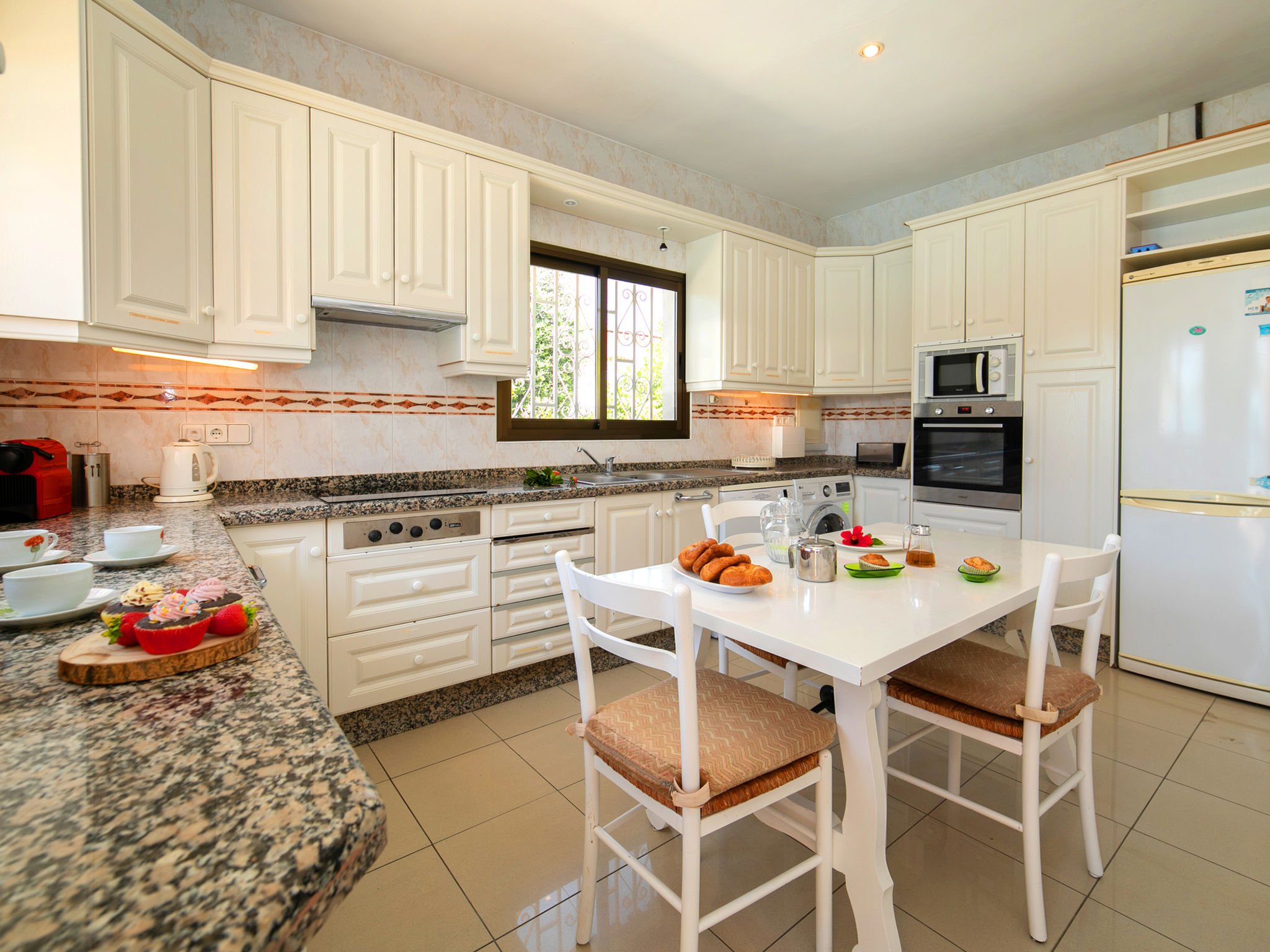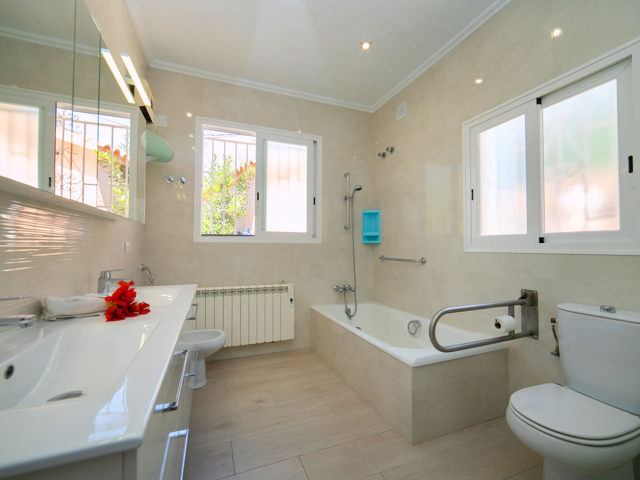 "Casa Sandra", 4-Zimmer-Haus 150 m2. Geräumig und hell, sehr komfortabel und geschmackvoll eingerichtet: Wohn-/Esszimmer 27 m2 mit Digital-TV, E-Heizung, Klimaanlage und Warmluftheizung. Ausgang zum Garten, zum Gartensitzplatz, zum Schwimmbad. 1 Zimmer 24 m2 mit 1 Doppelbett (2 x 90 cm, Länge 200 cm), Bad/Dusche/Bidet/WC, Doppelwaschbecken, Digital-TV, E-Heizung, Klimaanlage und Warmluftheizung. 1 Zimmer 18 m2 mit 2 Betten (90 cm, Länge 200 cm), E-Heizung. 1 Zimmer 15 m2 mit 2 Betten (80 cm, Länge 200 cm), E-Heizung. Grosse Küche 16 m2 (Backofen, Geschirrspüler, 4 Glaskeramikherd Platten, Toaster, Wasserkocher, Mikrowelle, Tiefkühler, Grill, elektrische Kaffeemaschine) mit Esstisch, E-Heizung. Ausgang zum Garten, zum Gartensitzplatz, zum Schwimmbad. Dusche/Bidet/WC, Doppelwaschbecken. Fussbodenheizung. Grosse Terrasse, grosser Garten. Terrassenmöbel, Gartengrill, Liegestühle (6). Sicht auf das Schwimmbad und den Garten. Zur Verfügung: Waschmaschine, Bügeleisen, Haartrockner. Internet (Wireless LAN, gratis). Garage auf dem Grundstück (3 Autos). AT411821A
