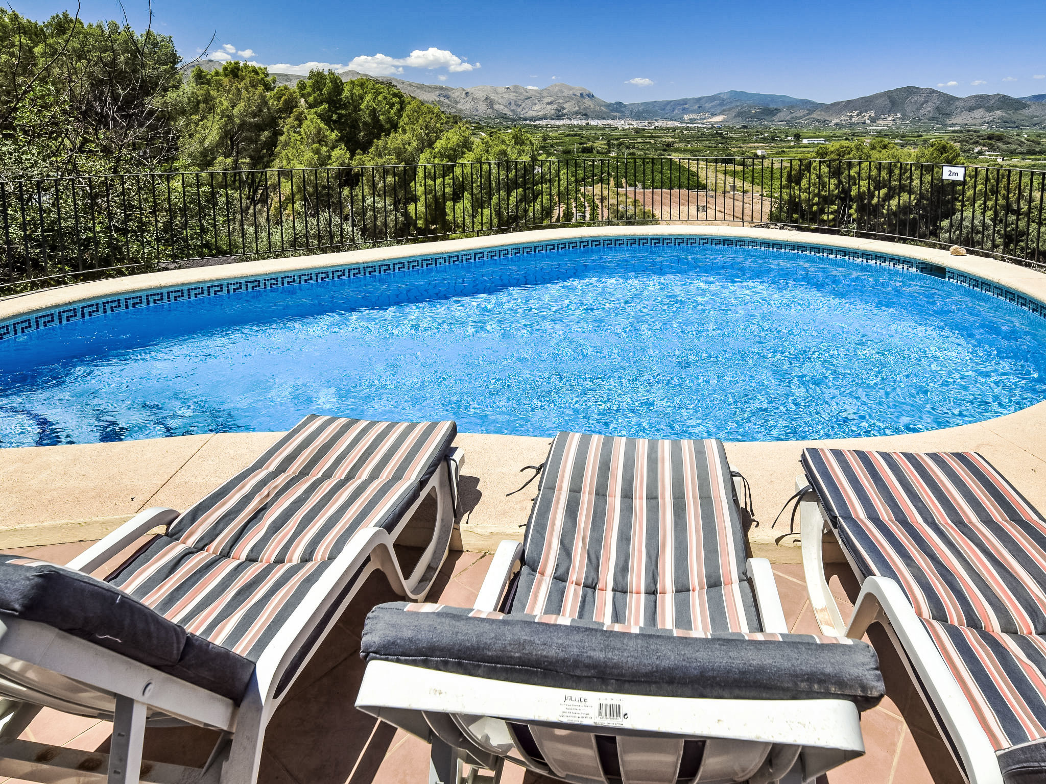 Gemütliche, komfortable Villa "Clementina", auf 2 Stockwerken. Im Ortsteil Monte Pego, erhöhte Lage, 8 km vom Meer. Zur Alleinbenutzung: Naturgarten, Schwimmbad nierenförmig (8 x 4 m, 01.01.-31.12.). Parkplatz auf dem Grundstück. Supermarkt 6 km, Restaurant 2 km, Sandstrand 8 km. Golfplatz 12 km, Tennis 5 km.