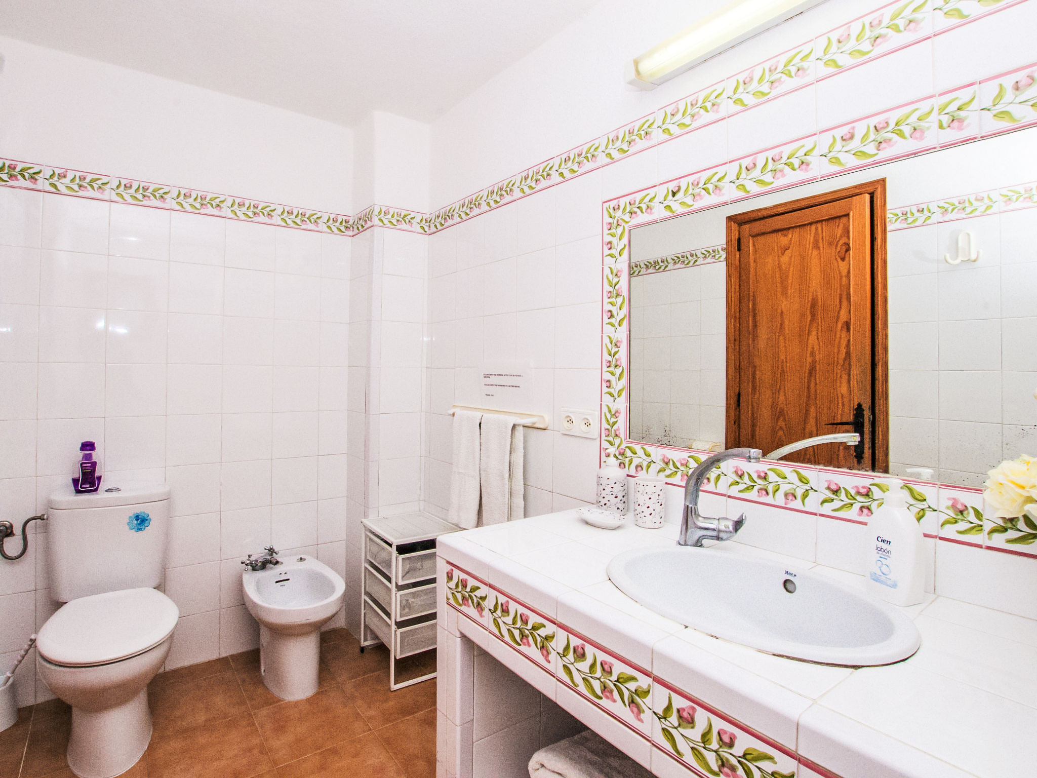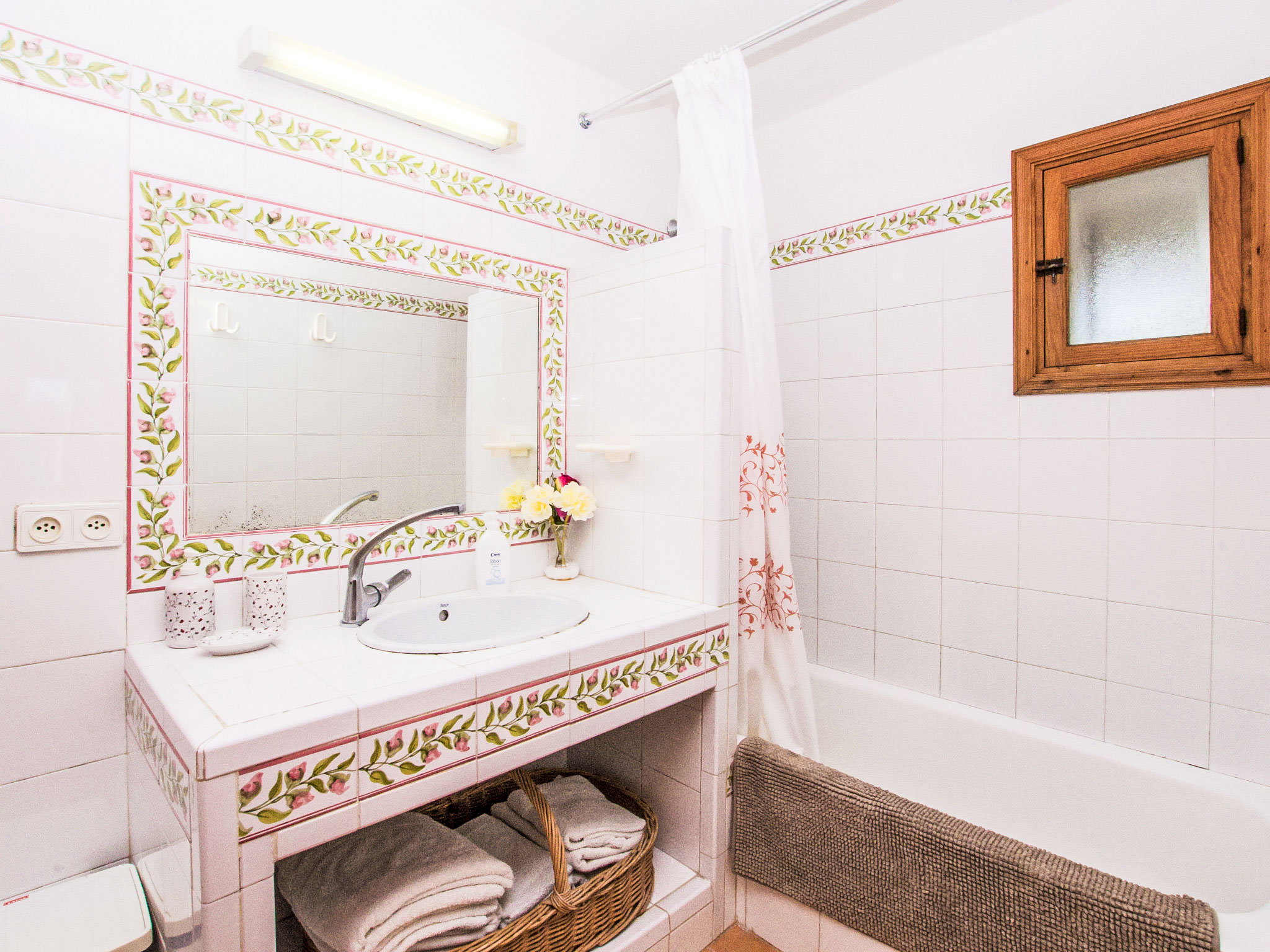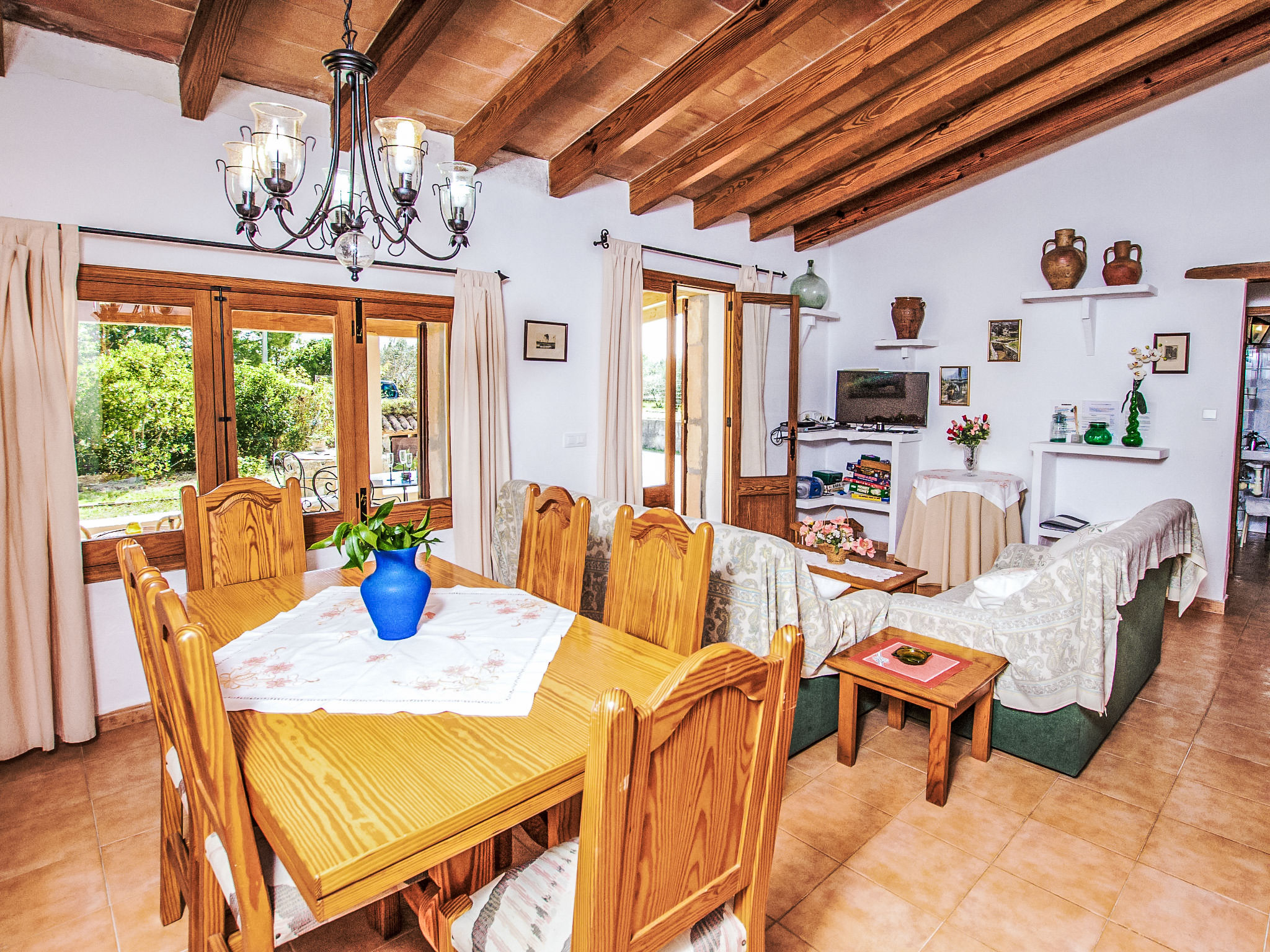 "Can Mateu", 4-Zimmer-Haus 140 m2. Komfortabel und mit viel Holz eingerichtet: Wohn-/Esszimmer mit Esstisch, Sat-TV und Flachbildschirm. Ausgang zur Terrasse. 2 Zimmer, jedes Zimmer mit 2 Betten (90 cm, Länge 190 cm), E-Heizofen und Ventilator. 1 Zimmer mit 1 franz. Bett (160 cm, Länge 200 cm), Bad/Bidet/WC, E-Heizofen und Ventilator. Küche (4 Kochplatten, Backofen, Geschirrspüler, Toaster, Wasserkocher, Mikrowelle, elektrische Kaffeemaschine) mit Esstisch, Boiler (100 Liter). Ausgang zum Garten. Dusche/WC. Terrasse überdacht. Terrassenmöbel. Zur Verfügung: Waschmaschine, Wäschetrockner, Bügeleisen, Kinderhochstuhl, Babybett bis 3 Jahre, Haartrockner. Internet (Wireless LAN, gratis). Internet (USB). 45835713