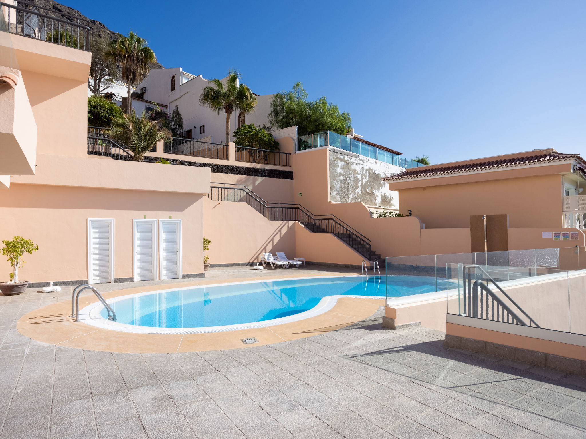 Einfaches, komfortables Appartementhaus "Buenavista", Baujahr 1996, renoviert im Jahre 2004. Im Ort, zentrale Lage, exzellente Lage: Absolut zentral und dennoch ruhig, 400 m vom Meer, an einer Strasse. Zur Mitbenutzung: Schwimmbad (5 x 3 m, saisonale Verfügbarkeit: 01.Jan.-31.Dez.). Aussendusche, Kinderspielplatz. Im Hause: Fahrstuhl, Sonnenterrasse. Öffentliche Parkplätze auf der Strasse. Einkaufsgeschäft, Lebensmittelgeschäft, Supermarkt, Einkaufszentrum, Restaurant, Bar, Bäckerei, Café, Biergarten 100 m, Sandstrand 1 km, Strandbad 200 m. Sporthafen 200 m.