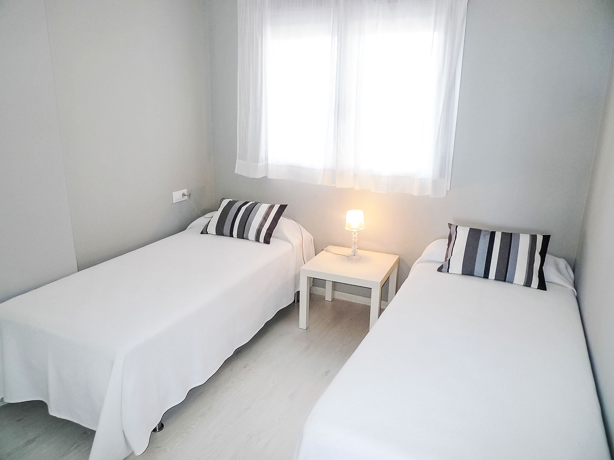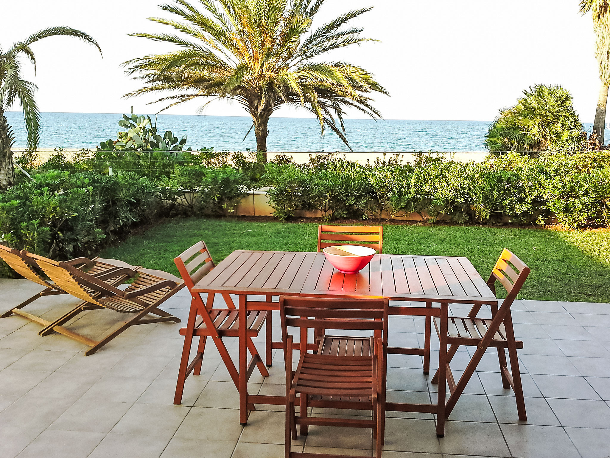 "Marenia", 3-Zimmer-Wohnung 60 m2, im Erdgeschoss. Komfortabel und modern eingerichtet: Wohn-/Esszimmer mit Digital-TV und Flachbildschirm. Ausgang zum Garten, zur Terrasse, zum Schwimmbad. 1 Zimmer mit 1 franz. Bett (160 cm, Länge 200 cm). Ausgang zur Terrasse, zum Schwimmbad. 1 Zimmer mit 2 Betten (90 cm, Länge 190 cm). Küche (Backofen, Geschirrspüler, 3 Glaskeramikherd Platten, Toaster, Wasserkocher, Mikrowelle, Tiefkühler, elektrische Kaffeemaschine). Bad/WC. Klimaanlage, Warmluftheizung. Grosse Terrasse teilweise überdacht. Terrassenmöbel, Liegestühle (2). Sehr schöne Sicht auf das Meer, das Schwimmbad und den Garten. Zur Verfügung: Waschmaschine, Bügeleisen, Kinderhochstuhl, Babybett, Haartrockner. Internet (Wireless LAN, gratis). Garage Nr. 20. Bitte beachten: Nichtraucher-Unterkunft. TV nur ES. AT-437651-A