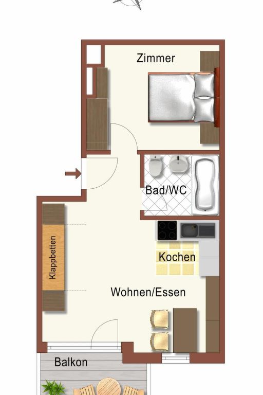 40 m2. Weitere Angaben des Anbieters: Sauber gepflegte Ferienwohnung zum Wohlfühlen. Bequem erreichbar. WiFi Internetanschluss. Im Winter Skibus-Haltestelle vor dem Haus. Vermieter wohnt im Haus. Gepflegte 2-Zimmerwohnung, 40 m2, 2-3 Personen, 1 Doppelschlafzimmer, Wohn-/Esszimmer mit 1 Wandklappbett, Dusche/WC, Kochnische, Balkon, Radio/TV, Internetanschluss (gratis), Bett-, Frottier- und Küchenwäsche vorhanden, Telefon im Haus. Lebensmittelgeschäfte in 3-5 Minuten zu Fuss erreichbar. Kurtaxe Sommer (01.06. - 31.10.): CHF 7.- für Erwachsene/Tag, CHF 3.50 für Kinder (6 -15.99 Jahre). Kurtaxe Winter (01.11. -31.05): CHF 4.50 für Erwachsene/Tag, CHF 2.25 für Kinder (6 -15.99 Jahre). Komplett-Preis - inklusive Endreinigung. Bett-, Frottier- und Küchenwäsche sind vorhanden - und die Betten sind bezogen.