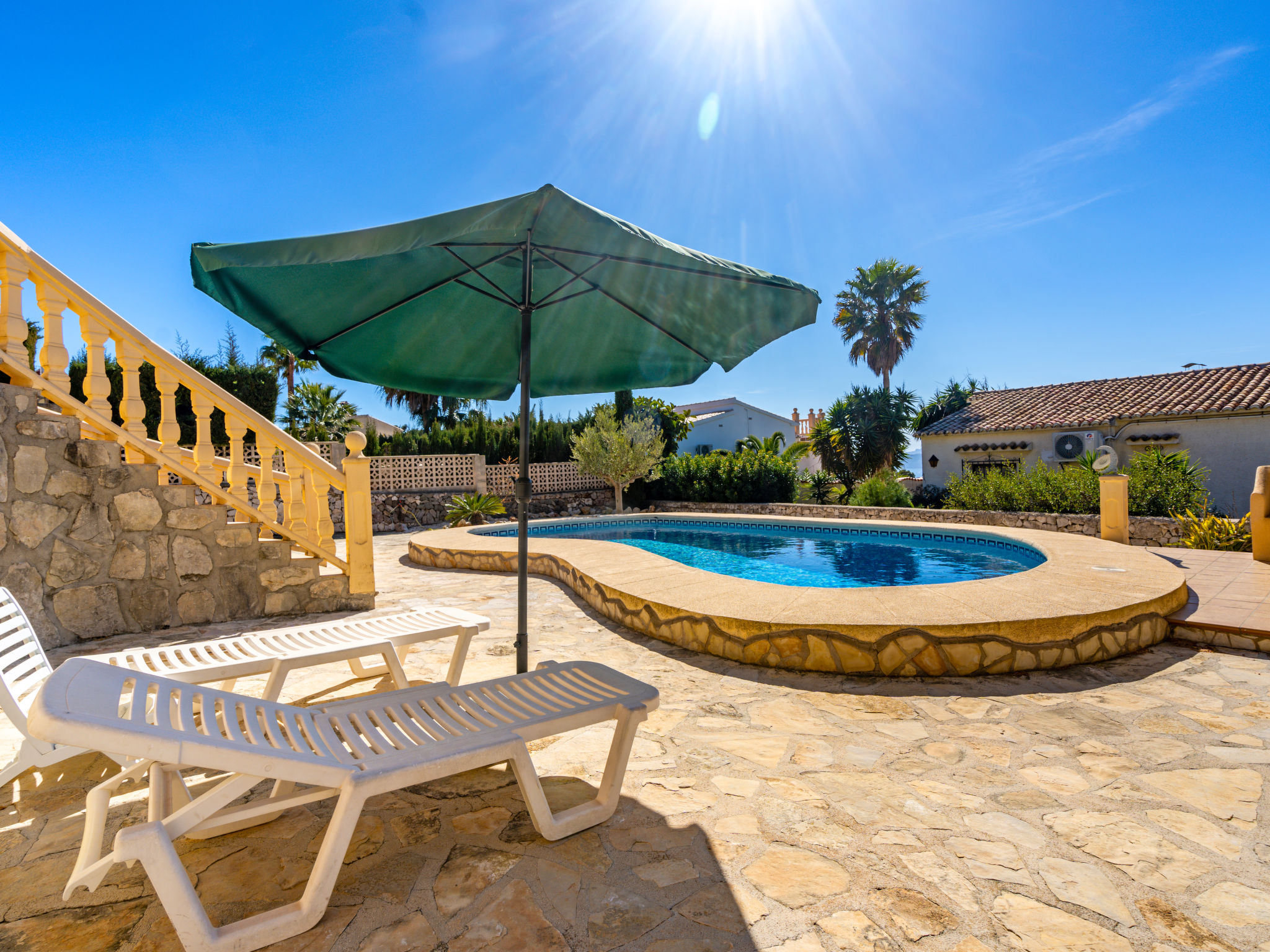 Haus "Zindel". Im Ortsteil Balcon al Mar, 5 km vom Meer. Zur Alleinbenutzung: Garten 800 m2 (eingezäunt) mit Pflanzen, Schwimmbad (4 x 9 m, 150 - 250 cm tief, 01.01.-31.12.) mit Innentreppe. Aussendusche. Im Hause: Dachterrasse. Supermarkt, Restaurant 200 m, Sandstrand "Arenal" 8 km, Kieselstrand "Granadella" 5 km.