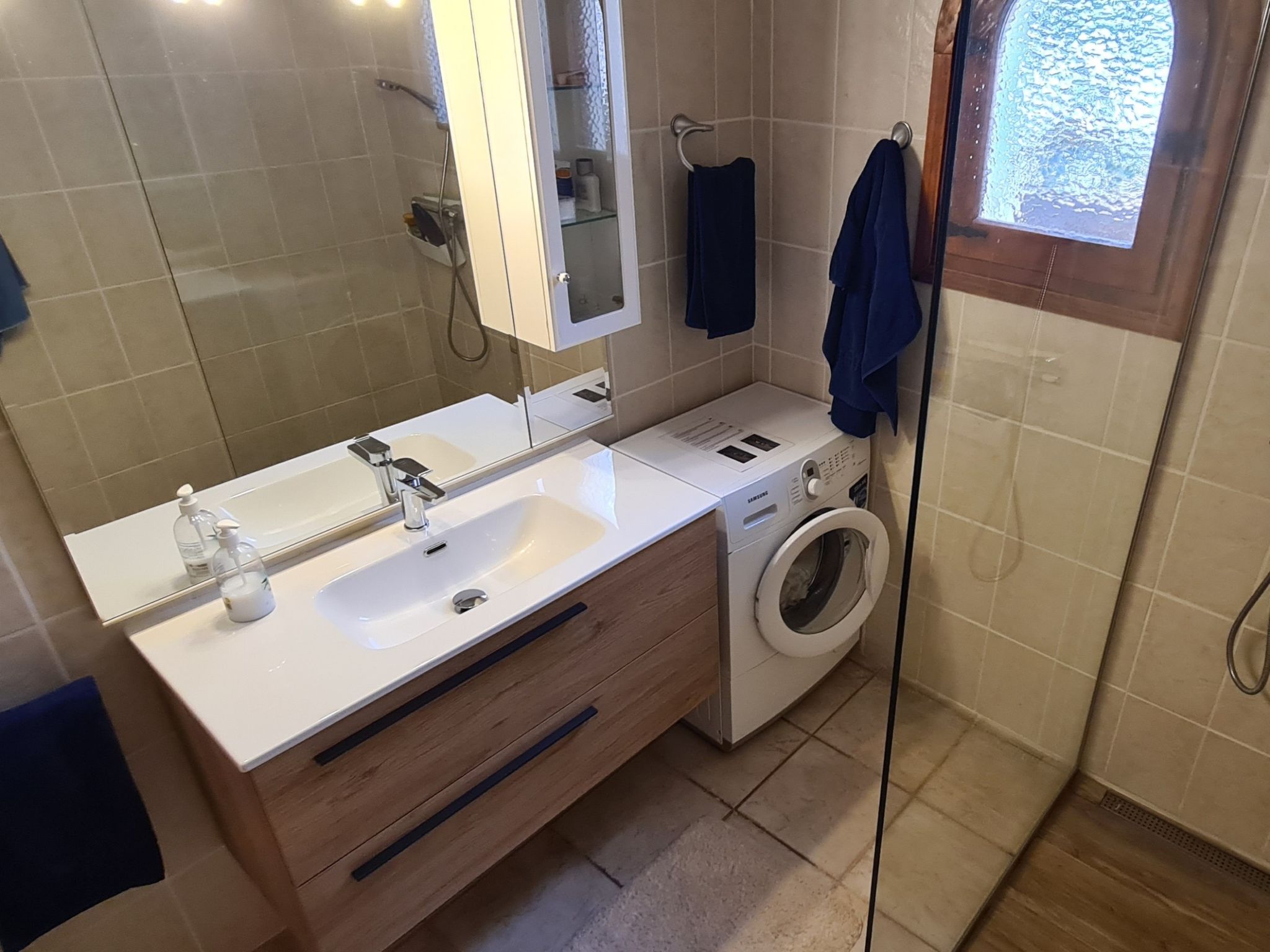 3-Zimmer-Haus 80 m2. Zweckmässig eingerichtet: mit Schwedenofen und Sat-TV. Ausgang zur Terrasse. 1 Zimmer mit 1 franz. Bett und Klimaanlage. 1 Zimmer mit 2 Betten und Klimaanlage. Küche (Backofen, Toaster, Mikrowelle, Tiefkühler, elektrische Kaffeemaschine). Bad/WC mit Eckbadewanne. Terrasse überdacht. Terrassenmöbel, Gartengrill (mobil), Liegestühle (4). Schöne Panoramasicht auf das Meer. Zur Verfügung: Kinderhochstuhl, Babybett. Internet (Wireless LAN, gratis). Parkplatz (eingezäunt) beim Haus. 1 Haustier/Hund erlaubt. AT446957