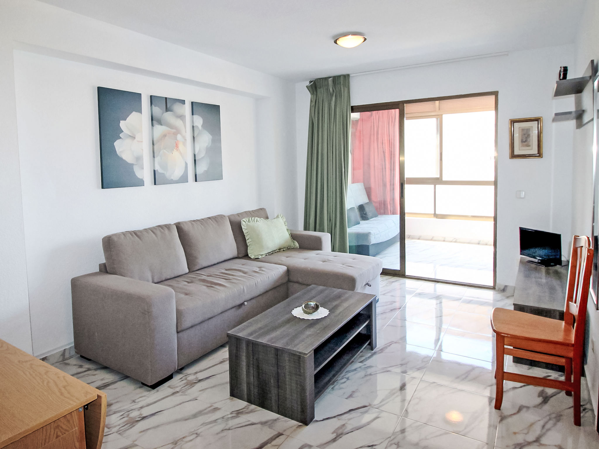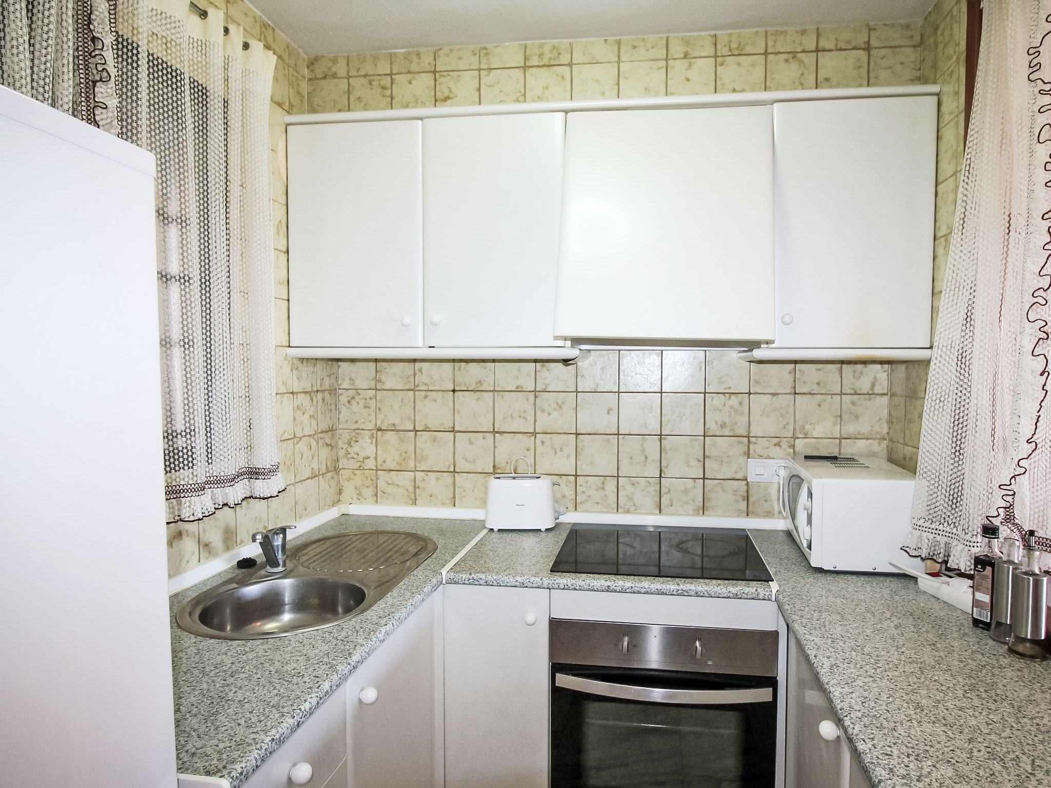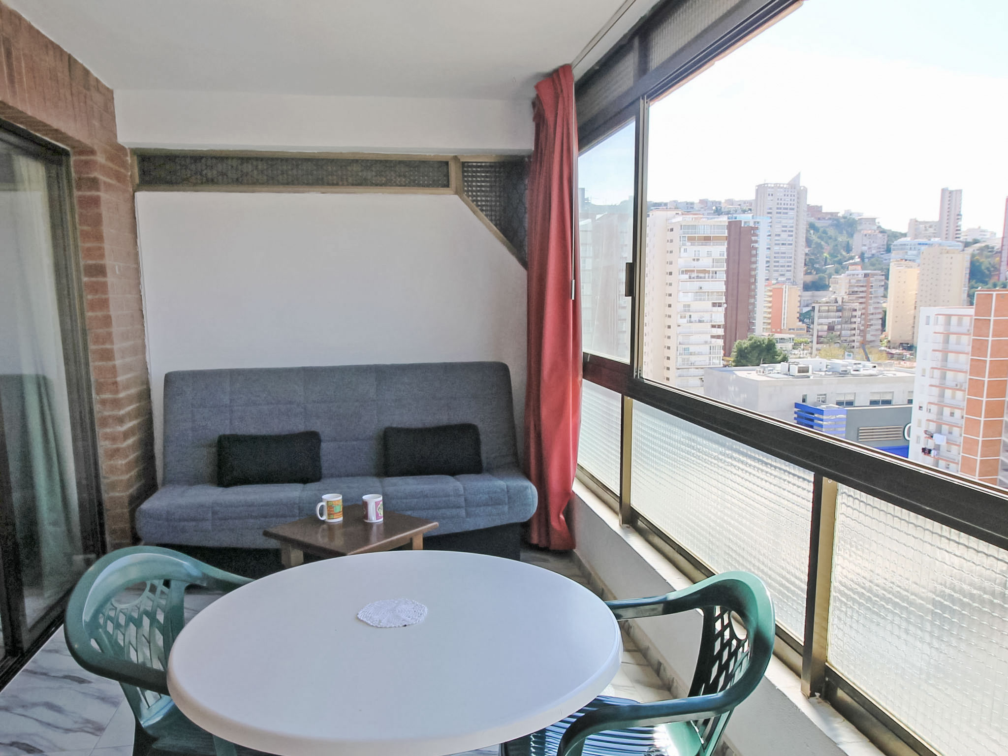 "Waldorff", 2-Zimmer-Wohnung 50 m2 im 11. Stock, Ostlage. Objekt geeignet für 2 Erwachsene + 2 Kinder. Zweckmässig und komfortabel eingerichtet: Wohn-/Esszimmer 14 m2 mit 2 Diwanbetten und Digital-TV. Ausgang zur Loggia. 1 Zimmer 11 m2 mit 2 Betten (90 cm, Länge 190 cm), Ventilator. Küche (Backofen, 3 Glaskeramikherd Platten, Toaster, Wasserkocher, Mikrowelle, Tiefkühler, elektrische Kaffeemaschine). Bad/Bidet/WC. Grosse Terrasse 12 m2. Sicht auf die Ortschaft. Zur Verfügung: Waschmaschine, Bügeleisen, Haartrockner. AT322137BM