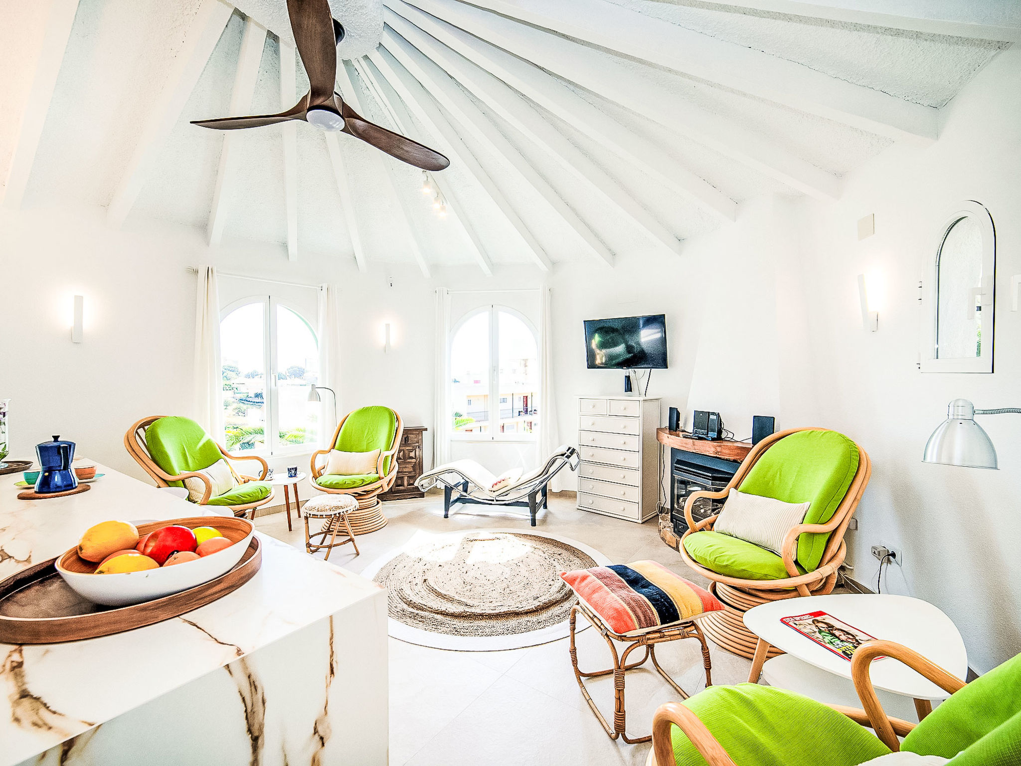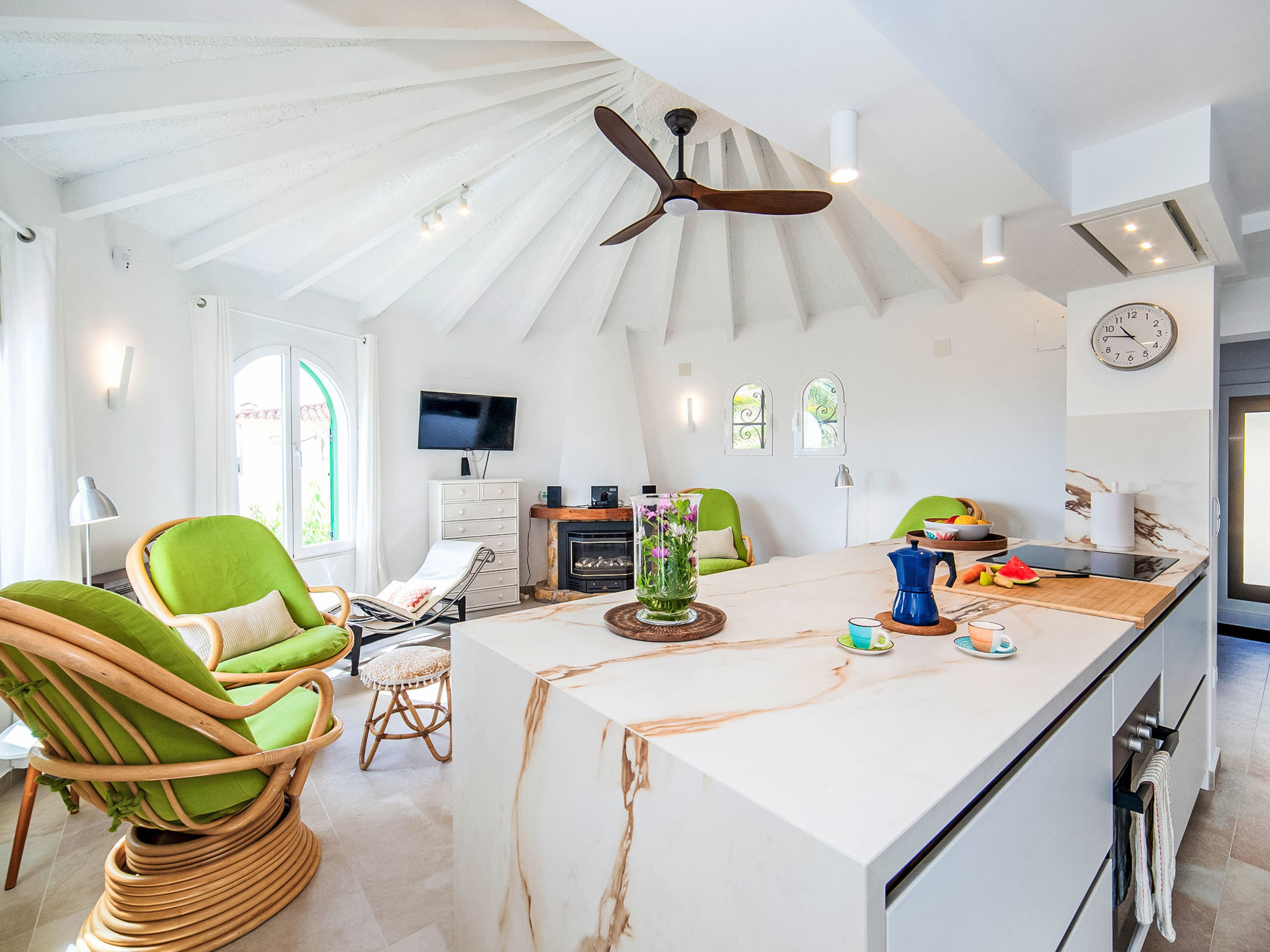 "Villa Sol", 6-Zimmer-Haus 186 m2 auf 2 Stockwerken. Zweckmässig und komfortabel eingerichtet: Wohn-/Esszimmer mit offenem Kamin, Sat-TV, Klimaanlage und Warmluftheizung. Ausgang zur Veranda. 1 Zimmer mit 2 Betten, Sat-TV und Digital-TV. 1 Zimmer mit 2 Betten, Klimaanlage und Warmluftheizung. Küche (4 Kochplatten, Backofen, Geschirrspüler, Mikrowelle, elektrische Kaffeemaschine, Kapseln für die Kaffeemaschine (Nespresso)). Bad/WC. Unteres Geschoss: (Aussentreppe) Wohn-/Esszimmer. Ausgang zur Terrasse. 1 Zimmer mit 2 Betten. 1 Zimmer mit 1 Bett. Kleine, offene Küche (Backofen, 4 Glaskeramikherd Platten). Dusche/WC. Terrassenmöbel, Gartengrill. Eingeschränkte Sicht auf das Meer und die Berge. Zur Verfügung: Waschmaschine, Kinderhochstuhl, Babybett bis 2 Jahre. Internet (Wireless LAN, gratis). Garage auf dem Grundstück. Geeignet für Familien. AT-458090-A
