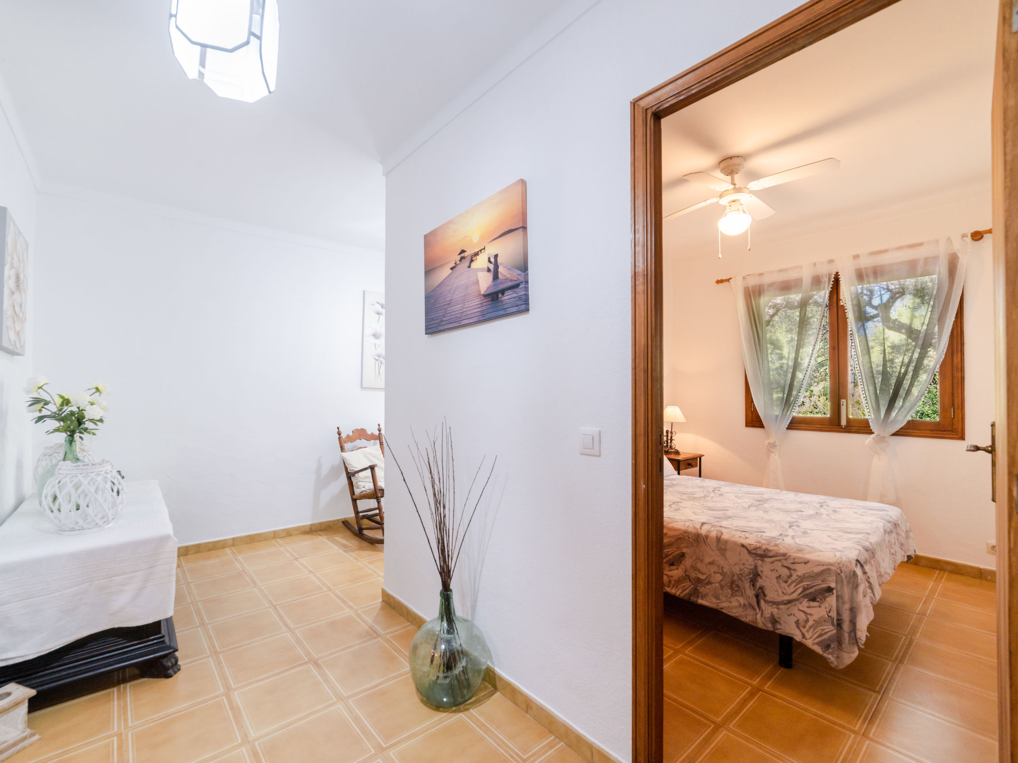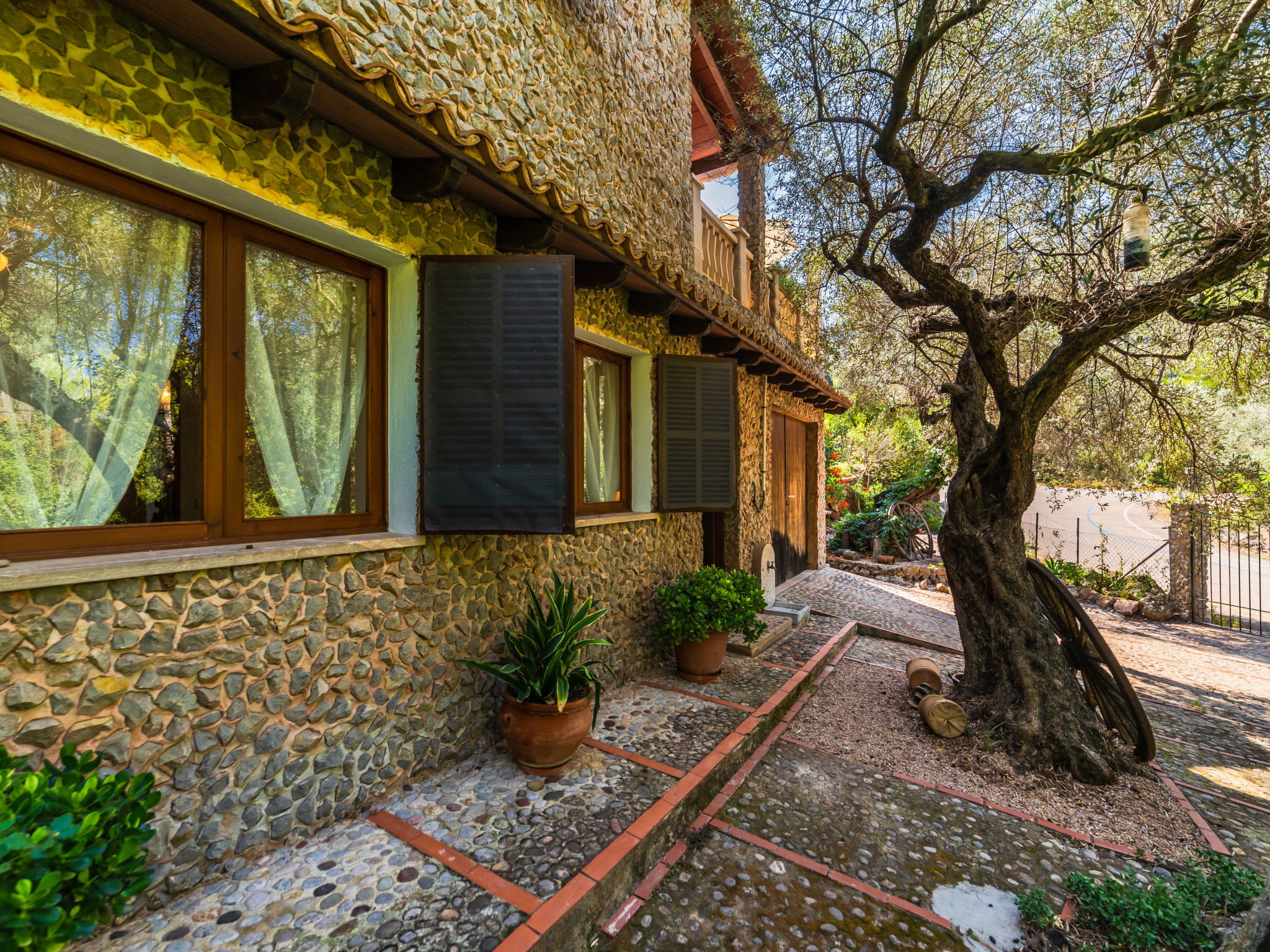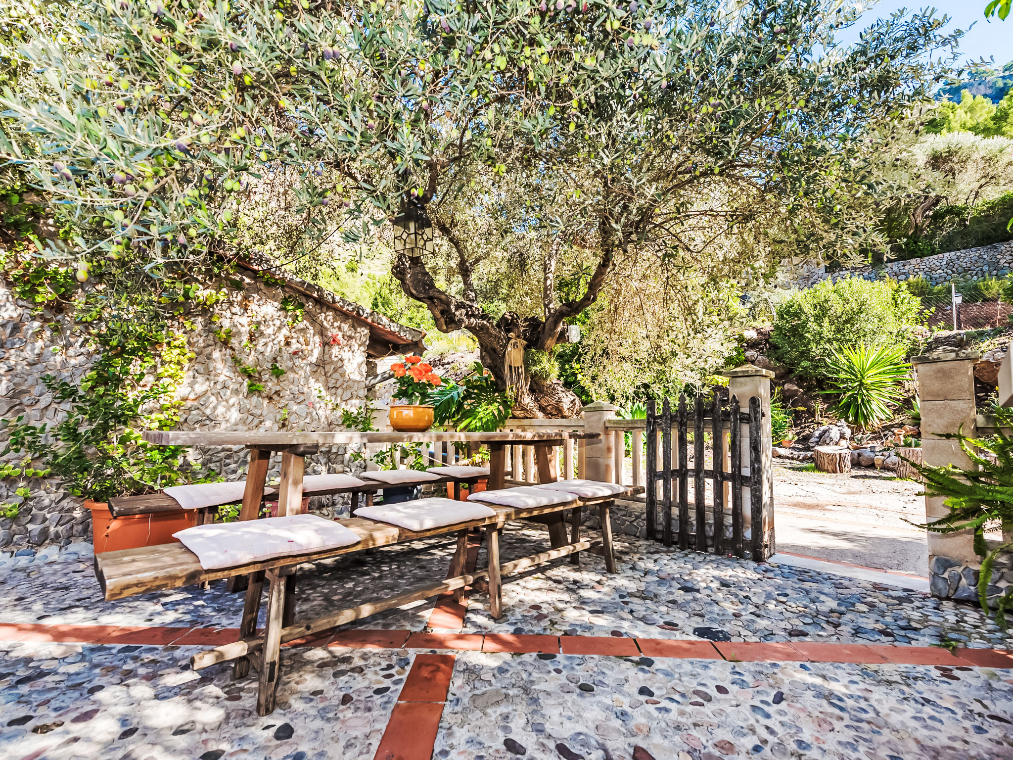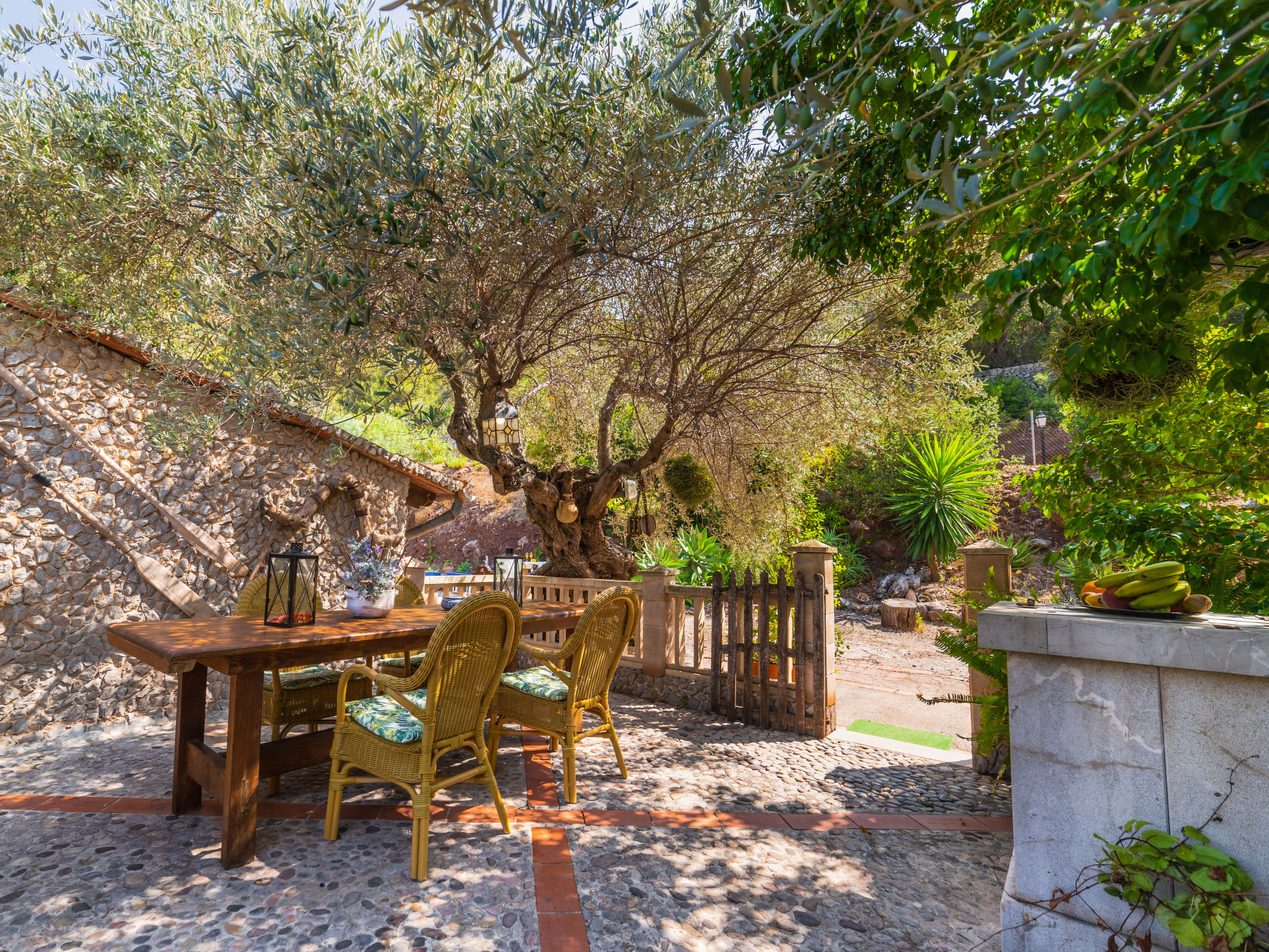 Cala Tuent 27 km von Lluc: Sehr gemütlicher, rustikaler, alleinstehender Finca "Cala Tuent", auf 2 Stockwerken, umgeben von Bäumen und Wiesen. Im Ortsteil Cala Tuent, alleinstehende, ruhige, sonnige Lage auf einem Hügel, 200 m vom Meer, 200 m vom Strand. Zur Alleinbenutzung: naturbelassenes Grundstück (eingezäunt), Naturgarten (eingezäunt). Sitzplatz, Pergola, Gartenmöbel, Grill. Im Hause: Internetzugang, Wireless LAN, Klimaanlage, Wäscherei, Waschmaschine, Wäschetrockner. Steile, schmale Zufahrt. Parkplatz (für 2 Autos) auf dem Grundstück. Einkaufsgeschäft 26.9 km, Lebensmittelgeschäft 26.9 km, Supermarkt 26.9 km, Restaurant, Bar 300 m, Bäckerei 26.9 km, Café, Biergarten 300 m, Steinstrand "Cala Tuent" 200 m. Wanderwege ab Haus, Radweg 100 m. Nahe gelegene Sehenswürdigkeiten: Sa Calobra 6.4 km, Torrent de Pareis 7.6 km, Santuario de Lluc 26.1 km. Bitte beachten: Fahrzeug empfohlen. Geeignet für Familien. Objekt geeignet für 6 Erwachsene Jugendgruppen nur auf Anfrage. Be- und Entladen am Ferienhaus möglich. Tiere in der Umgebung. Hauptstrasse in der Nähe. Flugplatz 75 km vom Haus.