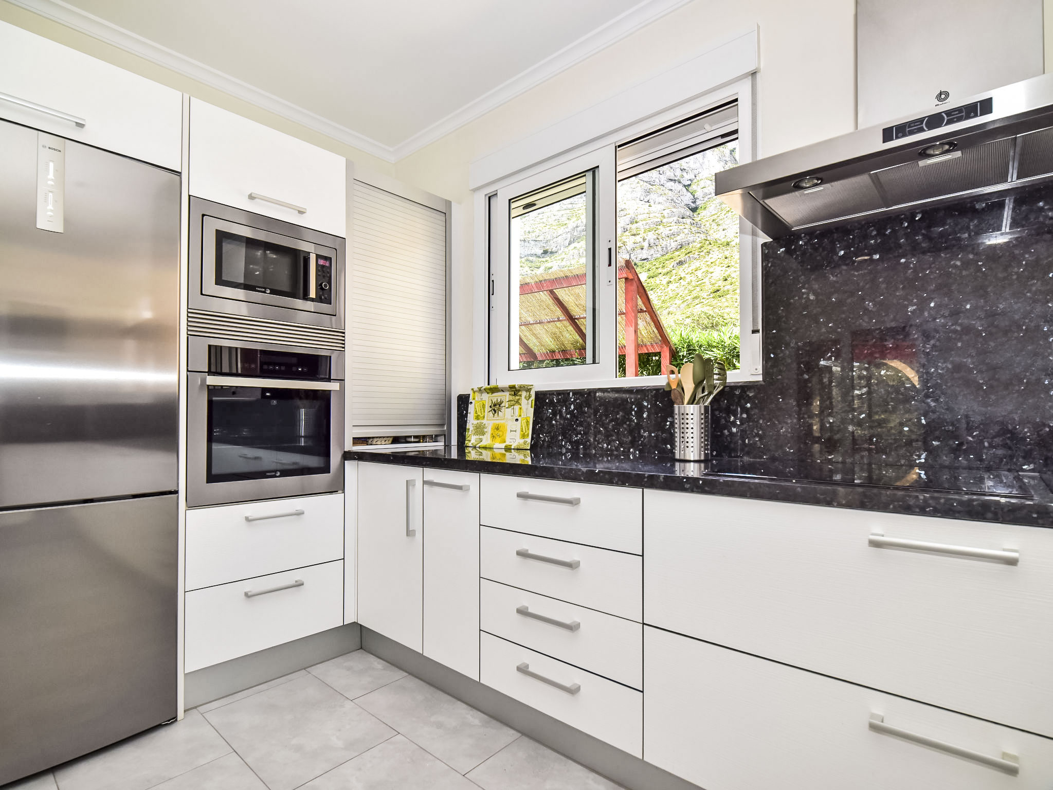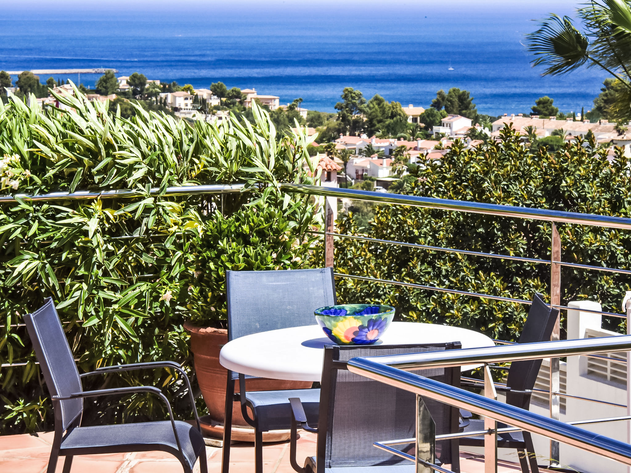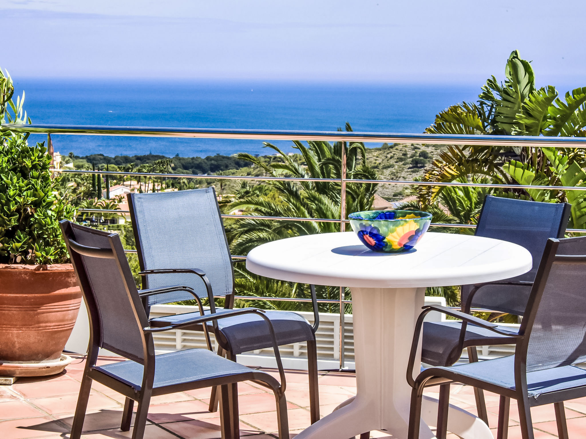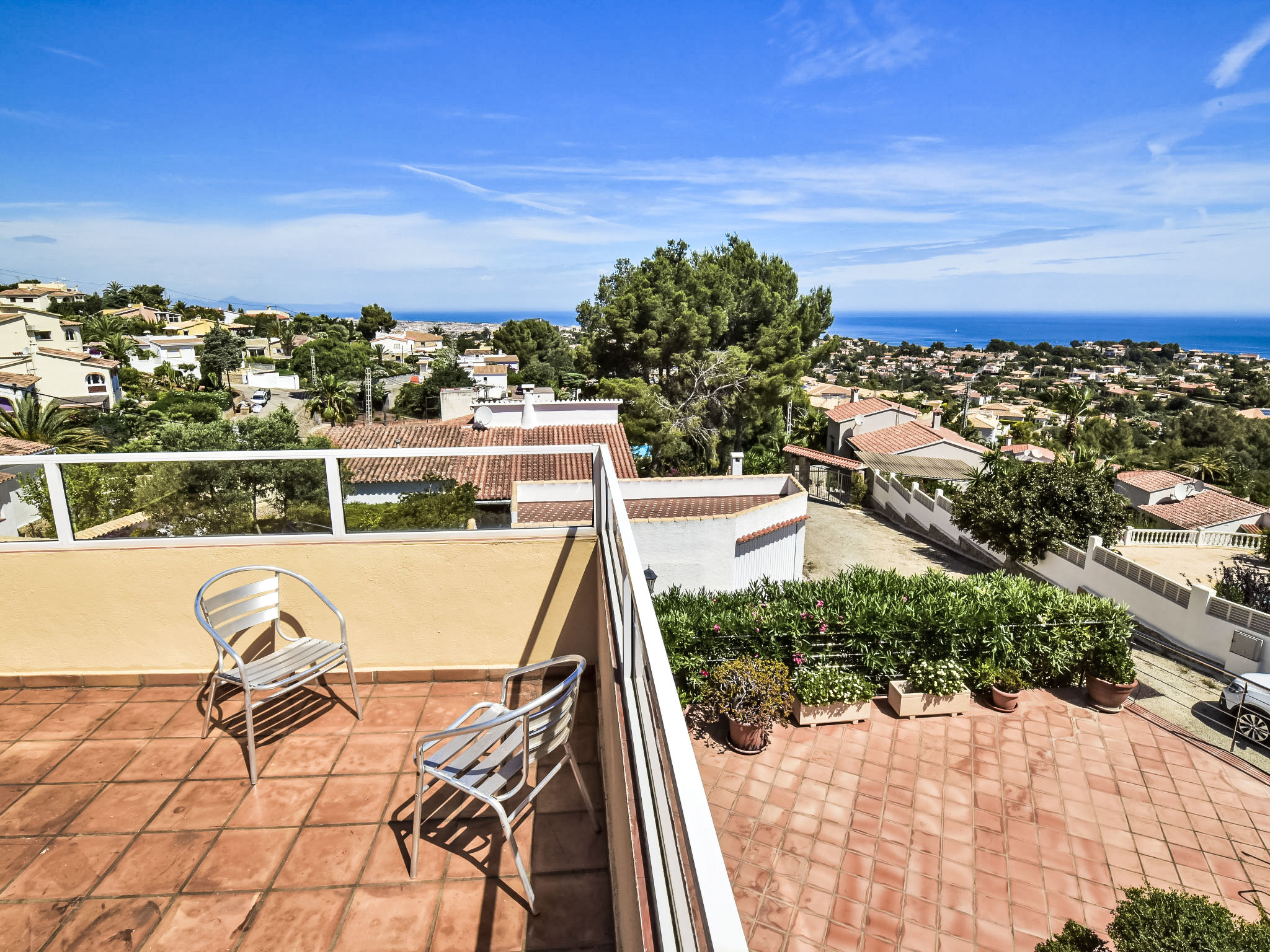 "Bellavista", 4-Zimmer-Haus. Geräumig und hell, komfortabel und geschmackvoll eingerichtet: Wohnzimmer mit Sat-TV, Digital-TV, Internationale TV-Sender, Klimaanlage und Warmluftheizung. 1 Zimmer mit 1 franz. Bett (150 cm, Länge 190 cm), Klimaanlage und Warmluftheizung. Salon mit Klimaanlage und Warmluftheizung. 1 Zimmer mit 1 franz. Bett (150 cm, Länge 200 cm), Dusche/WC, Klimaanlage und Warmluftheizung. Ausgang zum Gartensitzplatz. Offene Küche (2 Kochplatten, Backofen, Geschirrspüler, 3 Glaskeramikherd Platten, Mikrowelle, Tiefkühler) mit offenem Kamin, Esstisch, TV, Internationale TV-Sender, Klimaanlage und Warmluftheizung. Dusche/WC. 2 Terrassen, Nordlage Terrasse, Südlage. Terrassenmöbel, Liegestühle. Herrliche Panoramasicht auf das Meer, die Berge, das Tal und die Landschaft. Zur Verfügung: Waschmaschine, Wäschetrockner, Bügeleisen. Internet (Wireless LAN, gratis). Garage auf dem Grundstück. Bitte beachten: ein Doppelzimmer liegt außerhalb der Wohnung. Nichtraucher-Haus. AT-468384-A