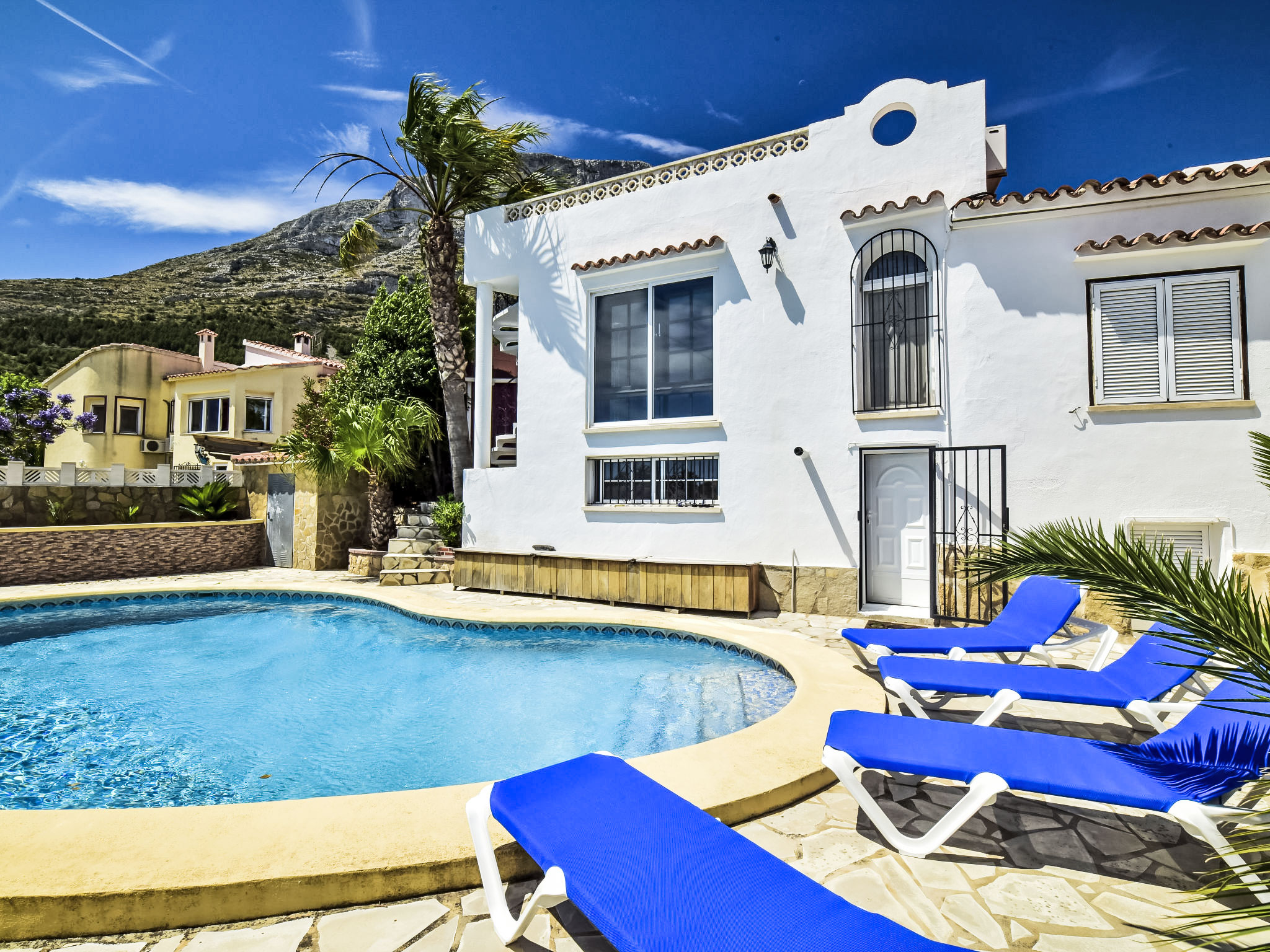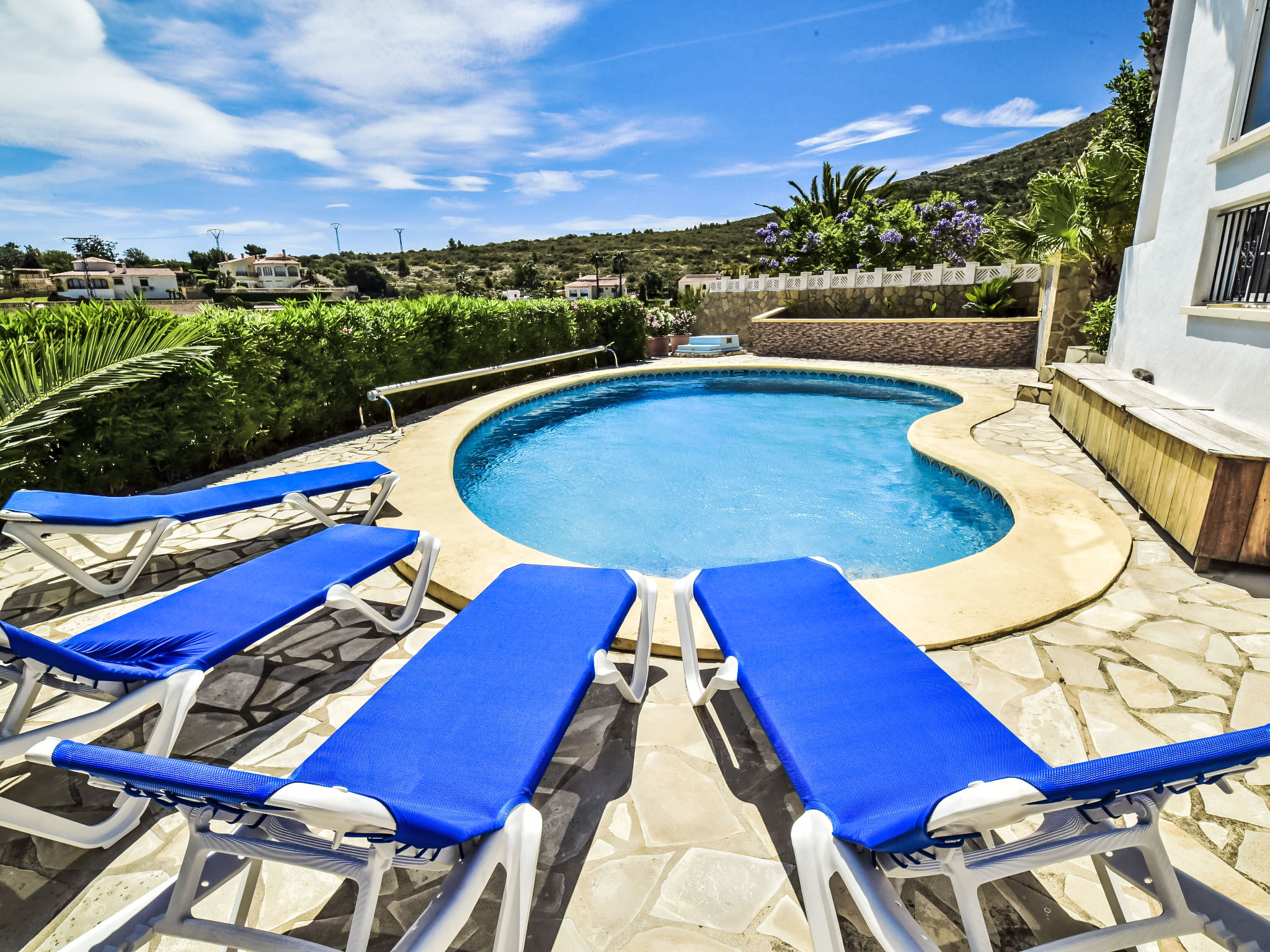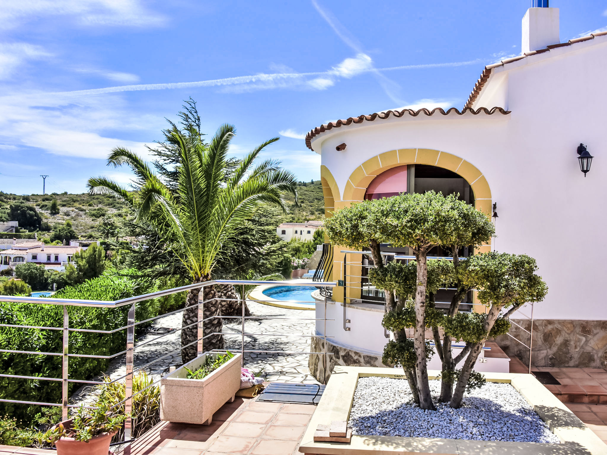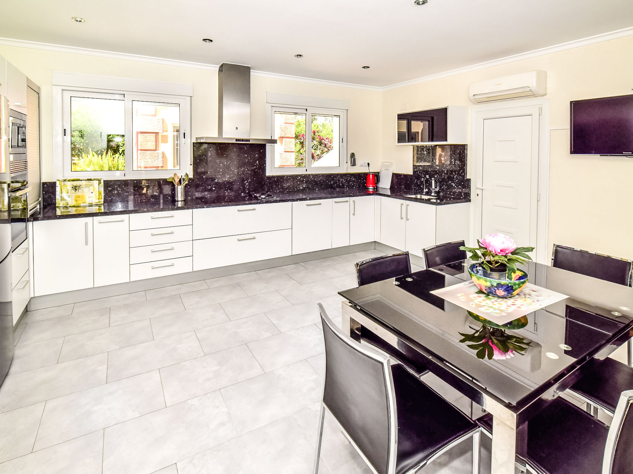"Bellavista", 4-Zimmer-Haus. Geräumig und hell, komfortabel und geschmackvoll eingerichtet: Wohnzimmer mit Sat-TV, Digital-TV, Internationale TV-Sender, Klimaanlage und Warmluftheizung. 1 Zimmer mit 1 franz. Bett (150 cm, Länge 190 cm), Klimaanlage und Warmluftheizung. Salon mit Klimaanlage und Warmluftheizung. 1 Zimmer mit 1 franz. Bett (150 cm, Länge 200 cm), Dusche/WC, Klimaanlage und Warmluftheizung. Ausgang zum Gartensitzplatz. Offene Küche (2 Kochplatten, Backofen, Geschirrspüler, 3 Glaskeramikherd Platten, Mikrowelle, Tiefkühler) mit offenem Kamin, Esstisch, TV, Internationale TV-Sender, Klimaanlage und Warmluftheizung. Dusche/WC. 2 Terrassen, Nordlage Terrasse, Südlage. Terrassenmöbel, Liegestühle. Herrliche Panoramasicht auf das Meer, die Berge, das Tal und die Landschaft. Zur Verfügung: Waschmaschine, Wäschetrockner, Bügeleisen. Internet (Wireless LAN, gratis). Garage auf dem Grundstück. Bitte beachten: ein Doppelzimmer liegt außerhalb der Wohnung. Nichtraucher-Haus. AT-468384-A
