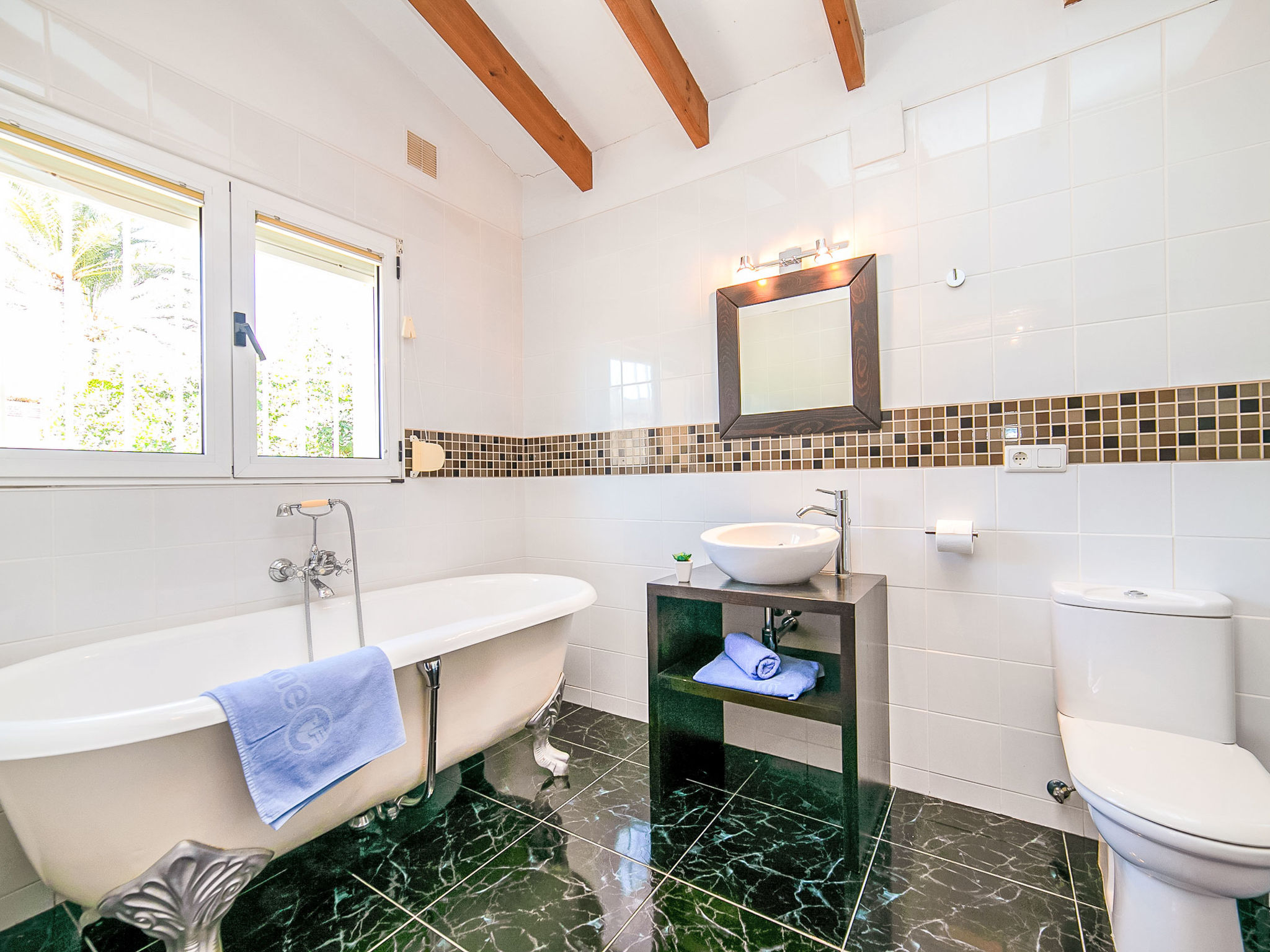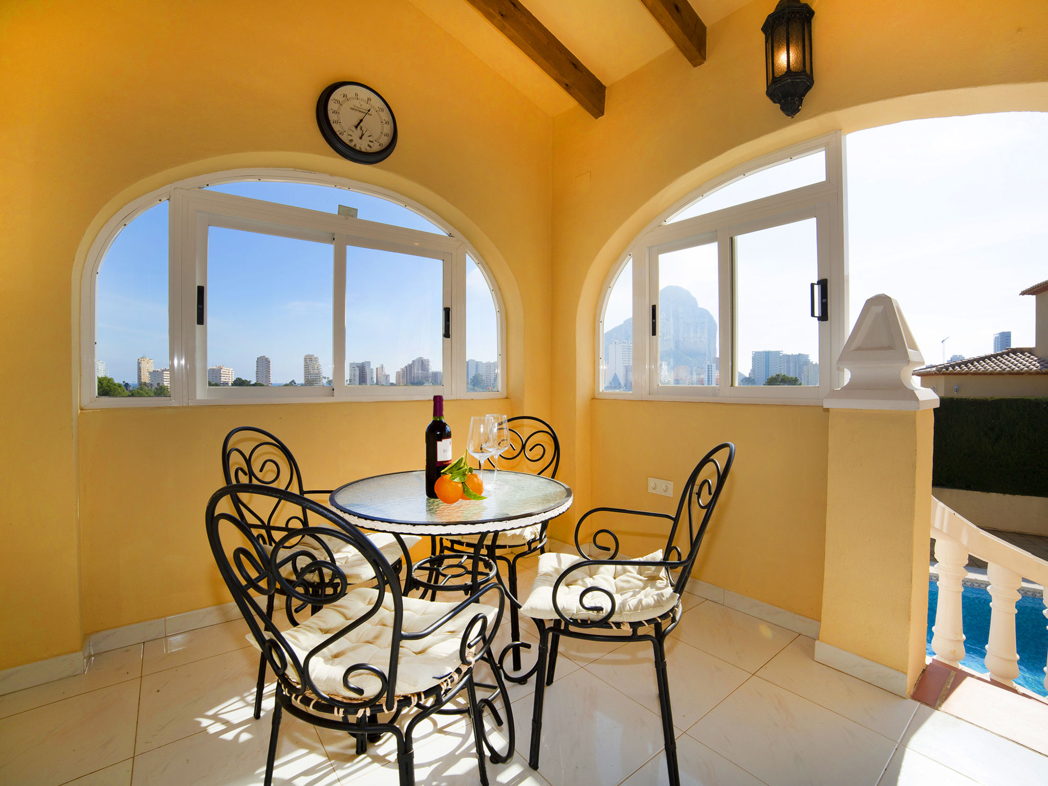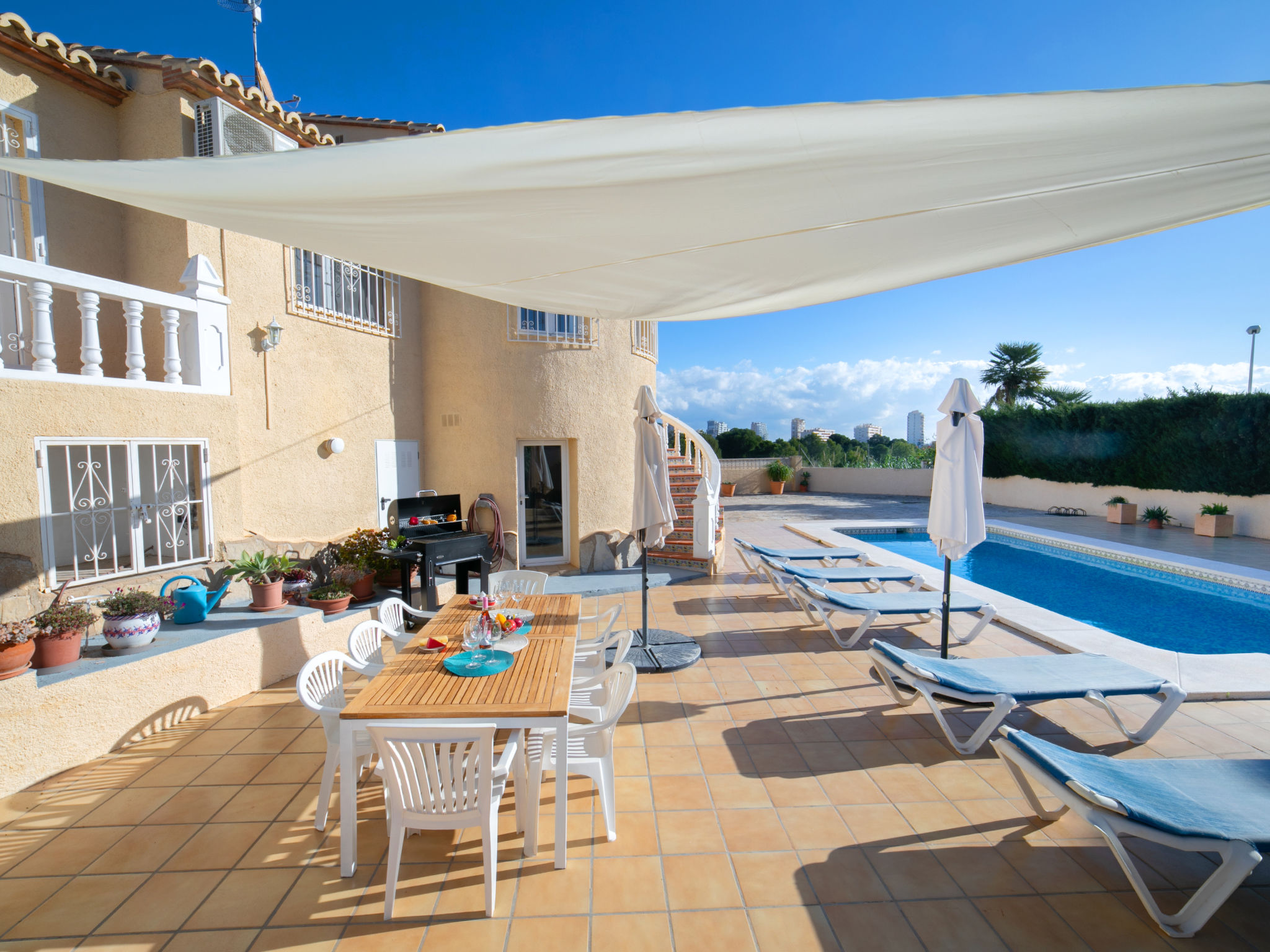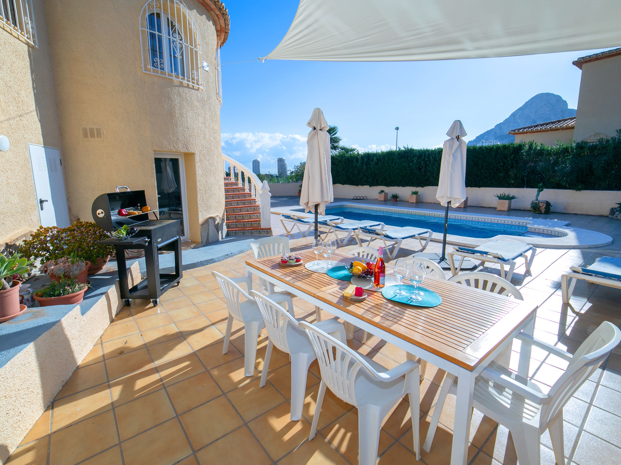 Schöne, komfortable Villa "Nina Rose", auf 2 Stockwerken. 2 km vom Zentrum von Calpe, sonnige Lage im Villenviertel, 1 km vom Meer, 1.2 km vom Strand. Zur Alleinbenutzung: Grundstück (eingezäunt), Schwimmbad (8 x 4 m, 60 - 170 cm tief, 01.01.-31.12.). Aussendusche, Grill. Im Hause: Wireless LAN, Wäscherei. Parkplatz auf dem Grundstück. Einkaufsgeschäft, Lebensmittelgeschäft, Supermarkt 500 m, Einkaufszentrum 2 km, Restaurant, Bar 350 m, Bahnstation 3.8 km, Sandstrand "Playa Arenal" 1.1 km. Sporthafen 2.4 km, Jacht-Hafen 2.4 km, Golfplatz (9 Loch) 12 km, Surfschule 2.1 km, Segelschule 2.4 km, Tennis 2.3 km, Wanderwege ab Haus 450 m. Nahe gelegene Sehenswürdigkeiten: Aqualandia, Mundomar, Terra Mítica, Terra Natura, Benidorm Palace (Benidorm), Guadalest 32.5 km, Fuentes del Algar 23.3 km. Wandergebiete: Parque Natural Peñón de Ifach. 2.2 km, Paseo ecológico Calpe - Benissa 3.5 km, Sierra de Olta 6.3 km.