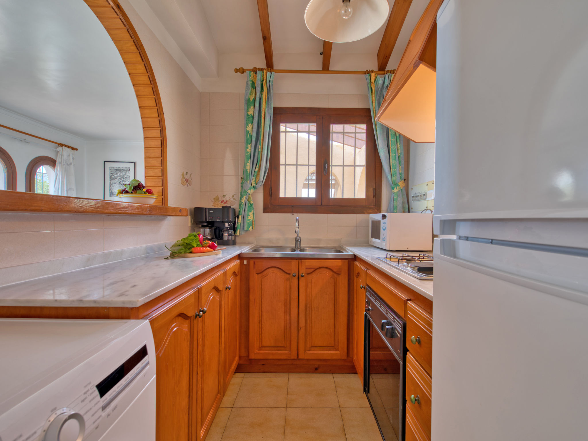 Empedrola: Schönes, komfortables Reihenhaus. 38 Häuser im Ferienresort. Im Ort, 6.2 km vom Zentrum von Calpe, ruhige, sonnige Lage im Villenviertel, 4 km vom Meer, 4.5 km vom Strand. Zur Mitbenutzung: Schwimmbad (saisonale Verfügbarkeit: 01.Jul.-31.Aug.). Aussendusche. Zur Alleinbenutzung: Grundstück (eingezäunt). Einkaufsgeschäft 3.8 km, Supermarkt 4 km, Restaurant 2 km, Bar 2 km, Bäckerei 3.8 km, Café 2 km, Internet-Café 2 km, Biergarten 2 km, Sandstrand "Playa de la Fossa" 4.5 km, Tauchzentrum 5.4 km. Sporthafen 5.4 km, Jacht-Hafen 5.4 km, Golfplatz 9.6 km, Surfschule 5.4 km, Segelschule 5.4 km, Reitstall 1.5 km, Wanderwege ab Haus 100 m. Nahe gelegene Sehenswürdigkeiten: Aqualandia, Mundomar, Terra Mítica, Terra Natura, Benidorm Palace (Benidorm). Wandergebiete: Peñon de Ifach. Jugendgruppen nur auf Anfrage. Bitte beachten: Ferienwohnung Ref. ES9730.435.2 befindet sich auf dem gleichen Grundstück. In dieser Anlage zusätzlich mietbar: 2 Bungalows.
