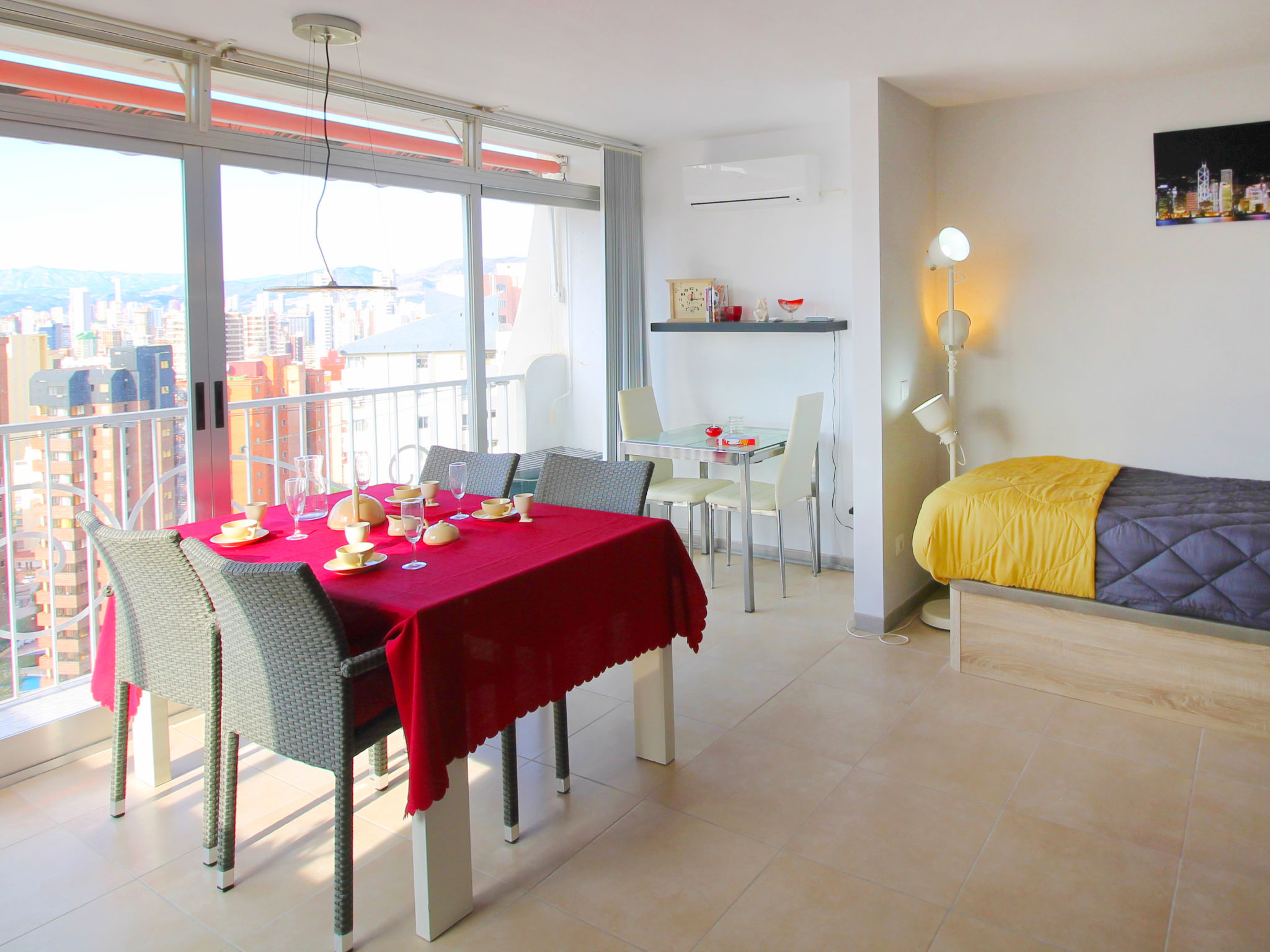 " Park Playa Levante", 2-Zimmer-Wohnung 56 m2 im 17. Stock, Ostlage. Objekt geeignet für 4 Erwachsene. Hell, renoviert im Jahre 2019, zweckmässig und komfortabel eingerichtet: Wohn-/Esszimmer mit 1 Bett, 1 Diwanbett, Digital-TV und Klimaanlage. Ausgang zur Veranda. 1 Zimmer mit 1 franz. Bett (135 cm, Länge 190 cm). Kochnische (2 Kochplatten, 2 Glaskeramikherd Platten, Toaster, Wasserkocher, Mikrowelle, Tiefkühler, elektrische Kaffeemaschine). Dusche/WC. Sicht auf das Schwimmbad, den Garten und die Ortschaft. Zur Verfügung: Waschmaschine, Bügeleisen, Haartrockner. Internet (Wireless LAN, gratis). AT323212BM