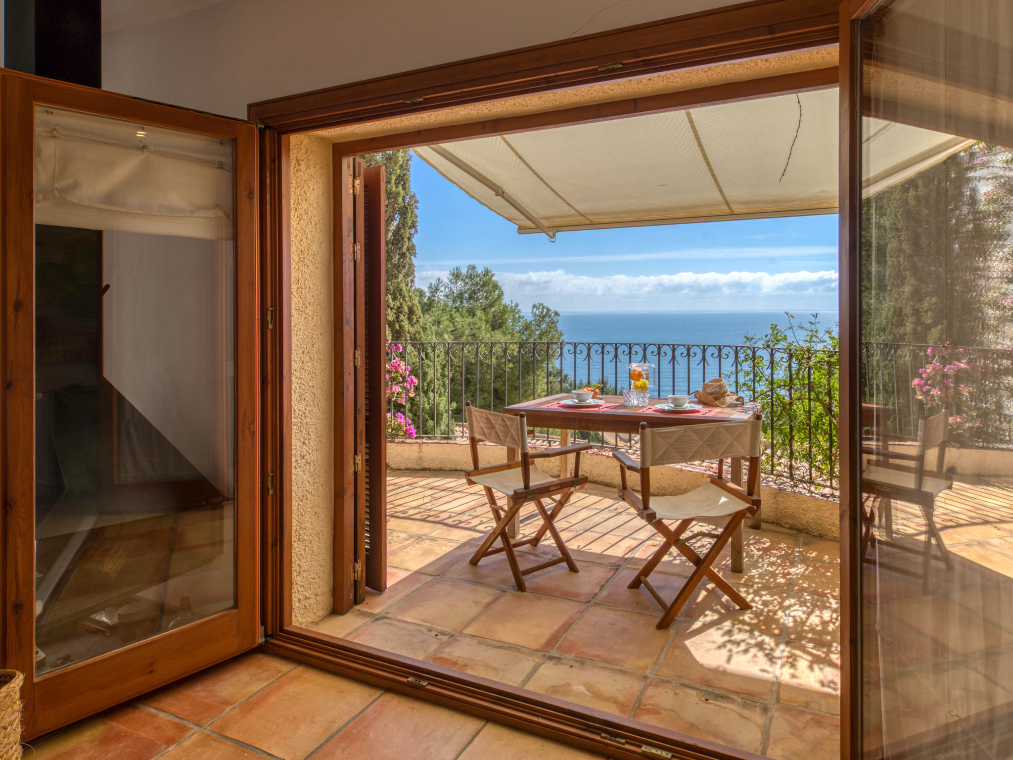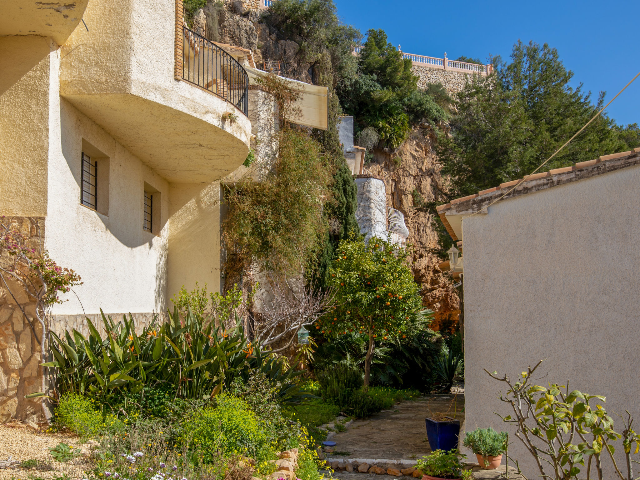 "Vista Halcon", 3-Zimmer-Reihenhaus 120 m2 auf 3 Stockwerken. Schön und stilvoll eingerichtet: Wohn-/Esszimmer mit Digital-TV. Ausgang zur Terrasse. Offene Küche (3 Glaskeramikherd Platten, Mikrowelle, elektrische Kaffeemaschine). Dusche/WC. Unteres Geschoss: 1 Zimmer mit 1 franz. Bett (160 cm, Länge 190 cm). Durchgangszimmer mit 1 Bett (90 cm, Länge 200 cm). Dusche/WC, sep. WC. Grosse Terrasse. Terrassenmöbel. Herrliche Sicht auf das Meer und das Tal. Zur Verfügung: Waschmaschine, Bügeleisen, Haartrockner. Bitte beachten: TV nur ES. En planta Inferior -1: 1 dorm con 1 cama-nido (2 pers. 2x90cm 190 cm) 1 Baño Ducha. VT-487019-A