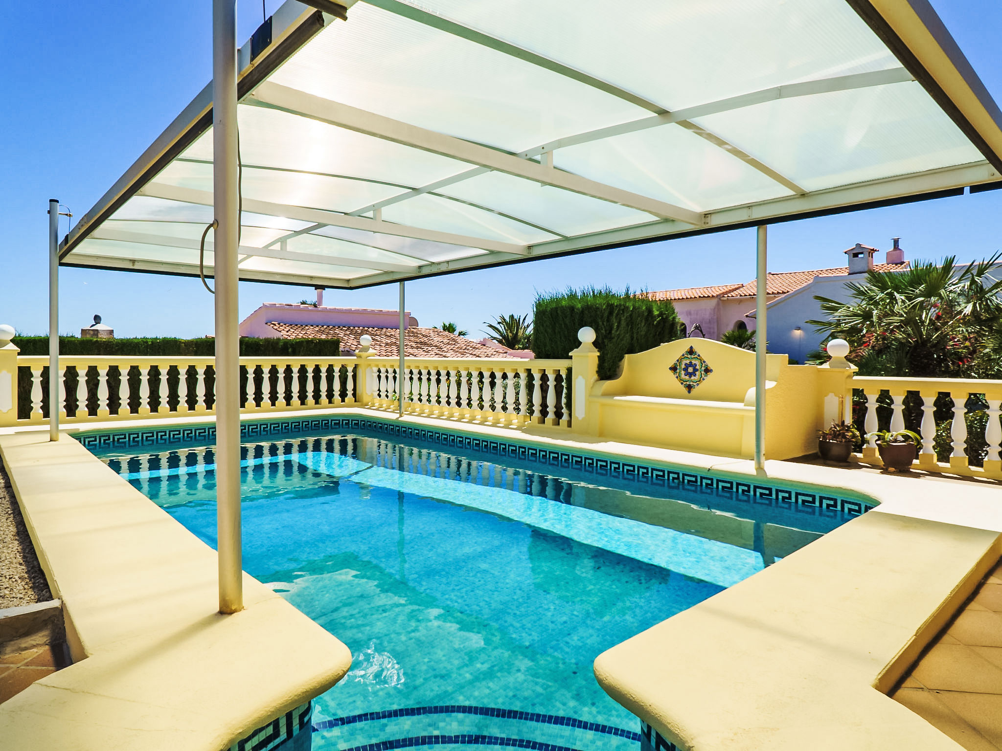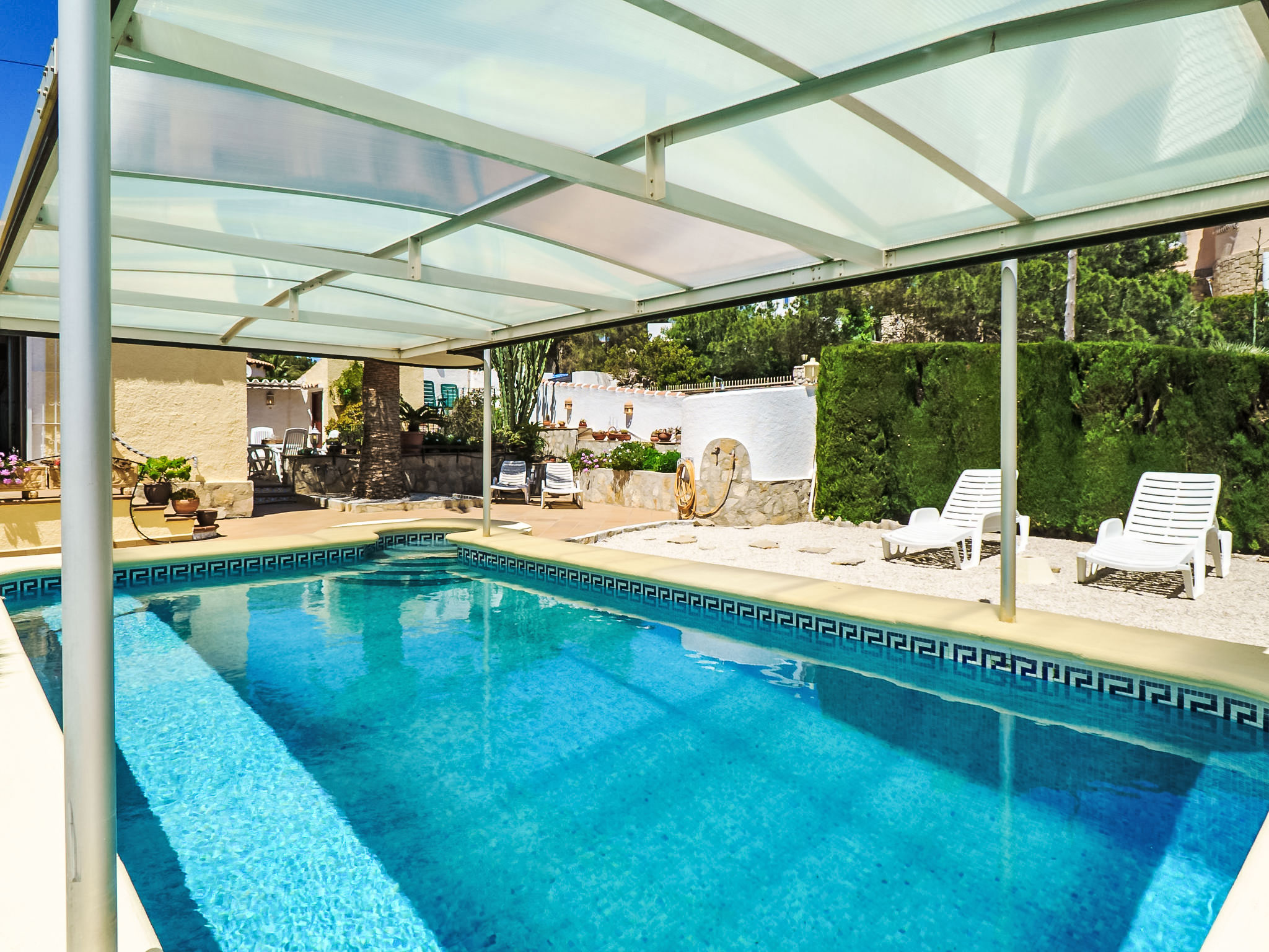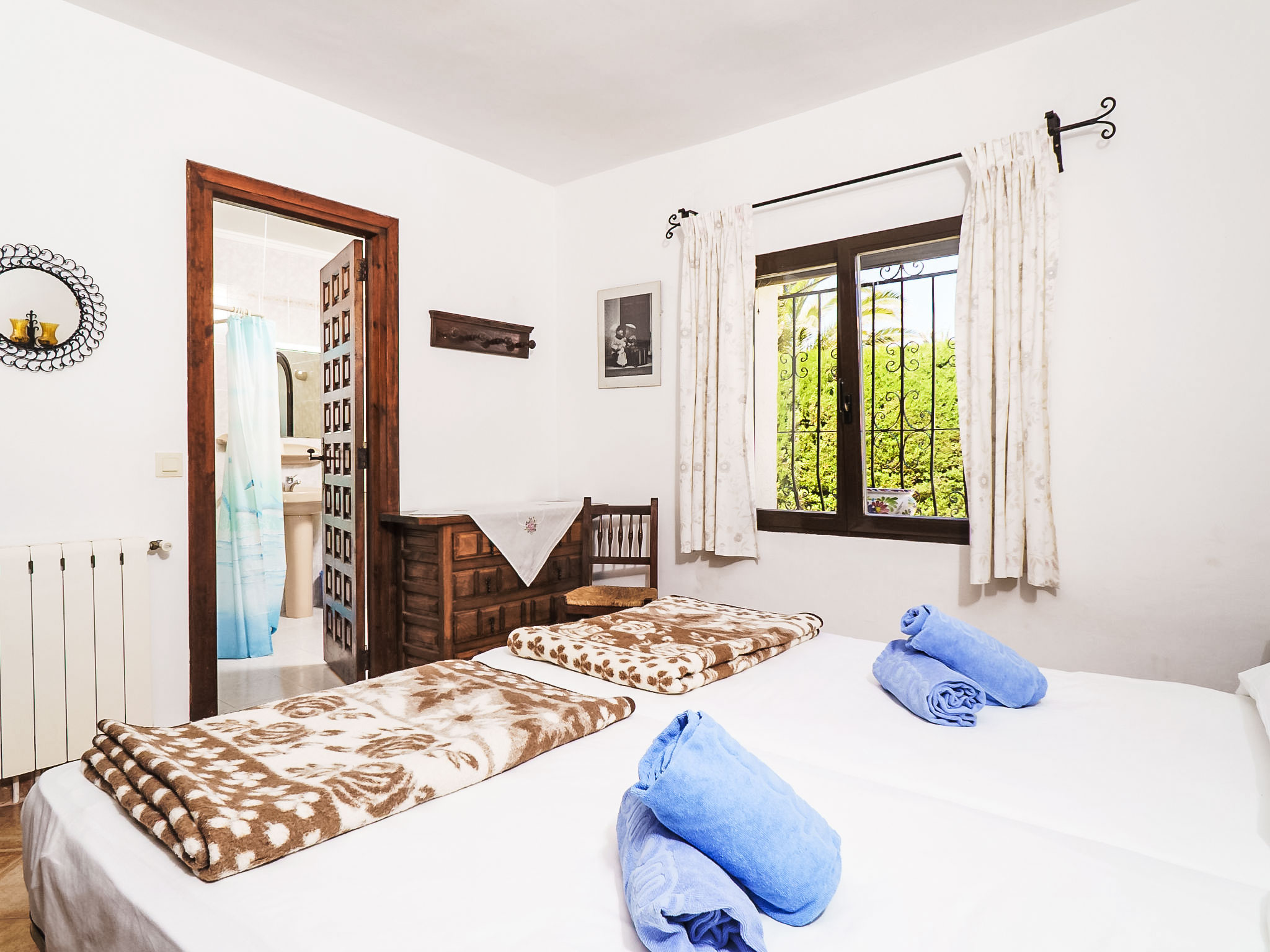 Einfamilienhaus "Pedro". Im Ortsteil Balcón al Mar, 6 km vom Meer. Zur Alleinbenutzung: Garten 1'200 m2 (eingezäunt) mit Pflanzen und Bäumen, Schwimmbad (4 x 8 m, 01.01.-31.12.) mit Innentreppe. Aussendusche. Im Hause: Dachterrasse, Zentralheizung. Supermarkt 1.6 km, Restaurant 800 m, Sandstrand "Arenal" 12 km. Tennis 1.6 km.