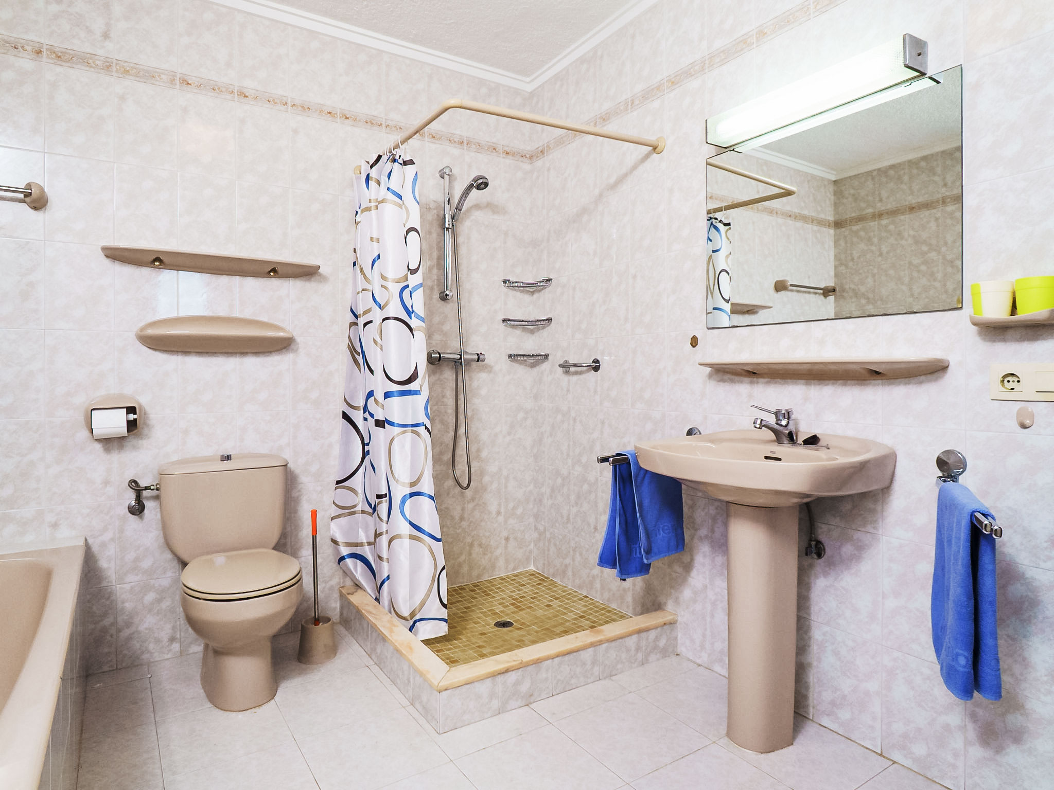4-Zimmer-Haus 100 m2. Zweckmässig eingerichtet: Wohnzimmer mit Sat-TV (Flachbildschirm). Esszimmer mit Sat-TV (Flachbildschirm), Ventilator. 1 Zimmer mit 2 Betten, Dusche/WC, TV und Flachbildschirm. 1 Zimmer mit 2 Betten und Bad/Dusche/WC. Kleine Küche (Geschirrspüler, Mikrowelle, Tiefkühler, elektrische Kaffeemaschine). Terrassenmöbel, Liegestühle (4). Schöne Panoramasicht auf das Meer. Zur Verfügung: Waschmaschine. Internet (Wireless LAN, gratis). Parkplatz (eingezäunt, 2 Autos) beim Haus. 1 Haustier/Hund erlaubt. AT-440259-A