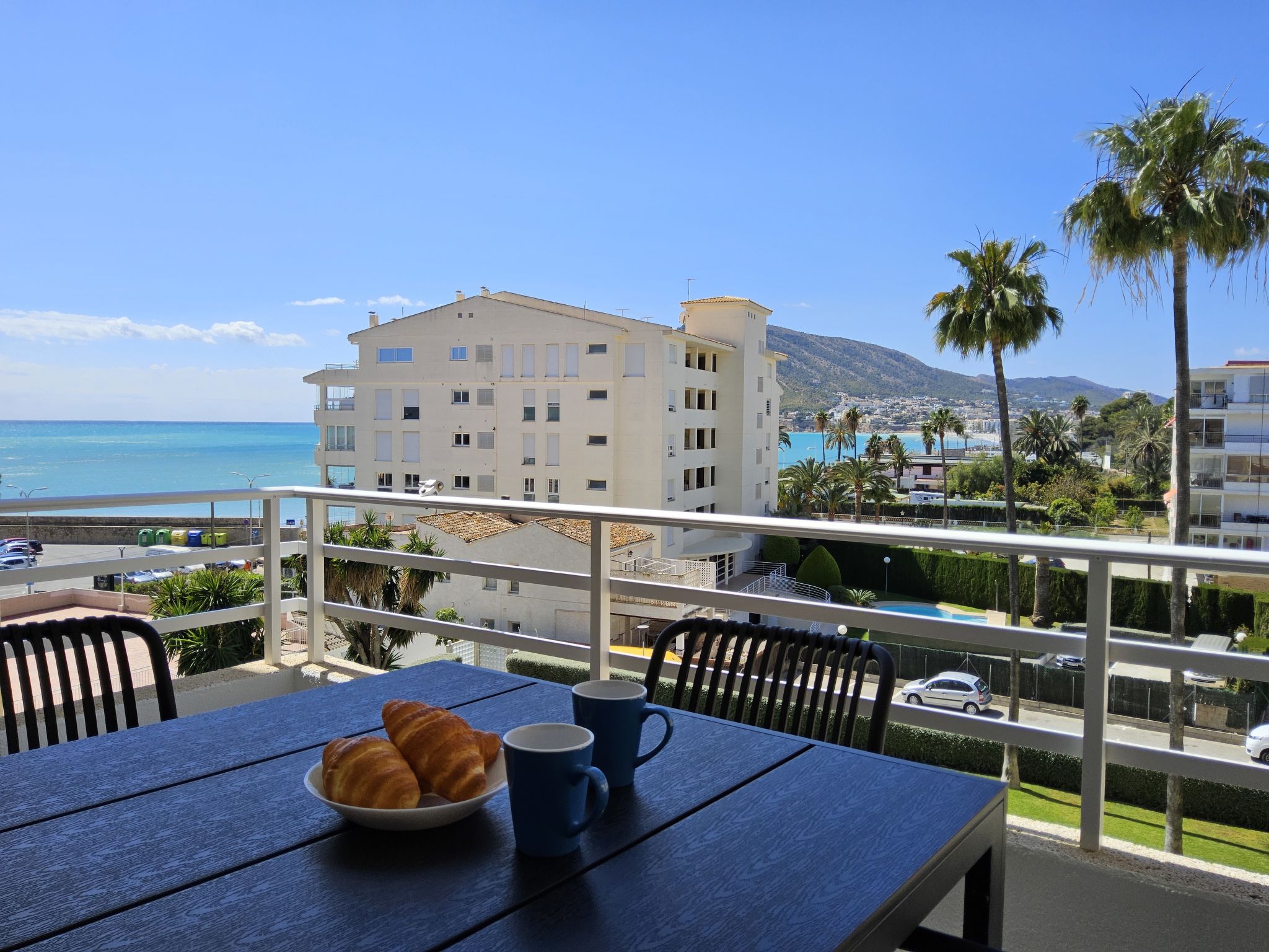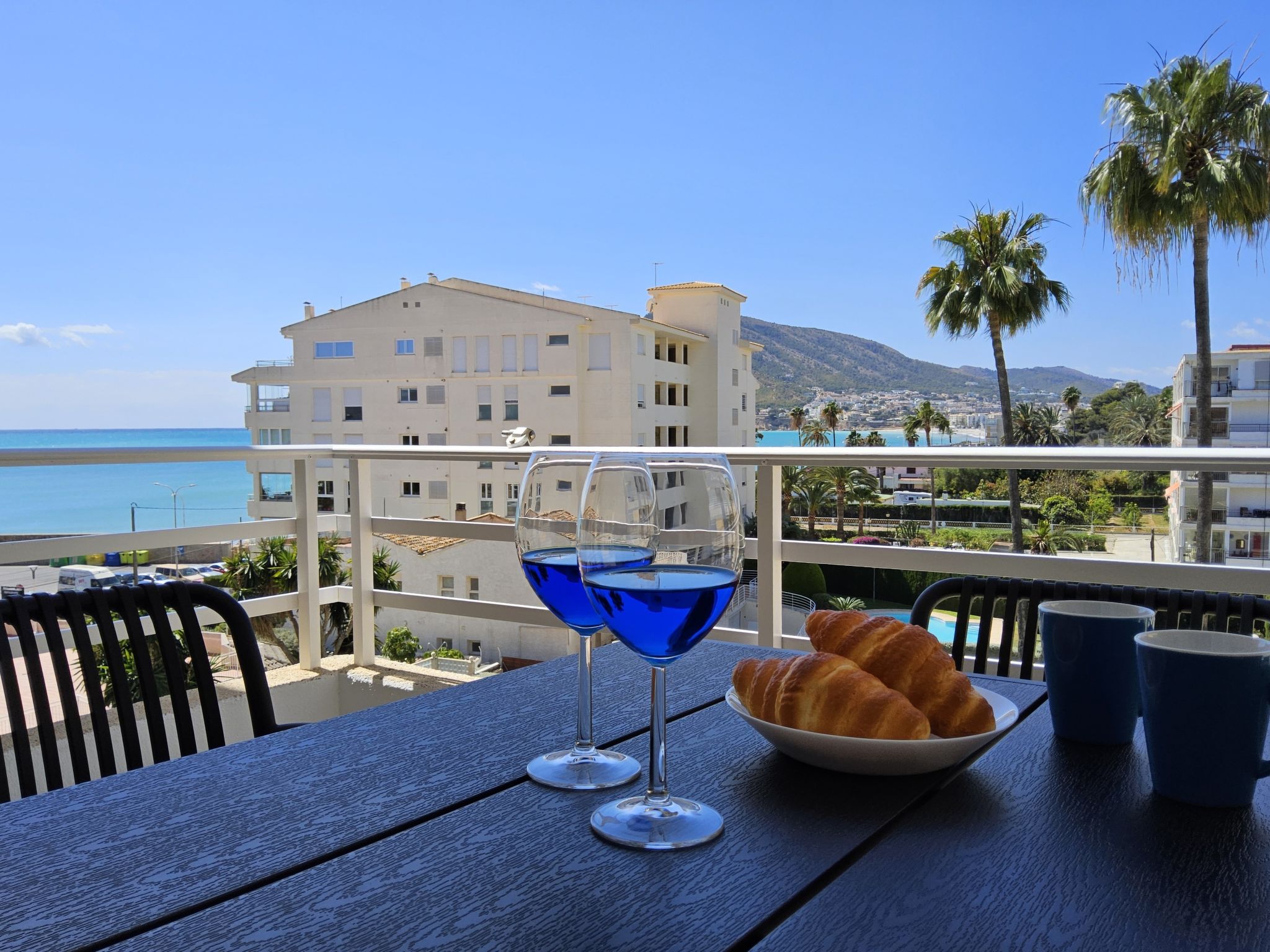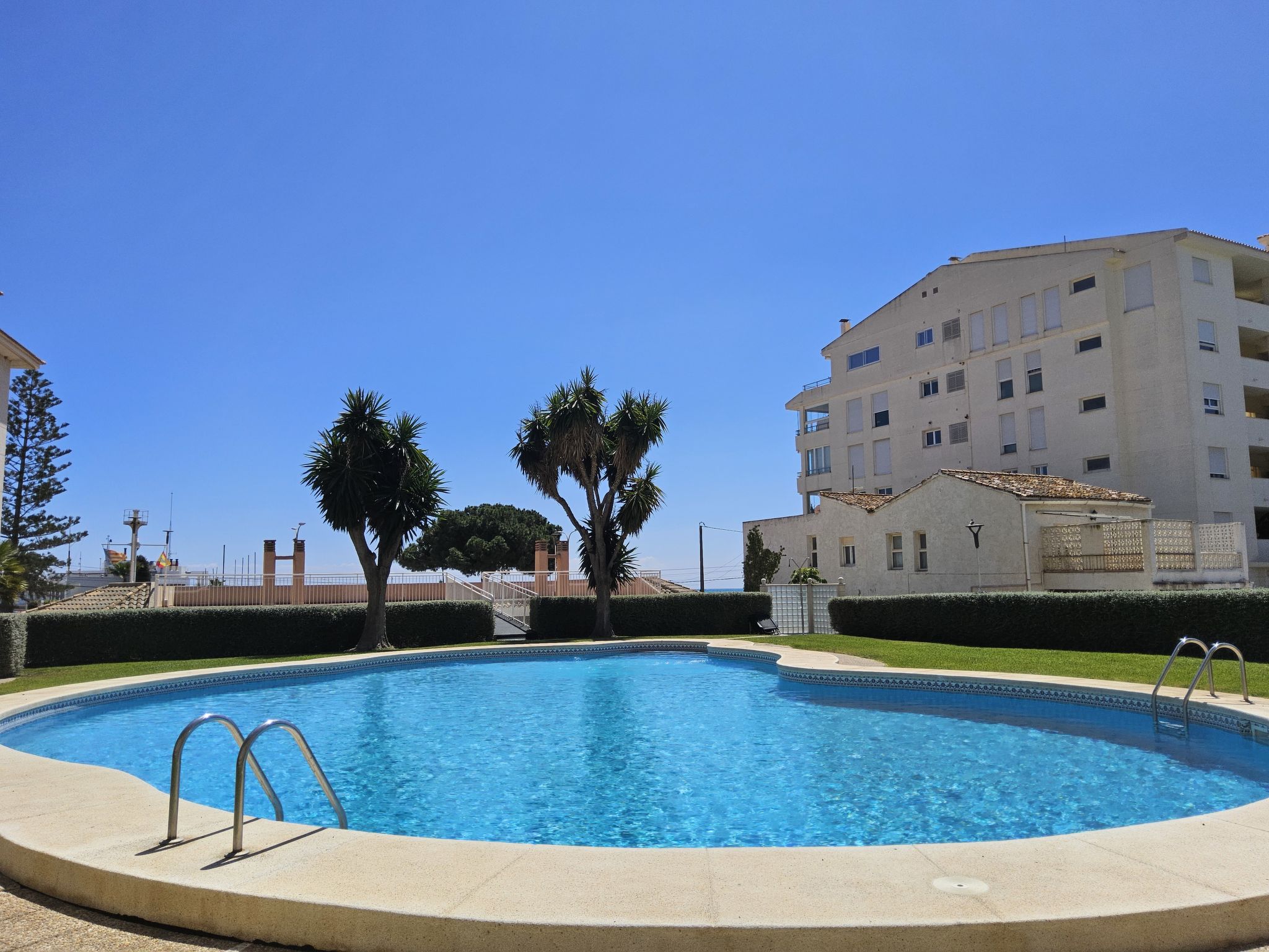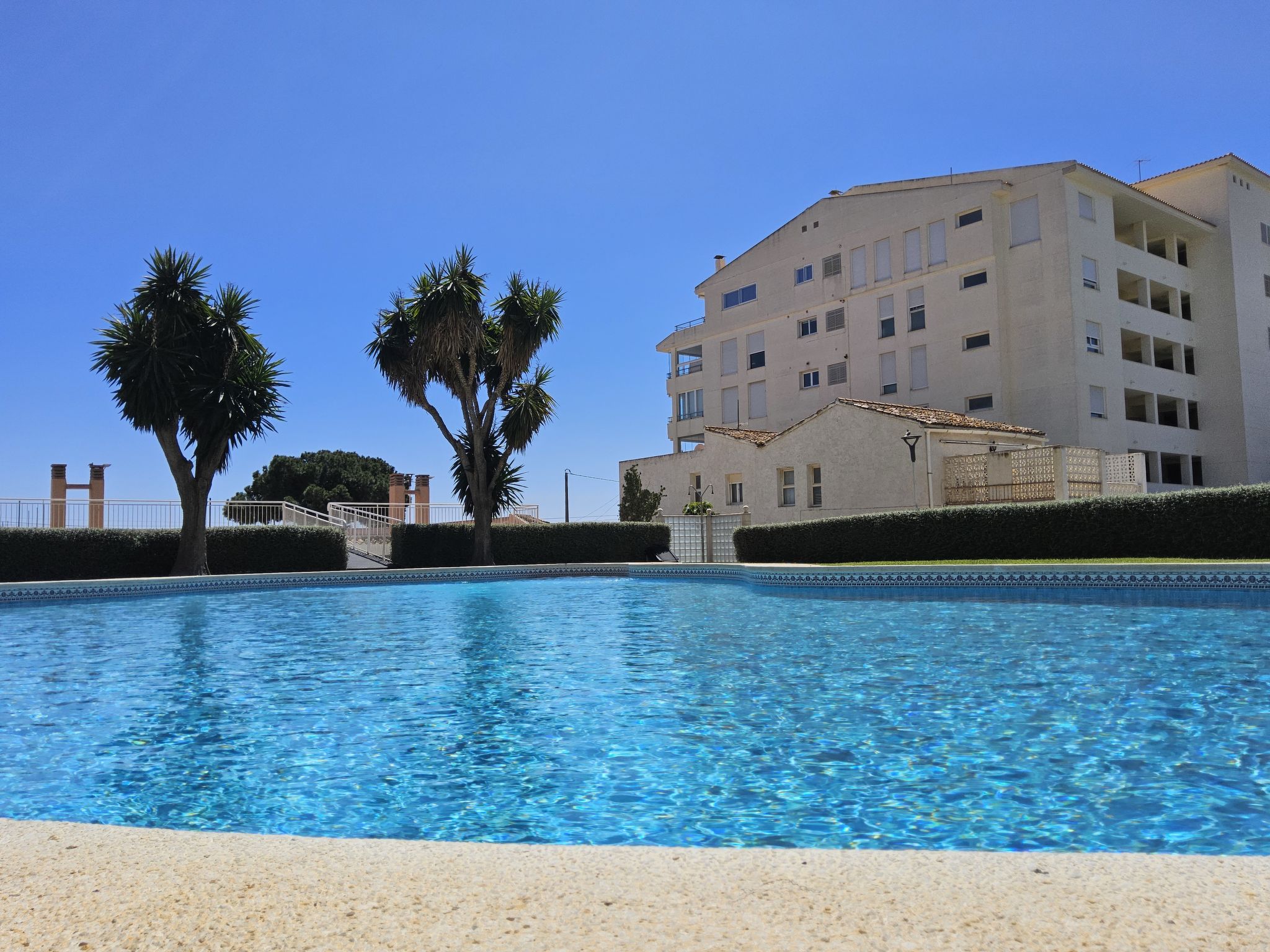 "Sol y Mar", 3-Zimmer-Wohnung 51 m2 im 4. Stock. Zweckmässig und komfortabel eingerichtet: Wohn-/Esszimmer 24 m2 mit Digital-TV. Ausgang zur Terrasse. 1 Zimmer 10 m2 mit 1 franz. Bett (150 cm, Länge 190 cm). 1 Zimmer 4 m2 mit 1 franz. Bett (135 cm, Länge 190 cm). Offene Küche 3 m2 (4 Kochplatten, Toaster, Wasserkocher, Mikrowelle, Tiefkühler, elektrische Kaffeemaschine). Dusche/WC. Terrasse 7 m2. Terrassenmöbel. Sehr schöne Sicht auf das Meer, das Schwimmbad und den Garten. Zur Verfügung: Waschmaschine, Bügeleisen, Haartrockner. Internet (Wireless LAN, gratis). Parkplatz (eingezäunt). AT441492A