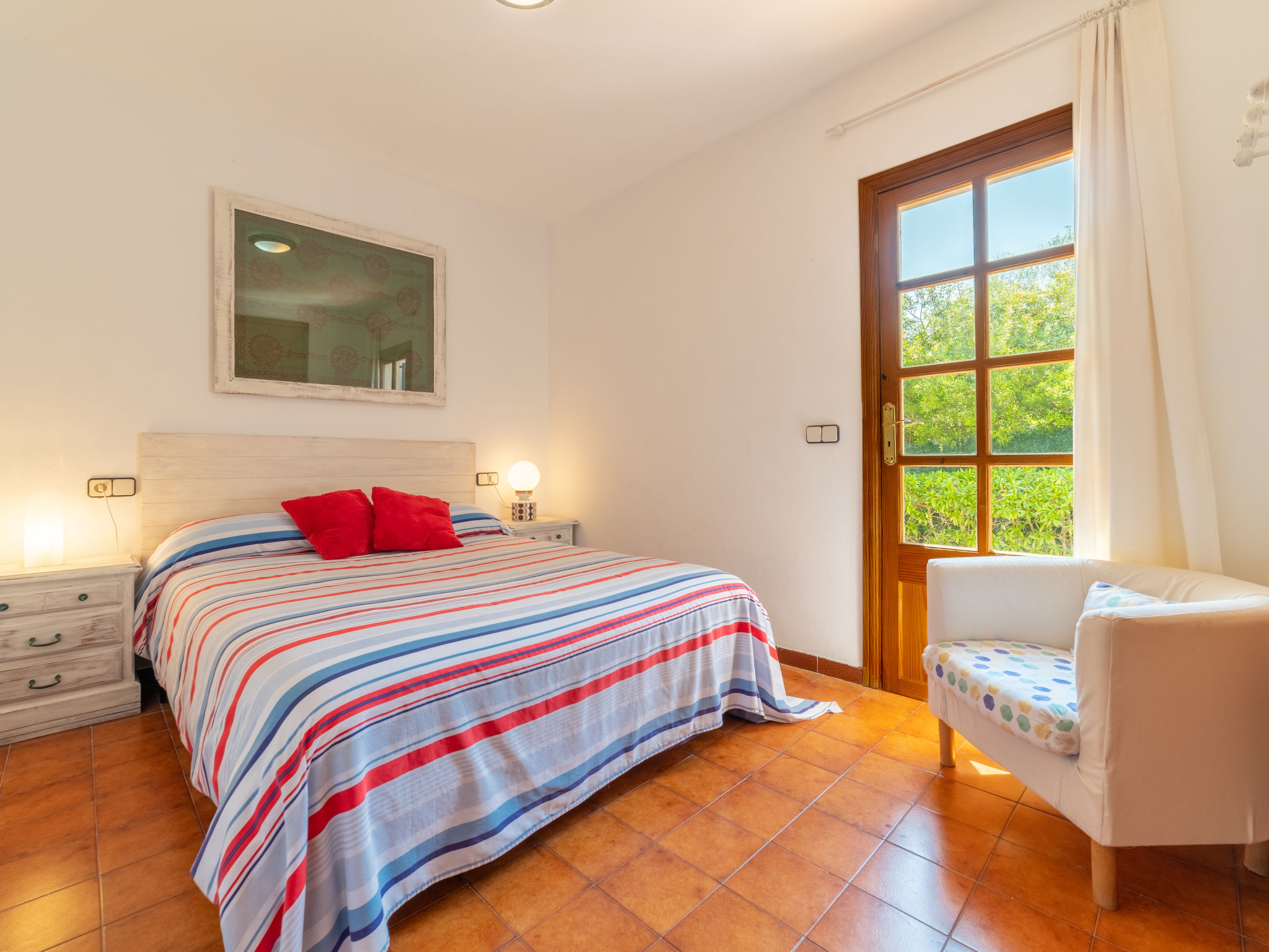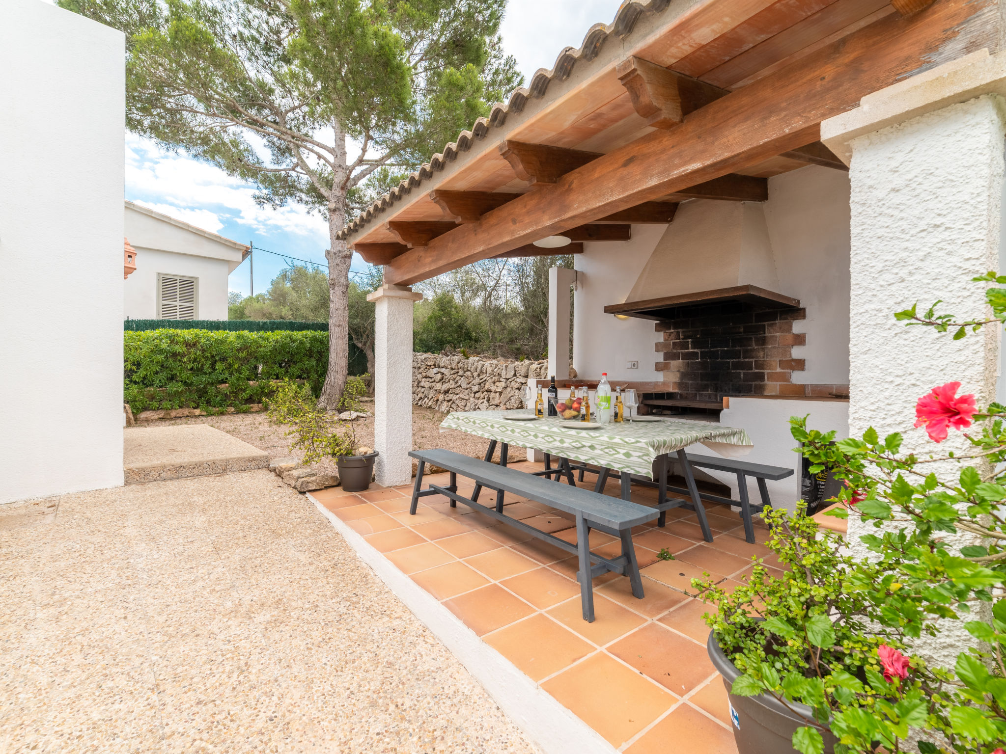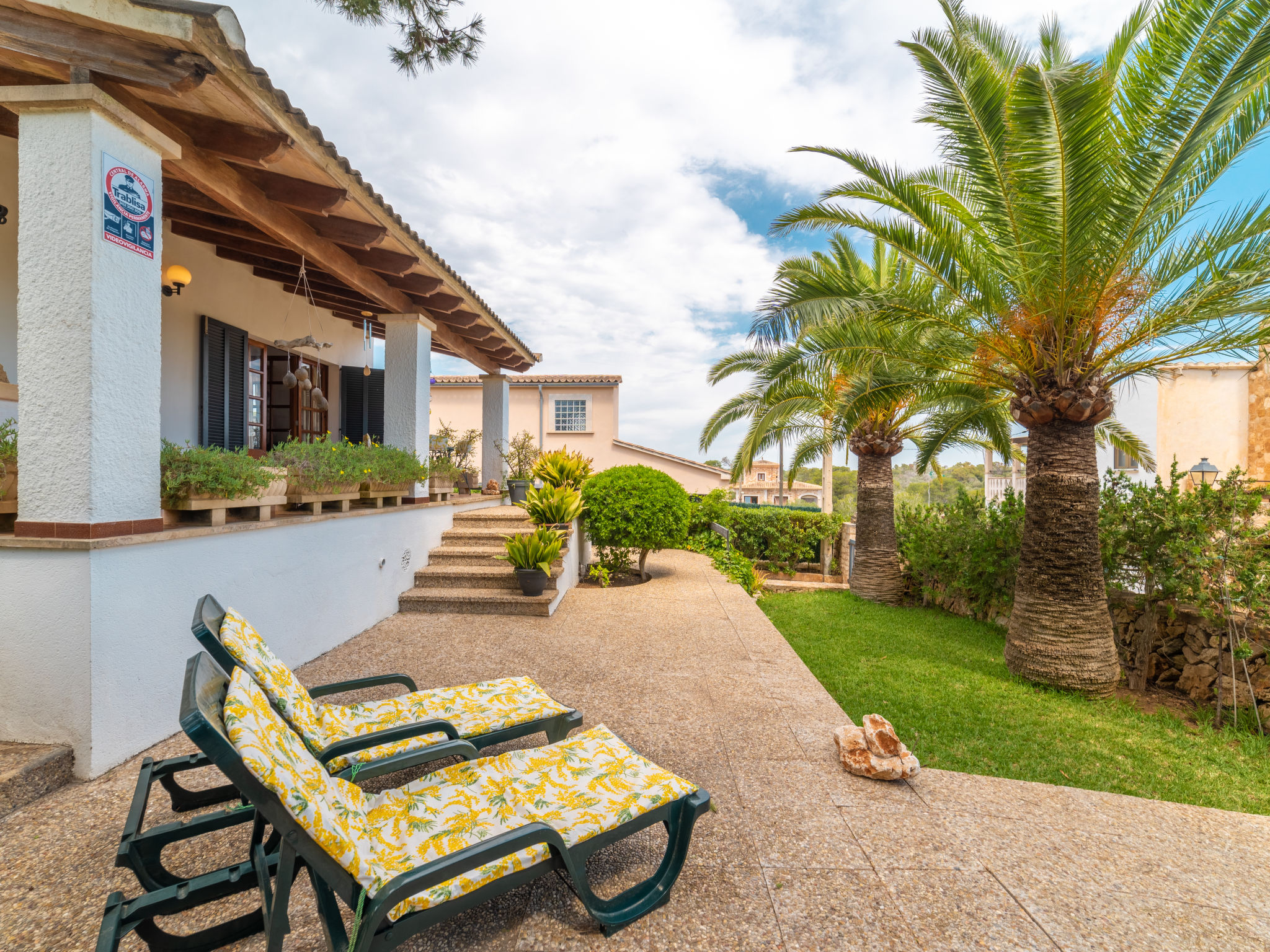 Das ansprechende Ferienhaus steht auf einem abgeschlossenen, ca. 300 m² großen, gepflegten Grundstück mit Sträuchern, Blumen und kleiner Rasenfläche. Zum Sandstrand der Cala Llombards ca. 300 m. Bar, Einkaufsmöglichkeit und Restaurant ca. 600 m. Überdachte Parkmöglichkeit auf dem Grundstück. Das Haus hat eine überdachte Terrasse mit Mobiliar, Grillstelle mit Tisch und Bänken sowie 2 Sonnenliegen. Feriengerechte Einrichtung. Fliesenböden. Sat-TV (deutsche Programme). Waschmaschine, Bügeleisen/-brett. 2 Elektroradiatoren, im Wohnraum Klimaanlage mit Kühl-/Heizfunktion. Hinweis: Rauchen ist im Haus nicht gestattet.