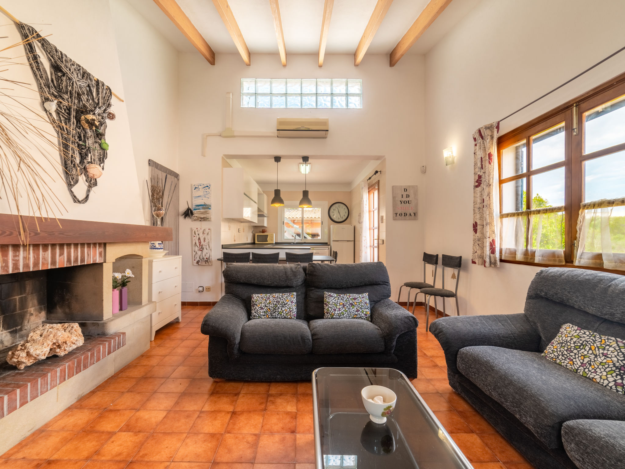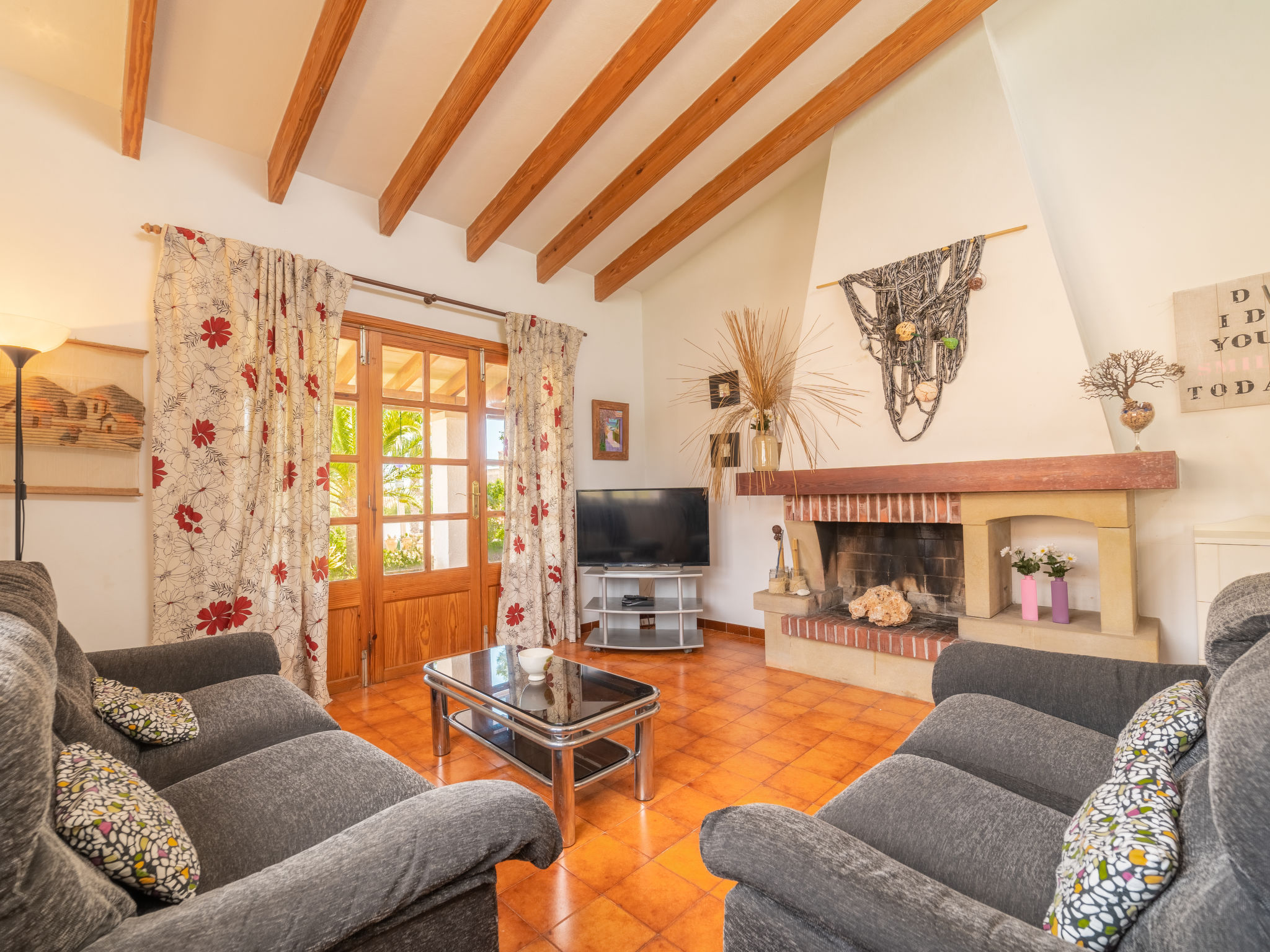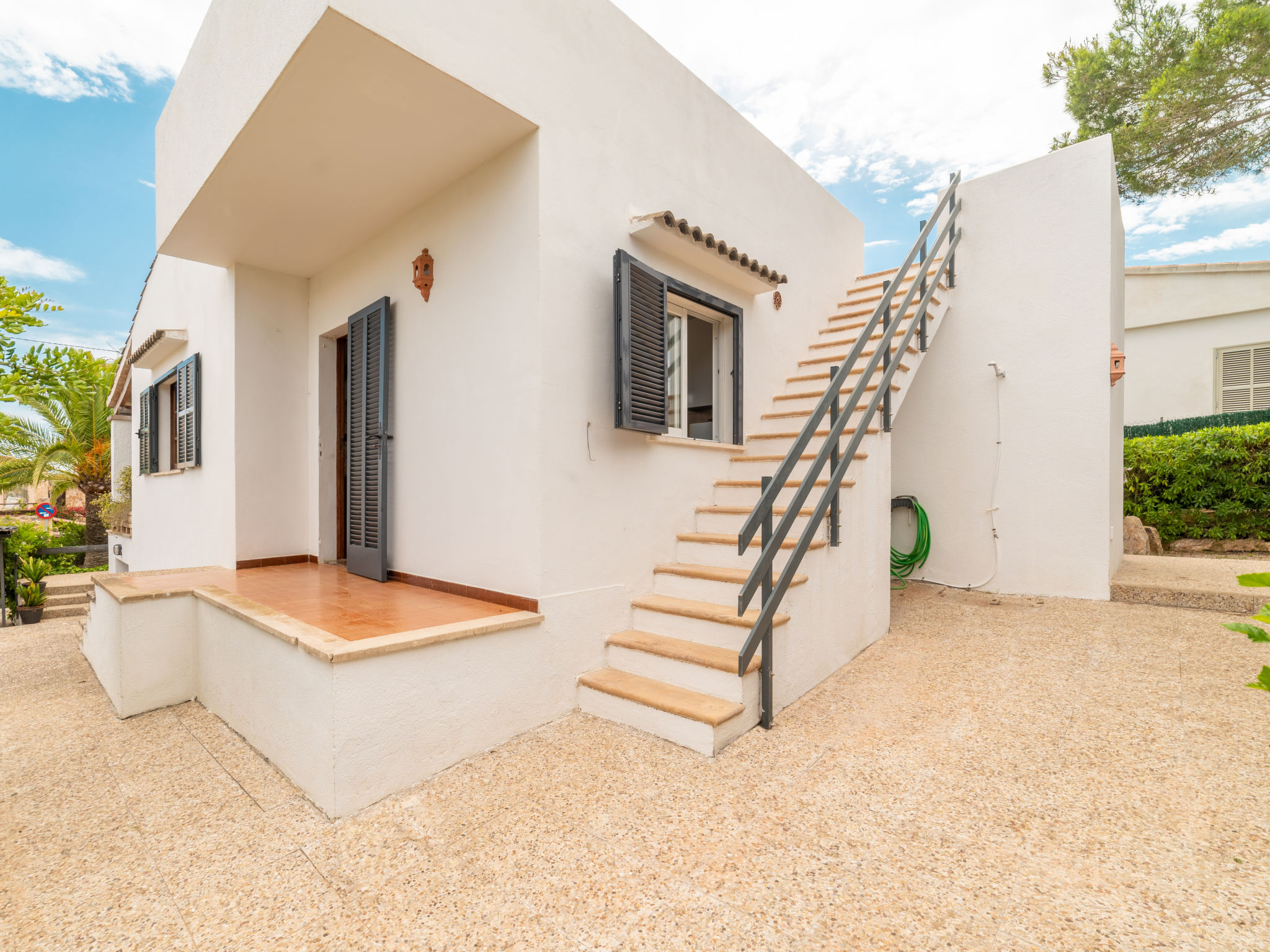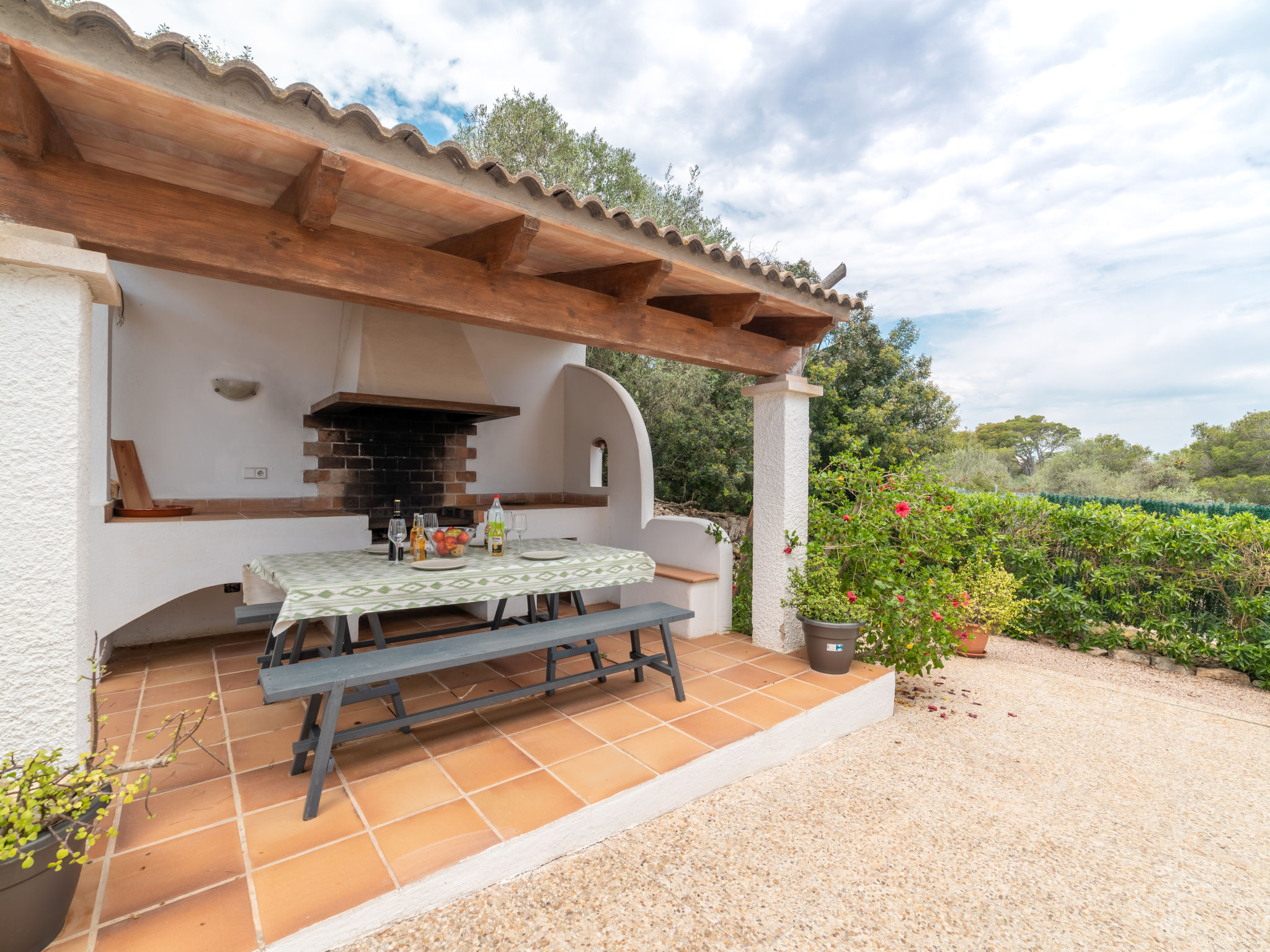 Das ansprechende Ferienhaus steht auf einem abgeschlossenen, ca. 300 m² großen, gepflegten Grundstück mit Sträuchern, Blumen und kleiner Rasenfläche. Zum Sandstrand der Cala Llombards ca. 300 m. Bar, Einkaufsmöglichkeit und Restaurant ca. 600 m. Überdachte Parkmöglichkeit auf dem Grundstück. Das Haus hat eine überdachte Terrasse mit Mobiliar, Grillstelle mit Tisch und Bänken sowie 2 Sonnenliegen. Feriengerechte Einrichtung. Fliesenböden. Sat-TV (deutsche Programme). Waschmaschine, Bügeleisen/-brett. 2 Elektroradiatoren, im Wohnraum Klimaanlage mit Kühl-/Heizfunktion. Hinweis: Rauchen ist im Haus nicht gestattet.