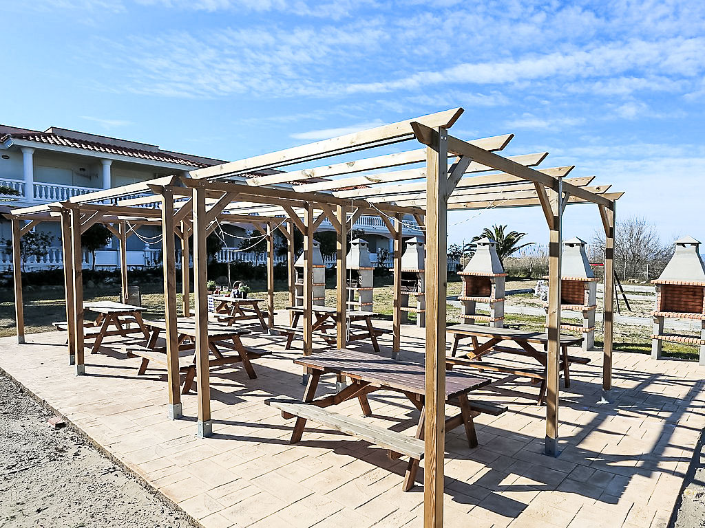 Riumar 10 km von Deltebre: Kinderfreundliches, schönes Appartementhaus "Royal Delta", auf 2 Stockwerken, umgeben von Feldern. 20 Wohnungen in der Residenz. Ruhige, sonnige Lage, 50 m vom Meer, 50 m vom Strand, direkter Zugang zum Strand. Zur Mitbenutzung: schöner Garten mit Rasen, Schwimmbad eckig (20 x 10 m, saisonale Verfügbarkeit: 01.Jan.-31.Dez.) mit Innentreppe. Kinderbecken, Aussendusche, Tennis, Grill. Im Hause: Wireless LAN. Parkplatz auf dem Grundstück. Einkaufsgeschäft, Restaurant 100 m. Bitte beachten: Babyausstattung auf Anfrage. Jugendgruppen nur auf Anfrage. Das Foto ist nur ein Hausbeispiel.
