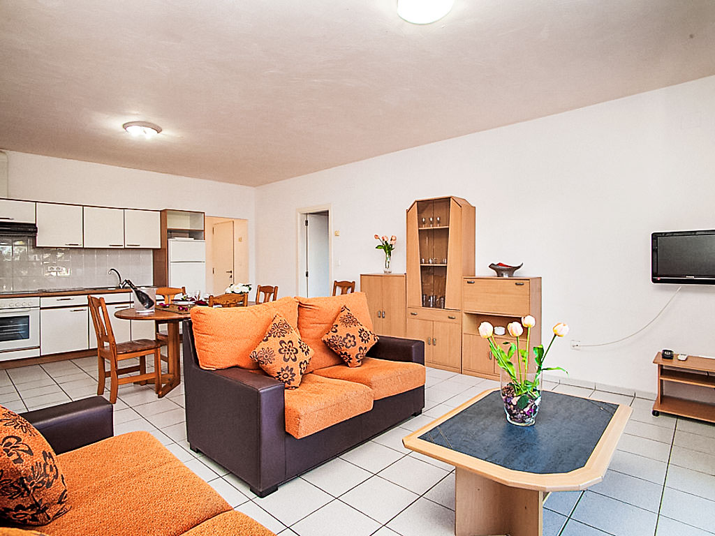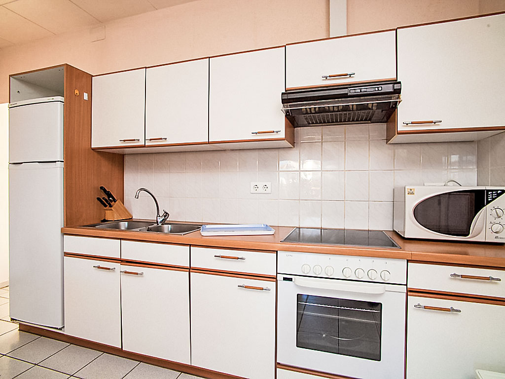 4-Zimmer-Wohnung 115 m2, im Obergeschoss. Zweckmässig und komfortabel eingerichtet: Wohn-/Esszimmer mit Sat-TV und Klimaanlage. Ausgang zur Terrasse. 1 Zimmer mit 1 franz. Bett und Bad/Bidet/WC. Ausgang zur Terrasse. 1 Zimmer mit 2 Betten. 1 Zimmer mit 2 Betten. Offene Küche (Backofen, X Glaskeramikherd Platten, Mikrowelle, elektrische Kaffeemaschine). Dusche/WC. Grosse Terrasse. Terrassenmöbel. Sicht auf das Meer, das Schwimmbad und den Garten. Zur Verfügung: Waschmaschine. Internet (Wireless LAN, gratis). Geeignet für Familien. 2 Haustiere/Hunde erlaubt. HUTTE001685
