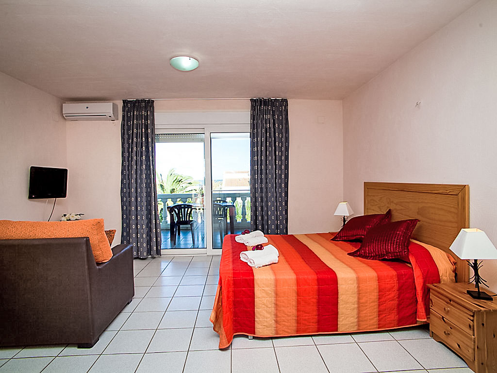 1-Zimmer-Studio 45 m2, im Obergeschoss. Zweckmässig und komfortabel eingerichtet: Wohn-/Esszimmer mit 1 franz. Bett, 1 Schlafmöglichkeit, Sat-TV und Klimaanlage. Ausgang zur Terrasse. Ausgang zur Terrasse. Kochnische (Backofen, X Glaskeramikherd Platten, Mikrowelle, elektrische Kaffeemaschine). Bad/WC. Bodenheizung. Grosse Terrasse. Terrassenmöbel. Sicht auf das Meer, das Schwimmbad und den Garten. Zur Verfügung: Waschmaschine. Internet (Wireless LAN, gratis). Geeignet für Familien. 2 Haustiere/Hunde erlaubt. HUTTE001686