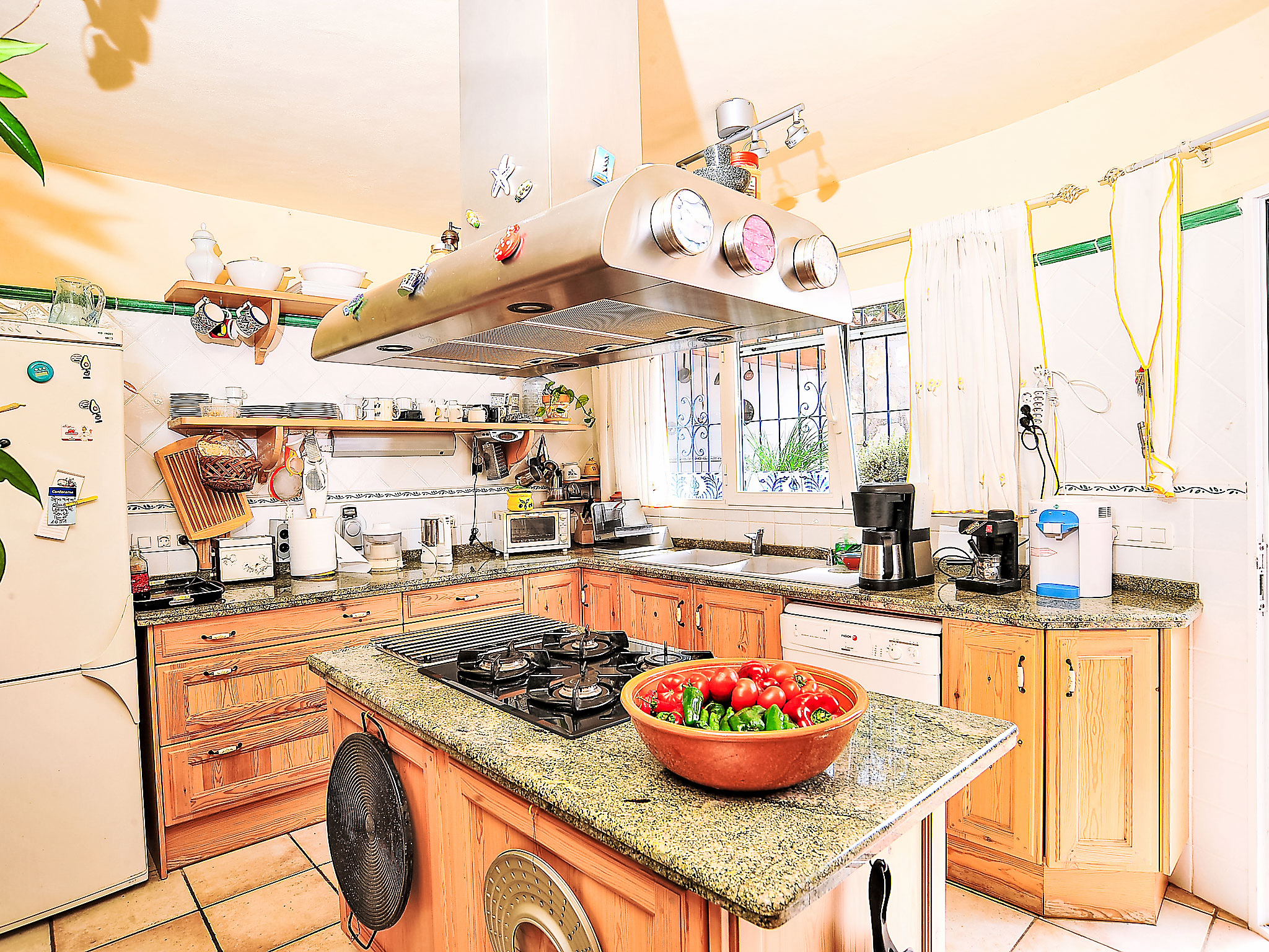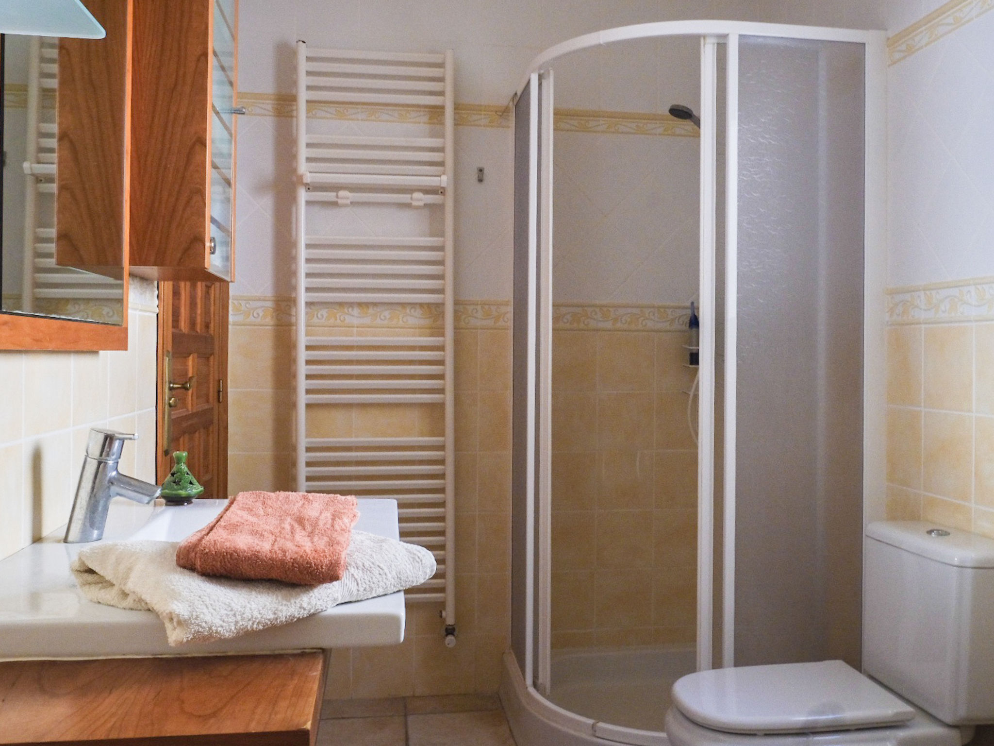 "Mirada al Sol", 6-Zimmer-Haus 210 m2 auf 2 Stockwerken. Geräumig, vollständig renoviert, komfortabel und gemütlich eingerichtet: grosses Wohn-/Esszimmer mit Schwedenofen, Sat-TV, Stereoanlage und Klimaanlage. Ausgang zur Terrasse, zum Schwimmbad. 1 Zimmer mit 2 Betten und Klimaanlage. 1 Zimmer mit 1 franz. Bett (140 cm, Länge 200 cm), Klimaanlage. 1 Zimmer mit 2 Betten und Klimaanlage. Grosse, offene Küche (Backofen, Geschirrspüler, Mikrowelle, Tiefkühler, elektrische Kaffeemaschine, Kochinsel). Dusche/Bidet/WC, Bad/Dusche/WC. Unteres Geschoss: (Aussentreppe) Wohn-/Esszimmer mit 1 Doppeldiwanbett und Sat-TV. Ausgang zum Garten, zur Terrasse. 1 Doppelzimmer mit Dusche/WC. Offene Küche (Backofen, Tiefkühler, Grill). 2 grosse Terrassen teilweise überdacht, Gartensitzplatz. Terrassenmöbel, Gartengrill. Zur Verfügung: Waschmaschine, Kinderhochstuhl, Babybett bis 3 Jahre. Internet (Wireless LAN, gratis). Geeignet für Familien. 1 Haustier/Hund erlaubt. AT-440988-A