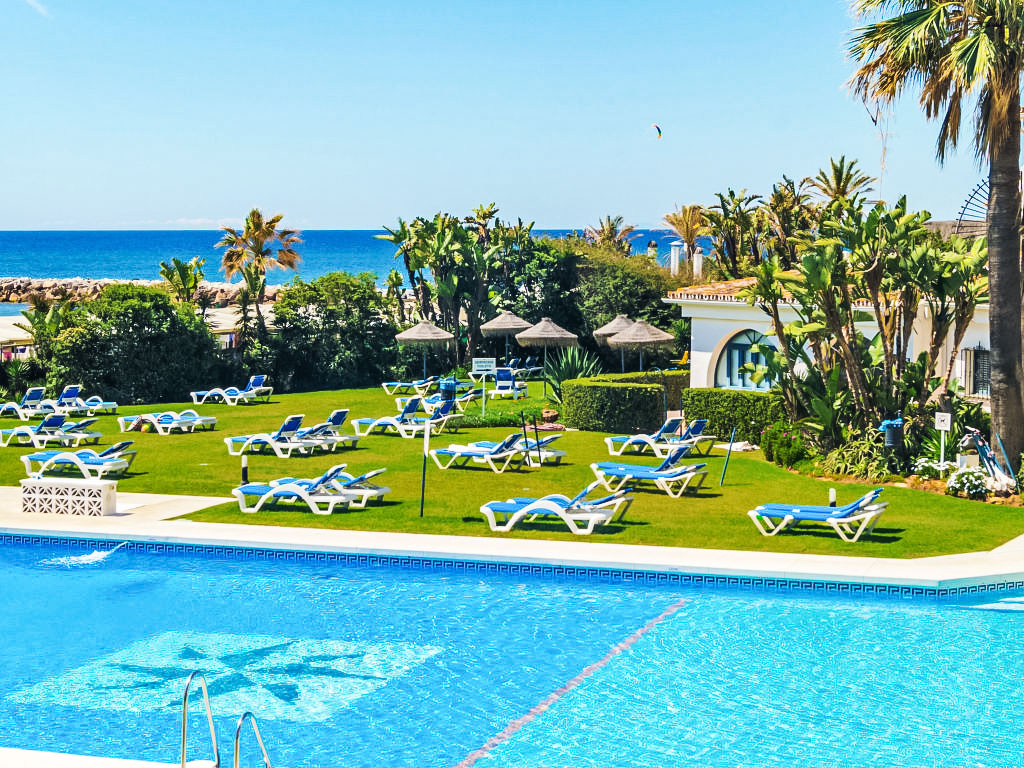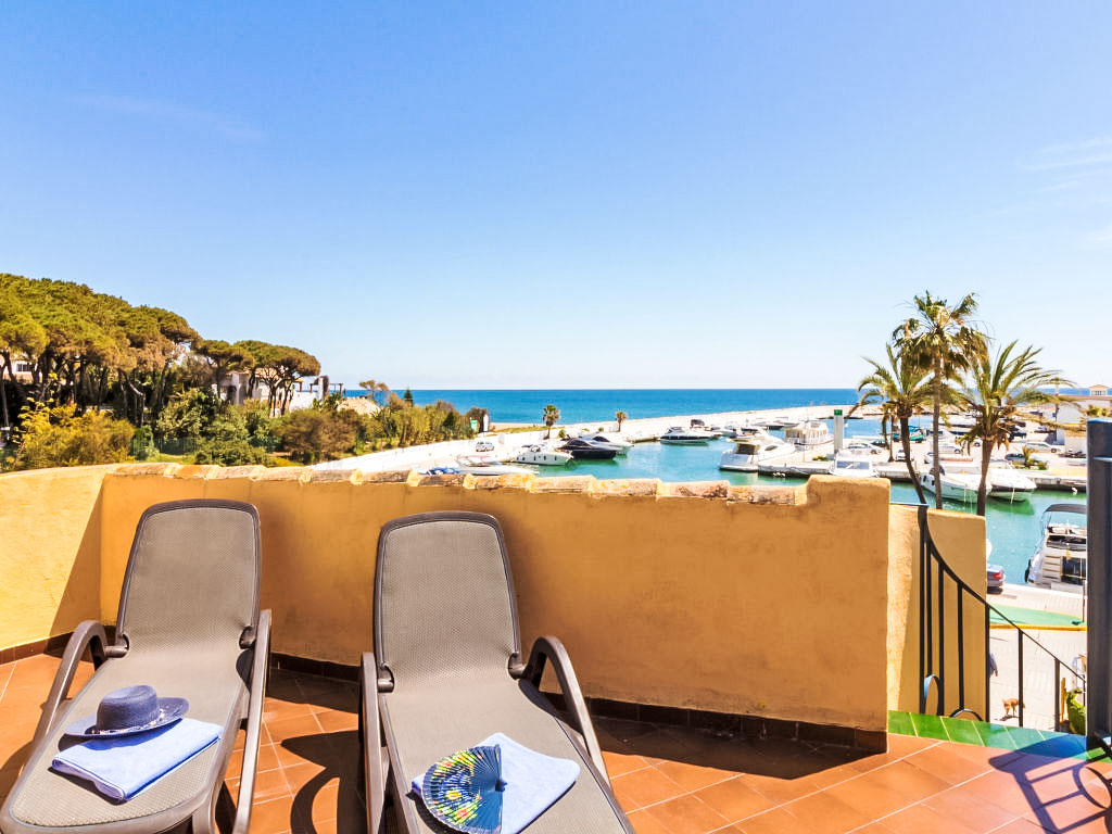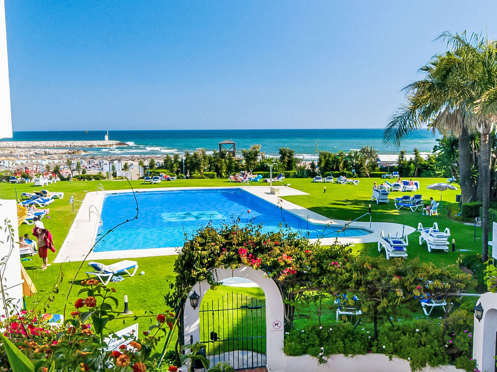 Puerto Cabopino: Grosses, komfortables Appartementhaus "Cabopino". Ausserhalb des Ortes, 14 km vom Zentrum von Marbella, 50 m vom Meer. Zur Mitbenutzung: Grundstück, Garten mit Rasen, Schwimmbad (saisonale Verfügbarkeit: 01.Mai.-30.Okt.). Kinderbecken, Aussendusche, Kinderspielplatz. Im Hause: Fahrstuhl. Gemeinschaftsgarage. Supermarkt 1 km, Einkaufszentrum 1 km, Restaurant 50 m, Bushaltestelle 200 m, Sandstrand 50 m. Golfplatz 1 km, Reitstall 5 km. Bitte beachten: Hauptstrasse 300 m vom Haus.