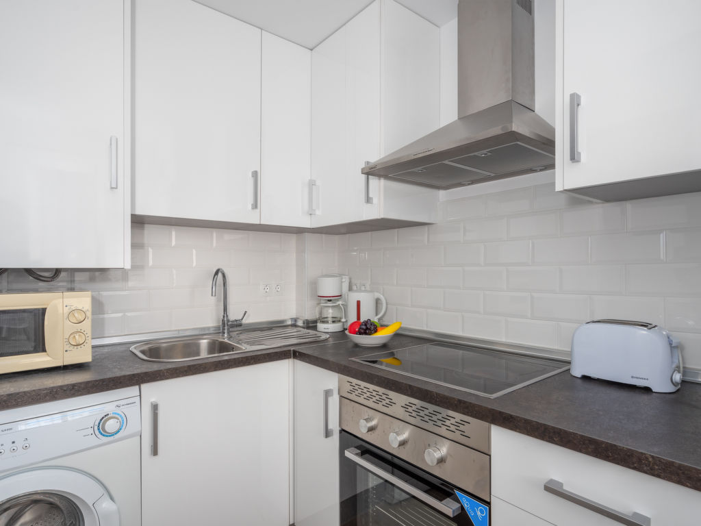 3-Zimmer-Wohnung 60 m2 im 7. Stock. Objekt geeignet für 2 Erwachsene + 2 Kinder. Zweckmässig und komfortabel eingerichtet: Wohn-/Esszimmer mit Digital-TV, Flachbildschirm, Klimaanlage und Warmluftheizung. Ausgang zum Balkon. 1 Zimmer mit 1 franz. Bett (135 cm). 1 Doppelzimmer mit 2 Betten (90 cm). Küche (Backofen, 3 Glaskeramikherd Platten, Toaster, Wasserkocher, Mikrowelle, elektrische Kaffeemaschine). Dusche/WC. Kleiner Balkon. Balkonmöbel. Sicht auf das Meer. Zur Verfügung: Waschmaschine, Bügeleisen. Garage Nr. 14. Geeignet für Familien. VFT/MA/10770