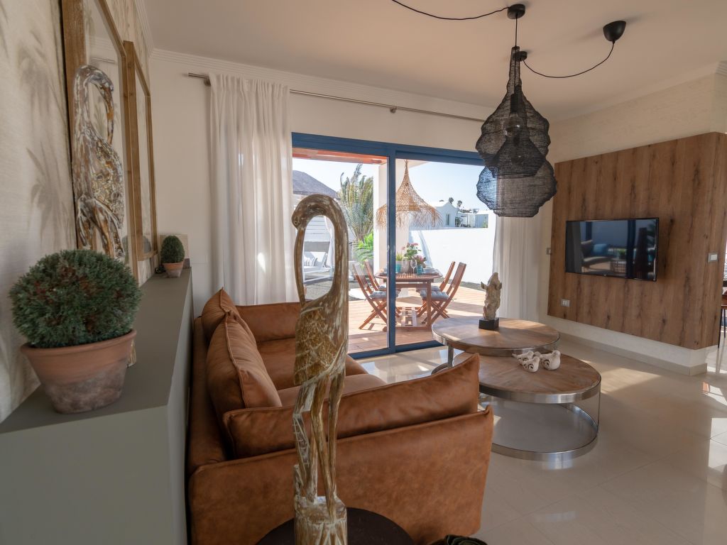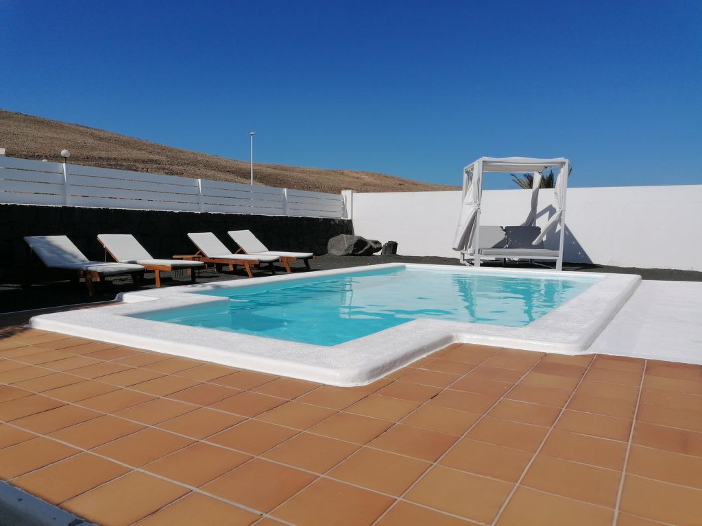 Schönes, komfortables, gemütliches Reihenhaus "Bellavista". Hausausstattung: Klimaanlage, Waschmaschine (zur Alleinbenutzung). Zufahrt & Parkmöglichkeiten: Parkplatz beim Haus. Ganzjährig Zufahrt bis zum Haus möglich. Auto empfohlen, Treppenweg mit 14 Stufen. Lage: ausserhalb von Playa Blanca 3 km, ruhige, erhöhte, sonnige Lage. Aussicht von der Wohnung auf das Meer und die Berge. Umgebung des Hauses: Grundstück (zur Alleinbenutzung, 500 m2), Swimming Pool (zur Alleinbenutzung, Länge 6 m x Breite 4 m, offen von 01.01. bis 31 .12.), Grill (zur Alleinbenutzung). Infrastruktur und Distanzen: Einkaufsgeschäft 2 km, Lebensmittelgeschäft 500 m, Restaurant 1.5 km, Badebucht 1.8 km, Sandstrand 1.8 km, Golfplatz 30 km, Tennis 800 m, Reiten 1.5 km, Bushaltestelle 500 m.