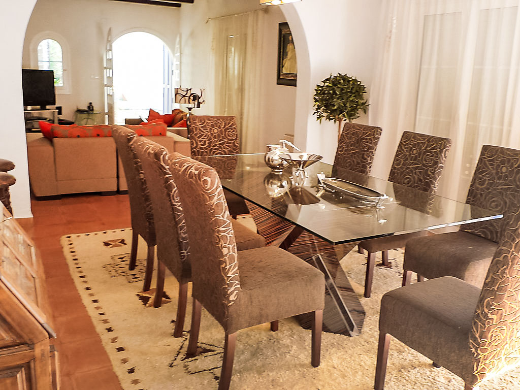 Pego: Grosse, komfortable Villa "Orange Haven", umgeben von Bäumen und Feldern. 2 km vom Zentrum von Pego, ruhige, sonnige Lage, 9 km vom Meer, in einer Sackgasse. Zur Alleinbenutzung: Grundstück 2'300 m2 (eingezäunt), grosser Terrassengarten mit Rasen und Pflanzen, Schwimmbad eckig, geschützt (8 x 4 m, 01.01.-31.12.). Aussendusche, Grillhaus. Steile, schmale Zufahrt. Parkplatz auf dem Grundstück. Einkaufsgeschäft 2 km, Supermarkt 2 km, Einkaufszentrum 15 km, Restaurant 2 km, Sandstrand 9 km, Park "natural Marjal" 3 km. Golfplatz (18 Loch) 9 km. Bitte beachten: Fahrzeug empfohlen. Der Besitzer akzeptiert keine Jugendgruppen.