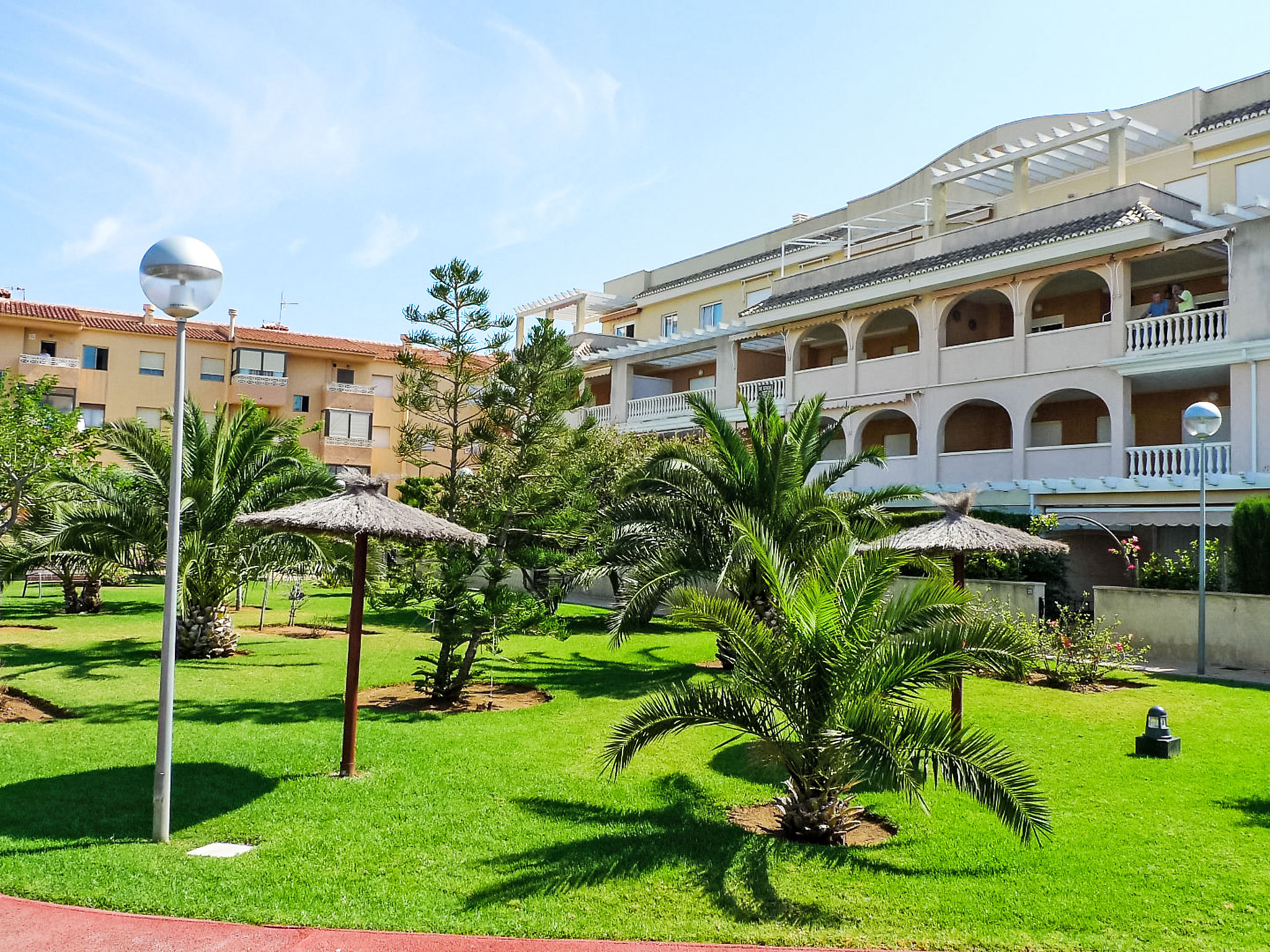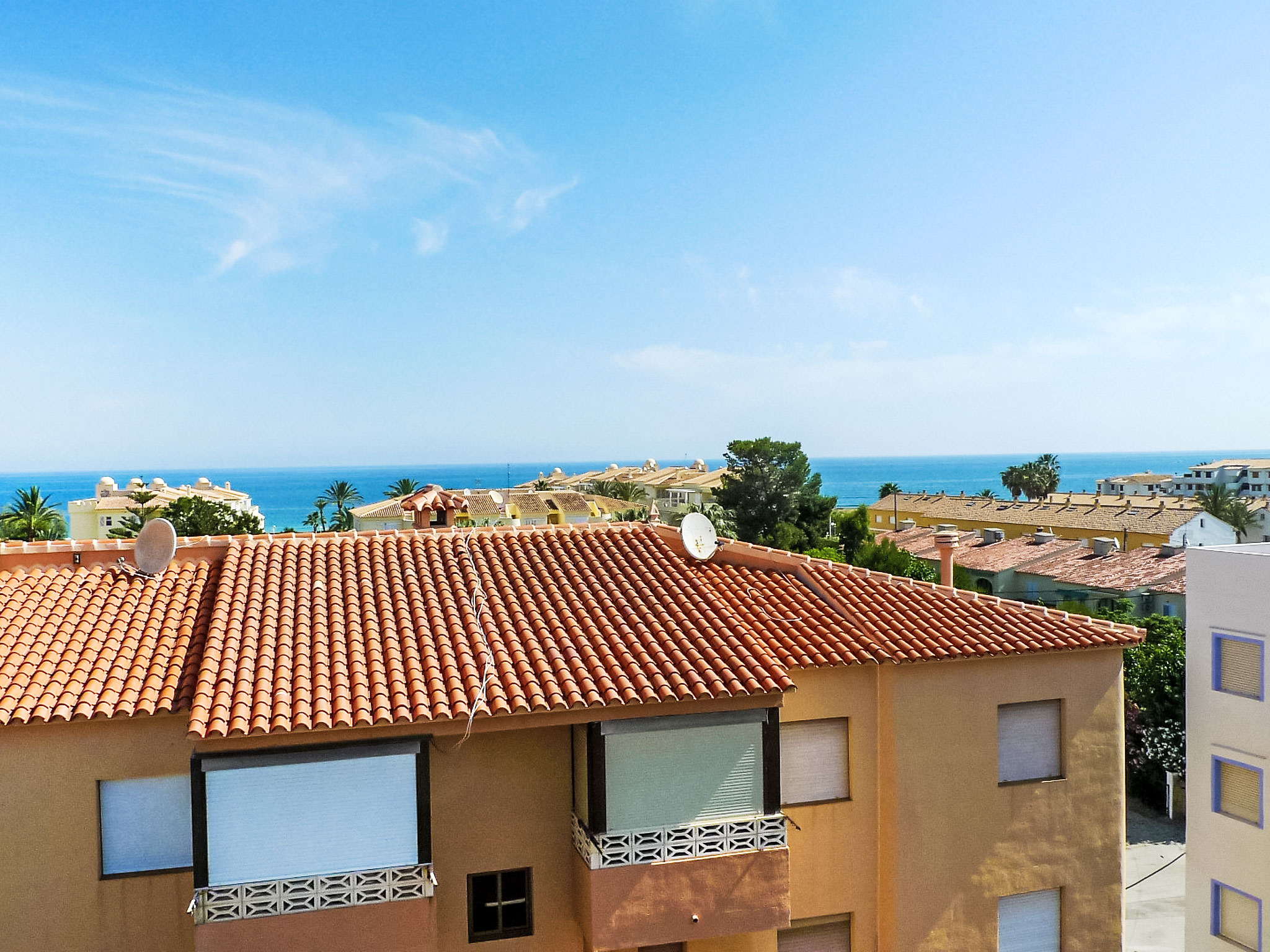 Schönes, gemütliches Appartementhaus "Luz del Mediterraneo", auf 3 Stockwerken, Baujahr 2001. 5 km vom Zentrum von Dénia, im Bezirk Les Marines, 200 m vom Meer, 180 m vom Strand, Richtung Westen. Zur Mitbenutzung: grosser, schöner, gepflegter Garten (eingezäunt) mit Rasen und Pflanzen, Schwimmbad (20 x 11 m, 230 - 80 cm tief, saisonale Verfügbarkeit: 01.Jan.-31.Dez.). Kinderbecken, Aussendusche. Im Hause: Fahrstuhl. Gemeinschaftsgarage. Einkaufsgeschäft 300 m, Supermarkt 500 m, Restaurant, Café 250 m, Bushaltestelle 50 m, Sandstrand "Els Molins" 250 m. Sporthafen 5 km, Golfplatz (18 Loch) 2 km. Der Besitzer akzeptiert keine Jugendgruppen.