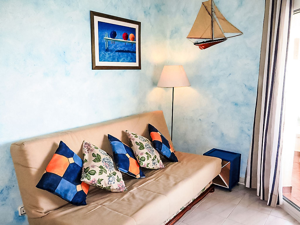2-Zimmer-Wohnung 30 m2 im 5. Stock. Hell, vollständig renoviert im Jahre 2014, komfortabel und schön eingerichtet: Wohn-/Esszimmer mit 1 Diwanbett, Digital-TV und Flachbildschirm. Ausgang zum Balkon. 1 Zimmer mit 1 franz. Bett (150 cm, Länge 190 cm). Offene Küche (Backofen, 2 Glaskeramikherd Platten, Mikrowelle) mit Esstisch. Dusche/WC. Balkon 5 m2. Balkonmöbel. Sehr schöne Sicht auf das Meer, die Berge und den Kanal. Zur Verfügung: Waschmaschine. Bitte beachten: TV nur ES, FR. HUTG016663