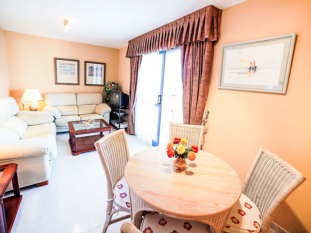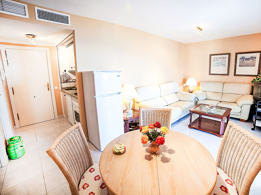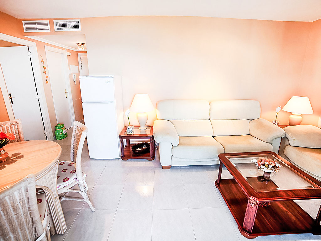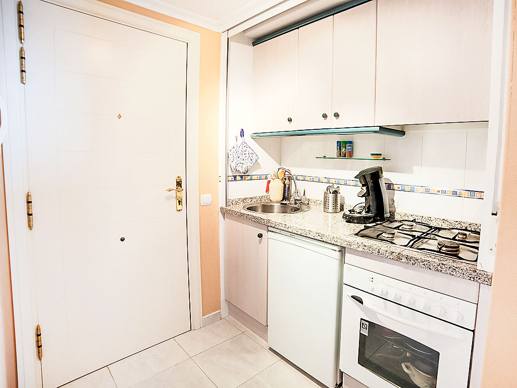 "Turquesa Beach 03", 2-Zimmer-Wohnung 56 m2 im 12. Stock. Komfortabel eingerichtet: Wohn-/Esszimmer mit Sat-TV, Klimaanlage und Warmluftheizung. Ausgang zur Terrasse. 1 Zimmer mit 1 franz. Bett (135 cm, Länge 190 cm). Kochnische (4 Kochplatten, Backofen, Geschirrspüler, Toaster, Wasserkocher, Mikrowelle, elektrische Kaffeemaschine). Bad/Bidet/WC. Terrassenmöbel. Panoramasicht auf das Meer und den Hafen. Zur Verfügung: Waschmaschine, Bügeleisen, Haartrockner. Garage Nr. G 135. AT-442079-A