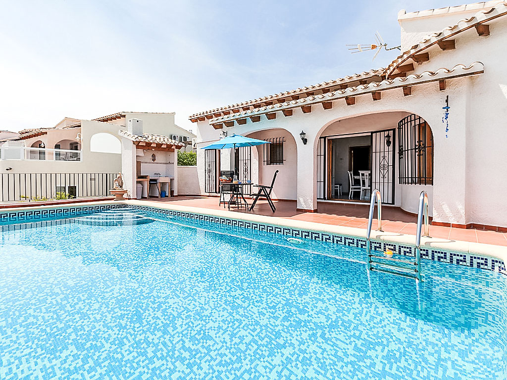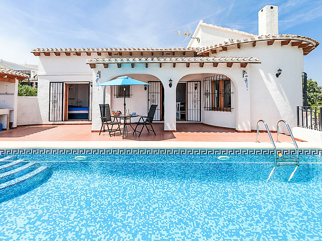 Monte Pego 15 km von Denia: Sehr schöne, komfortable Villa "Jillian". Ruhige, sonnige, erhöhte Lage im Villenviertel, verkehrsberuhigte Zone, 7 km vom Meer, 7 km vom Strand, in einer Sackgasse. Zur Alleinbenutzung: schöner Terrassengarten (eingezäunt), Schwimmbad (4 x 8 m, 90 - 190 cm tief, 01.01.-31.12.). Im Hause: Waschmaschine, Wäschetrockner. Parkplatz (für 2 Autos).