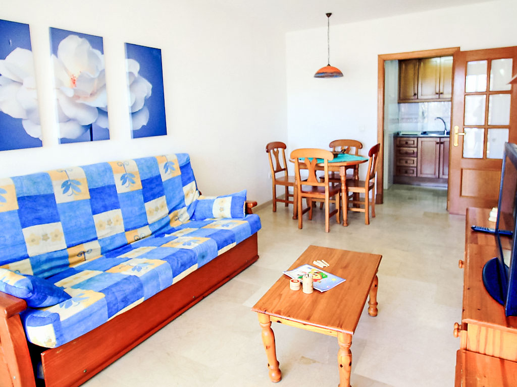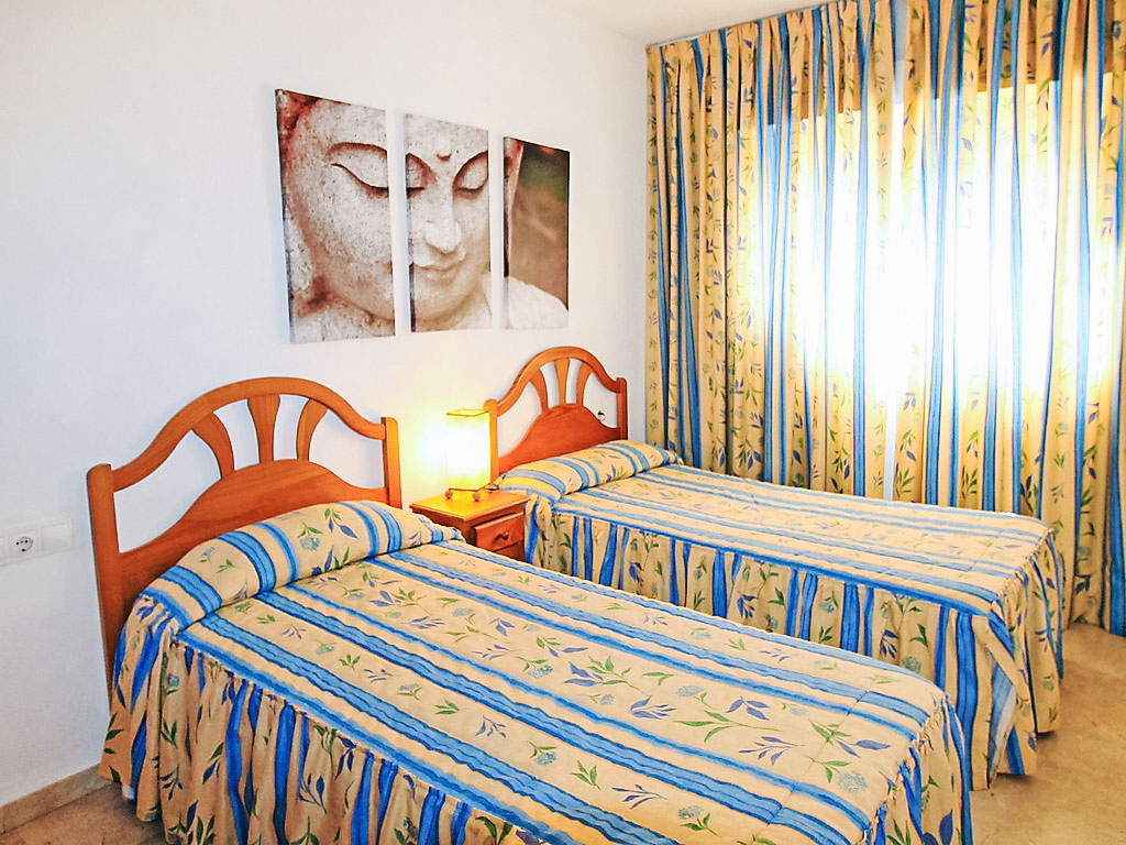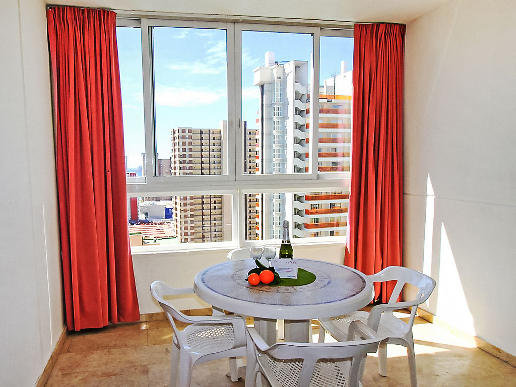 "Gemelos", 2-Zimmer-Wohnung 38 m2 im 15. Stock. Zweckmässig und komfortabel eingerichtet: Wohn-/Esszimmer mit 1 Doppeldiwanbett und Digital-TV. Ausgang zur Terrasse. 1 Zimmer mit 2 Betten (90 cm, Länge 190 cm). Küche (Backofen, 4 Glaskeramikherd Platten, Toaster, Wasserkocher, Mikrowelle, Tiefkühler, elektrische Kaffeemaschine). Bad, Dusche/WC. Sicht auf das Schwimmbad, den Garten und die Ortschaft. Zur Verfügung: Waschmaschine, Bügeleisen, Haartrockner. Parkplatz Nr. 134. AT321866BM
