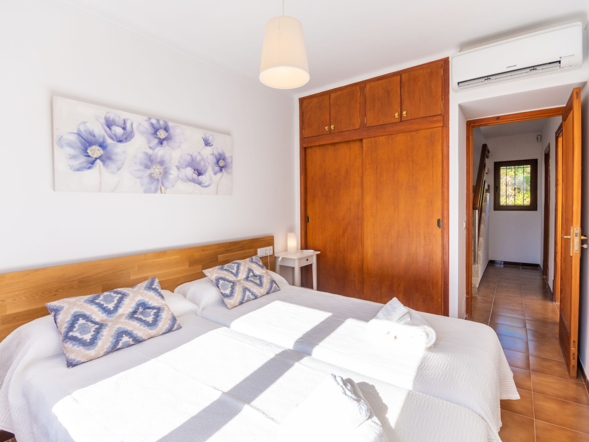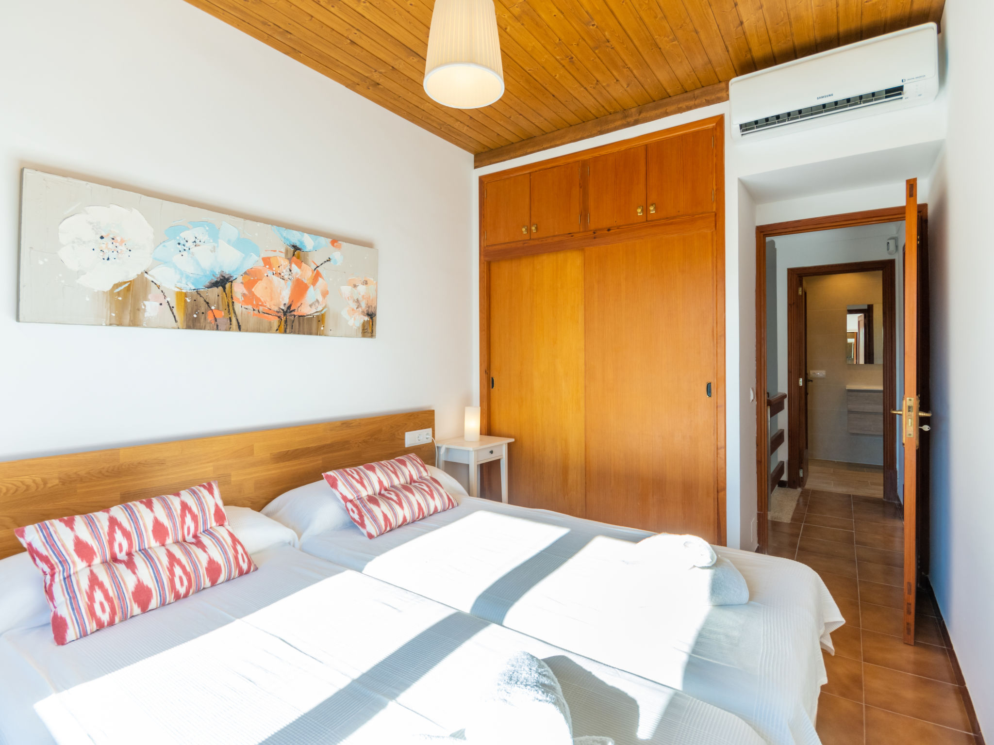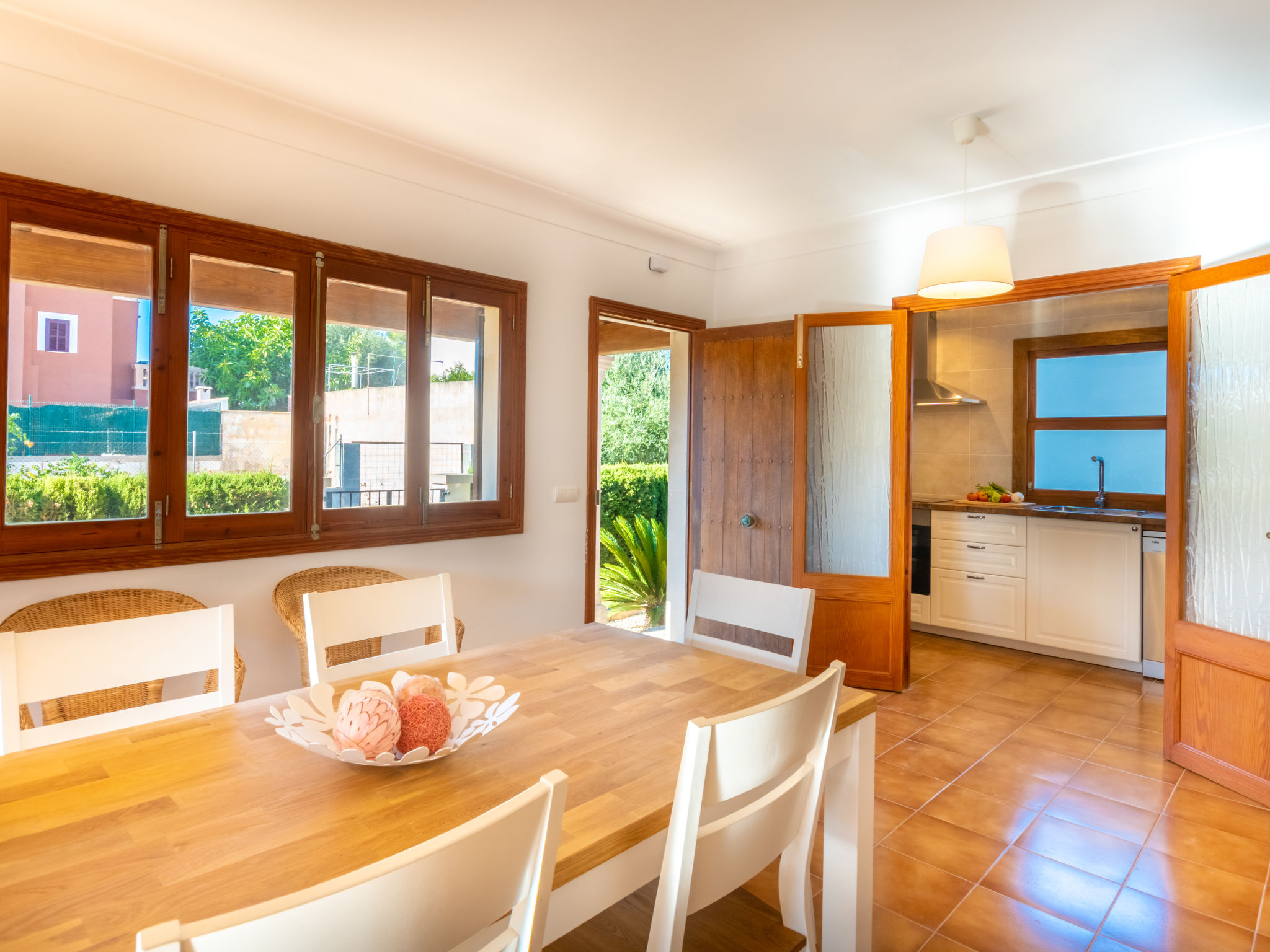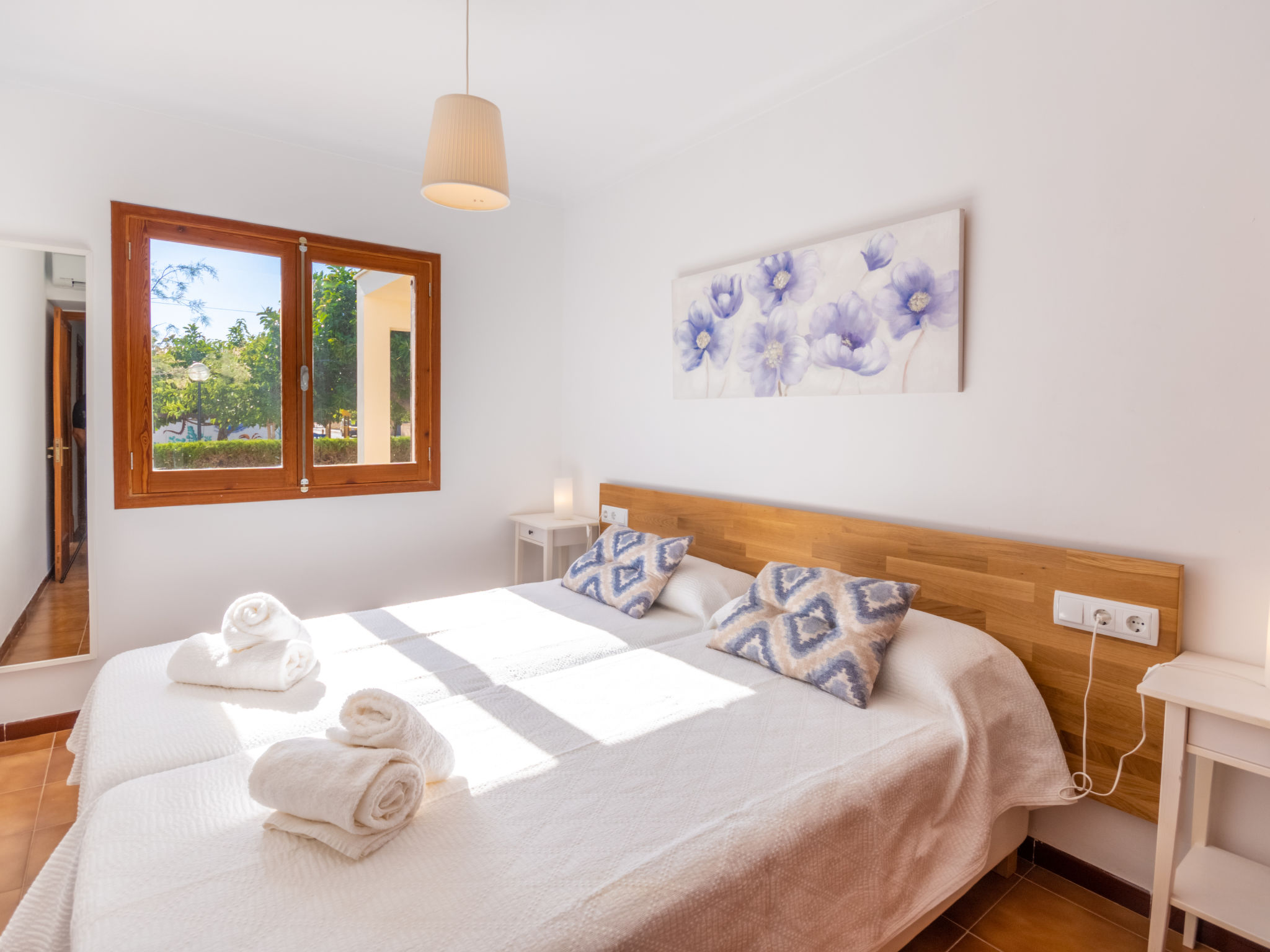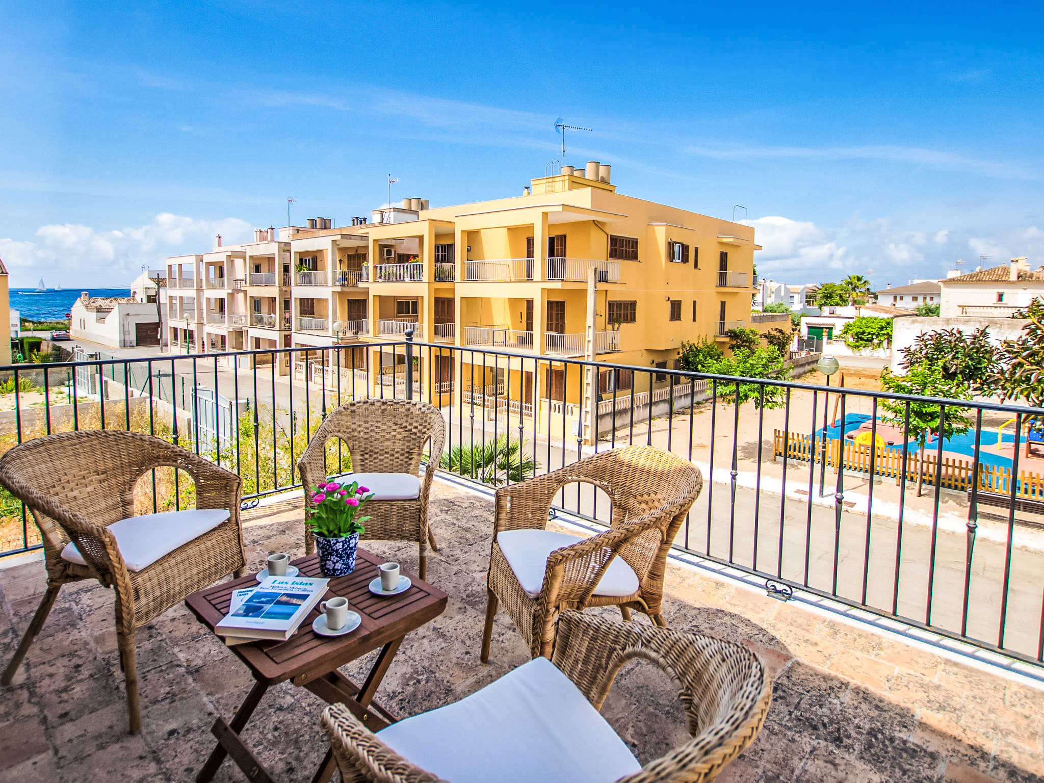 "Es Trenc Beach House", 6-Zimmer-Villa 200 m2 auf 2 Stockwerken. Objekt geeignet für 8 Erwachsene. Geräumig, vollständig renoviert, sehr komfortabel und gemütlich eingerichtet: grosses Wohn-/Esszimmer mit Panoramafenster mit offenem Kamin, Esstisch, Klimaanlage und Warmluftheizung. Ausgang zur Loggia, zum Gartensitzplatz. 1 grosses Doppelzimmer mit Panoramafenster mit 1 franz. Bett, Klimaanlage und Warmluftheizung. 1 grosses Doppelzimmer mit Panoramafenster mit 2 Betten (90 cm), Klimaanlage und Warmluftheizung. Küche (Backofen, 1 Glaskeramikherd Platte, Mikrowelle, Tiefkühler, elektrische Kaffeemaschine). Bad/Dusche/Bidet/WC mit Eckbadewanne. Obergeschoss: grosses Wohnzimmer mit Panoramafenster mit Sat-TV, Digital-TV, Flachbildschirm, Radio, Stereoanlage, Klimaanlage und Warmluftheizung. Ausgang zum Balkon. (Leiter) 1 grosses Doppelzimmer mit Panoramafenster mit 1 franz. Bett, Klimaanlage und Warmluftheizung. (Leiter) 1 grosses Doppelzimmer mit 2 Betten (90 cm), Klimaanlage und Warmluftheizung. Bad/Dusche/Bidet/WC mit Eckbadewanne. Grosser Balkon, grosser Gartensitzplatz, Rasen. Terrassenmöbel, Balkonmöbel, Gartengrill, Liegestühle, Loggia, Abstellkammer. Eingeschränkte Sicht auf die Ortschaft und das Meer. Zur Verfügung: Waschmaschine, Wäschetrockner, Bügeleisen, Kinderhochstuhl, Babybett, Haartrockner. Internet (Wireless LAN, gratis). Geeignet für Familien. L12E7464