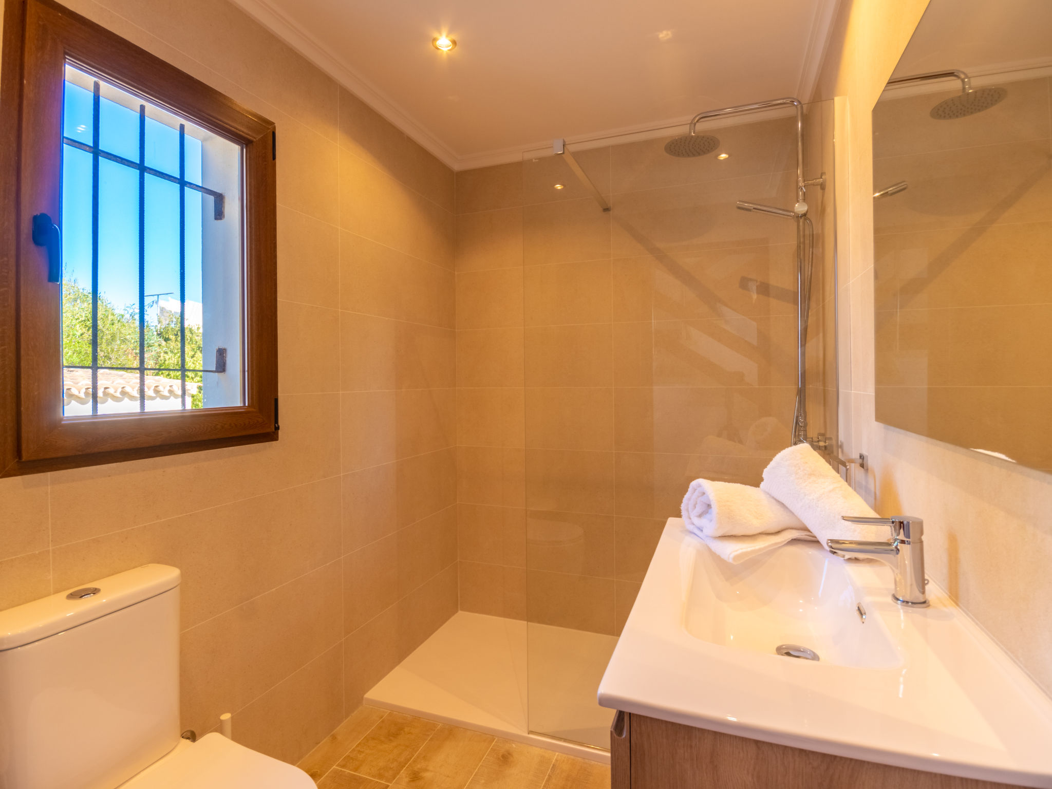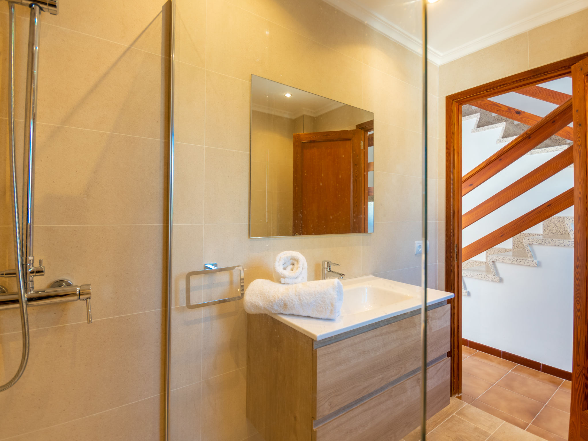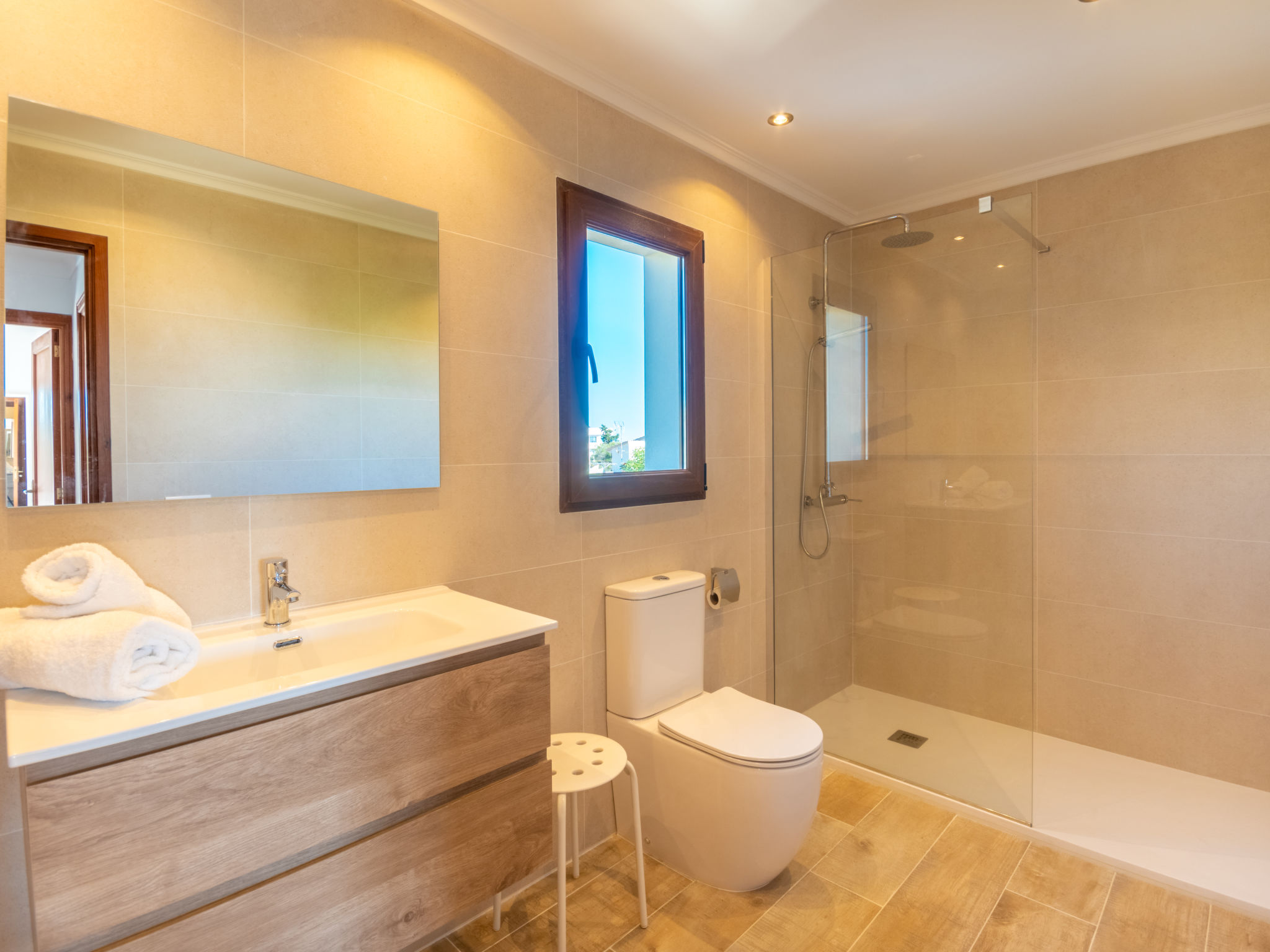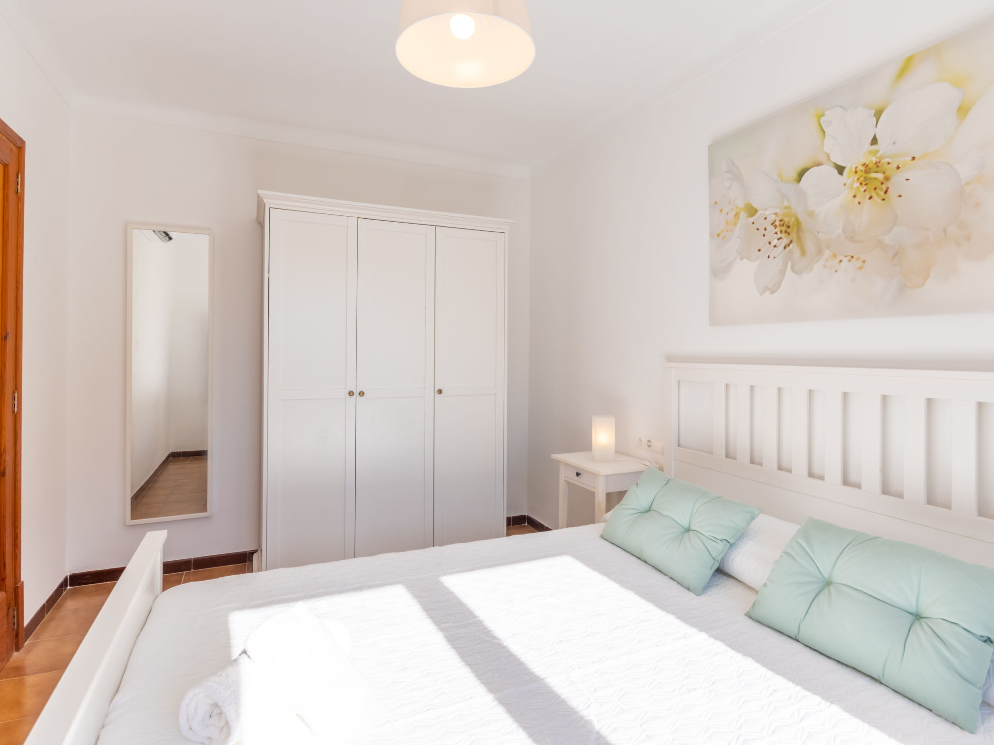 "Es Trenc Beach House", 6-Zimmer-Villa 200 m2 auf 2 Stockwerken. Objekt geeignet für 8 Erwachsene. Geräumig, vollständig renoviert, sehr komfortabel und gemütlich eingerichtet: grosses Wohn-/Esszimmer mit Panoramafenster mit offenem Kamin, Esstisch, Klimaanlage und Warmluftheizung. Ausgang zur Loggia, zum Gartensitzplatz. 1 grosses Doppelzimmer mit Panoramafenster mit 1 franz. Bett, Klimaanlage und Warmluftheizung. 1 grosses Doppelzimmer mit Panoramafenster mit 2 Betten (90 cm), Klimaanlage und Warmluftheizung. Küche (Backofen, 1 Glaskeramikherd Platte, Mikrowelle, Tiefkühler, elektrische Kaffeemaschine). Bad/Dusche/Bidet/WC mit Eckbadewanne. Obergeschoss: grosses Wohnzimmer mit Panoramafenster mit Sat-TV, Digital-TV, Flachbildschirm, Radio, Stereoanlage, Klimaanlage und Warmluftheizung. Ausgang zum Balkon. (Leiter) 1 grosses Doppelzimmer mit Panoramafenster mit 1 franz. Bett, Klimaanlage und Warmluftheizung. (Leiter) 1 grosses Doppelzimmer mit 2 Betten (90 cm), Klimaanlage und Warmluftheizung. Bad/Dusche/Bidet/WC mit Eckbadewanne. Grosser Balkon, grosser Gartensitzplatz, Rasen. Terrassenmöbel, Balkonmöbel, Gartengrill, Liegestühle, Loggia, Abstellkammer. Eingeschränkte Sicht auf die Ortschaft und das Meer. Zur Verfügung: Waschmaschine, Wäschetrockner, Bügeleisen, Kinderhochstuhl, Babybett, Haartrockner. Internet (Wireless LAN, gratis). Geeignet für Familien. L12E7464