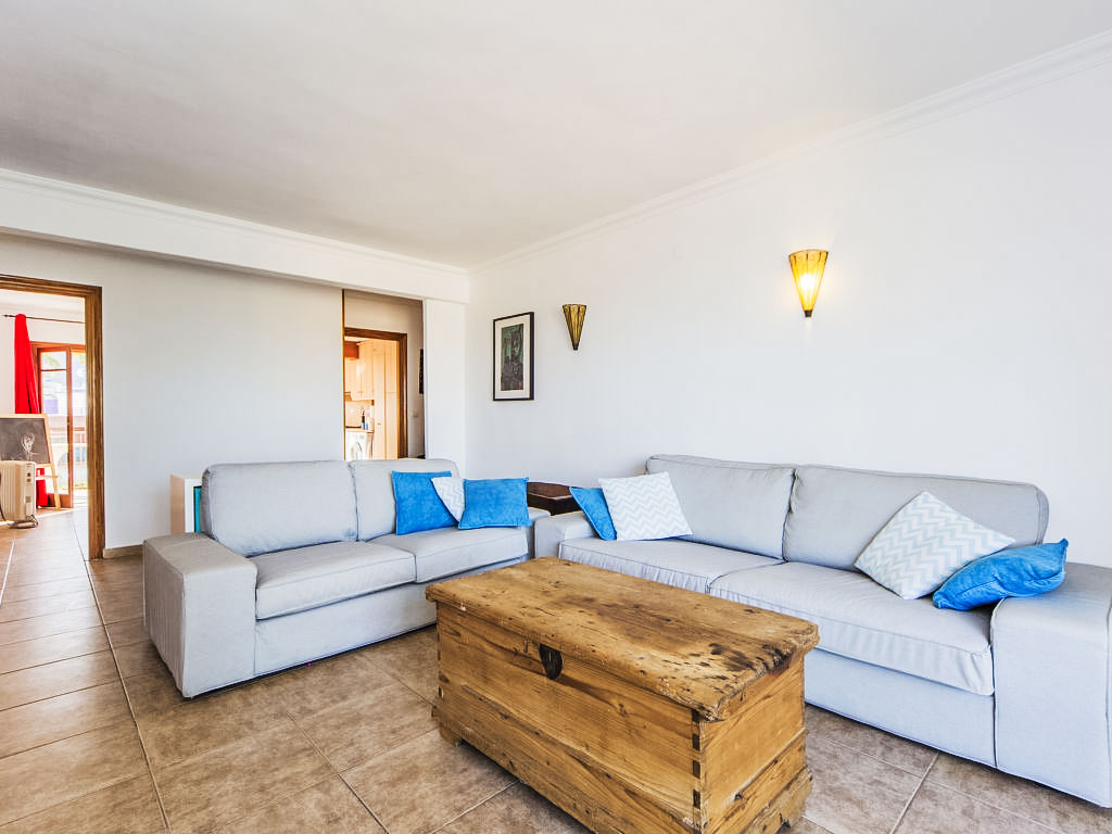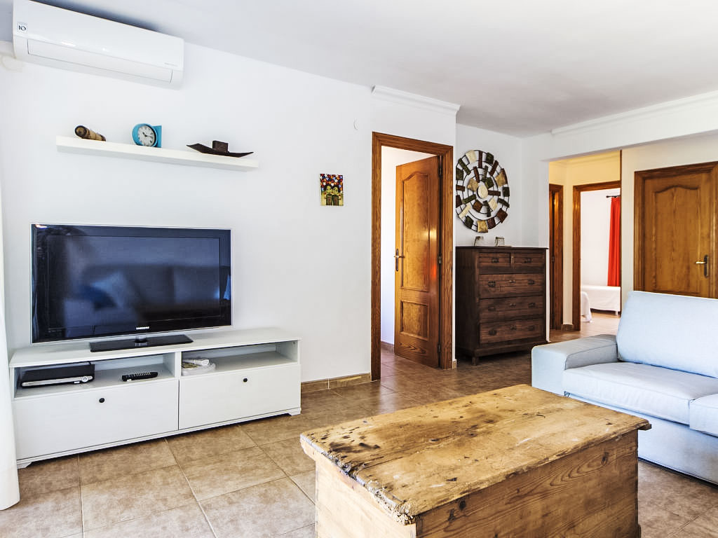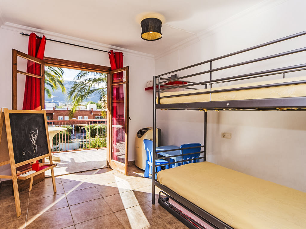 "Sorts de la Mar", 4-Zimmer-Wohnung im 2. Stock. Hell, zweckmässig eingerichtet: Wohn-/Esszimmer mit Digital-TV, Flachbildschirm, Klimaanlage und Warmluftheizung. Ausgang zur Terrasse. 1 Zimmer mit 1 franz. Bett (150 cm, Länge 200 cm), Dusche/WC, Klimaanlage und Warmluftheizung. 1 Zimmer mit 2 Betten (90 cm), E-Heizung. 1 Zimmer mit 1 Bett (90 cm), 1 Etagenbetten (90 cm), E-Heizung. Küche (Backofen, Geschirrspüler, 4 Glaskeramikherd Platten, Toaster, Mikrowelle, Tiefkühler, elektrische Kaffeemaschine, Kapseln für die Kaffeemaschine (dolce gusto)). Ausgang zum Balkon. Dusche/WC. E-Heizung. Grosser Balkon. Eingeschränkte Sicht auf das Meer. Zur Verfügung: Waschmaschine, Bügeleisen, Babybett bis 2 Jahre, Haartrockner. Internet (Wireless LAN, gratis). 1 Haustier/Hund erlaubt. AT-452710-A