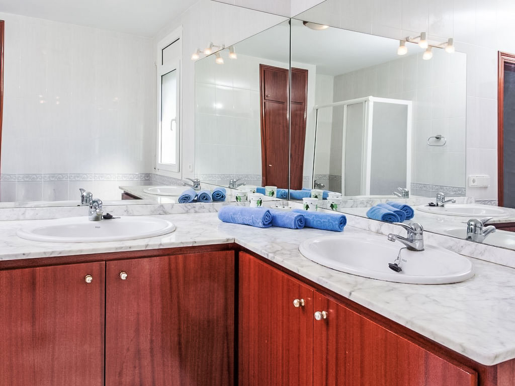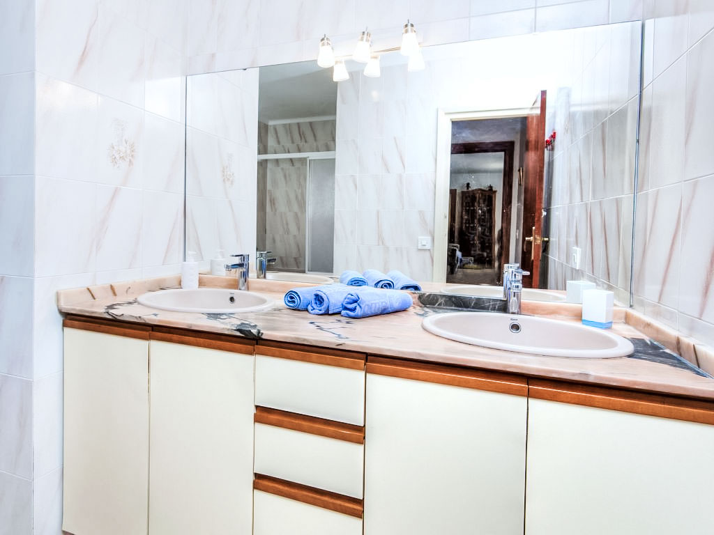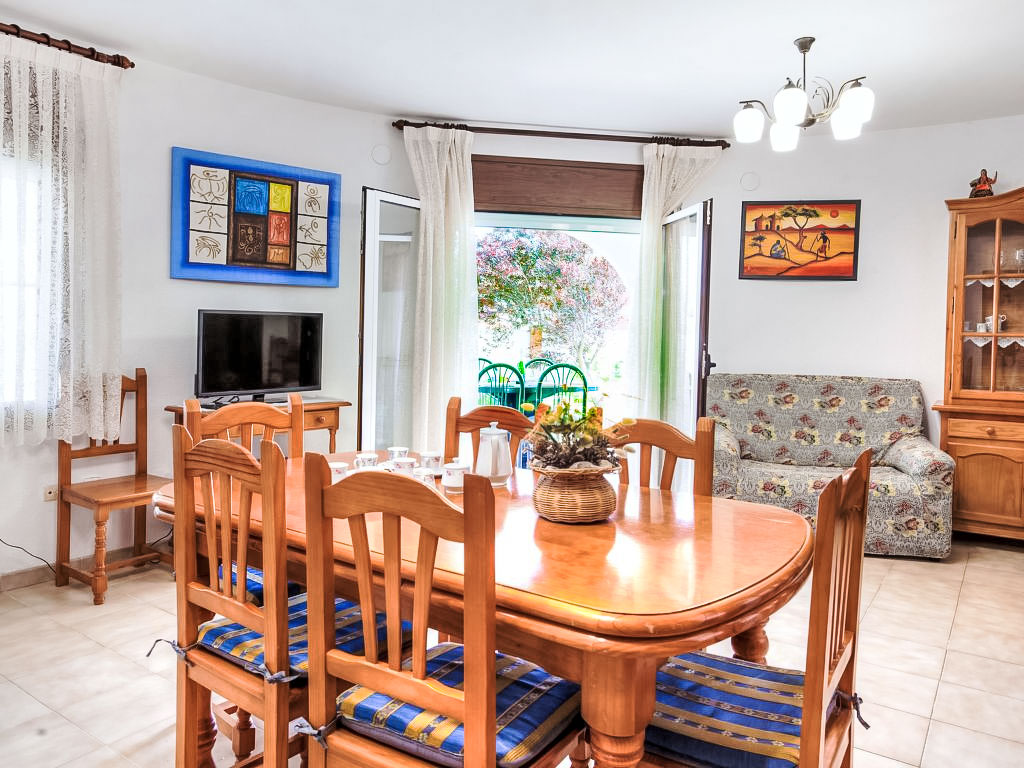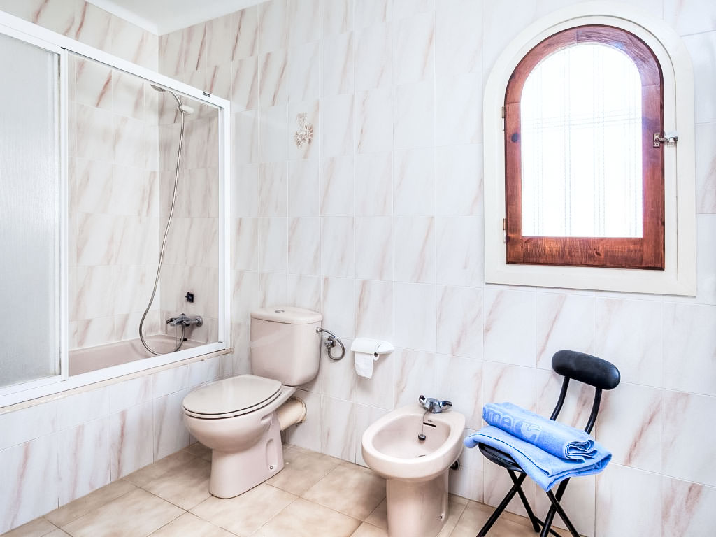 "Villa Mar", 5-Zimmer-Villa 105 m2 auf 2 Stockwerken. Geräumig, komfortabel und gemütlich eingerichtet: grosses Wohn-/Esszimmer mit Esstisch, Sat-TV, Digital-TV und Klimaanlage. Ausgang zum Gartensitzplatz. 1 Zimmer mit 2 Betten (90 cm, Länge 190 cm). 1 Zimmer mit 1 franz. Bett (150 cm, Länge 190 cm). Ausgang zum Gartensitzplatz. Kleine Küche (Backofen, Geschirrspüler, 4 Glaskeramikherd Platten, Toaster, Wasserkocher, Mikrowelle, elektrische Kaffeemaschine). Ausgang zum Gartensitzplatz. Bad/Bidet/WC, Dusche/WC. Obergeschoss: 1 Zimmer mit 2 Betten (90 cm, Länge 190 cm). Ausgang zur Terrasse. 1 Zimmer mit 1 franz. Bett (150 cm, Länge 190 cm). Durchgangszimmer mit Klimaanlage. Bad/Bidet/WC, Doppelwaschbecken. Terrasse, Gartensitzplatz. Terrassenmöbel, Gartengrill (mobil). Zur Verfügung: Waschmaschine, Bügeleisen, Haartrockner. Parkplatz (eingezäunt, 2 Autos) beim Haus. Bitte beachten: geeignet für Familien. 2 Haustiere/Hunde erlaubt. TV nur ES, DE, FR. HUTT007606