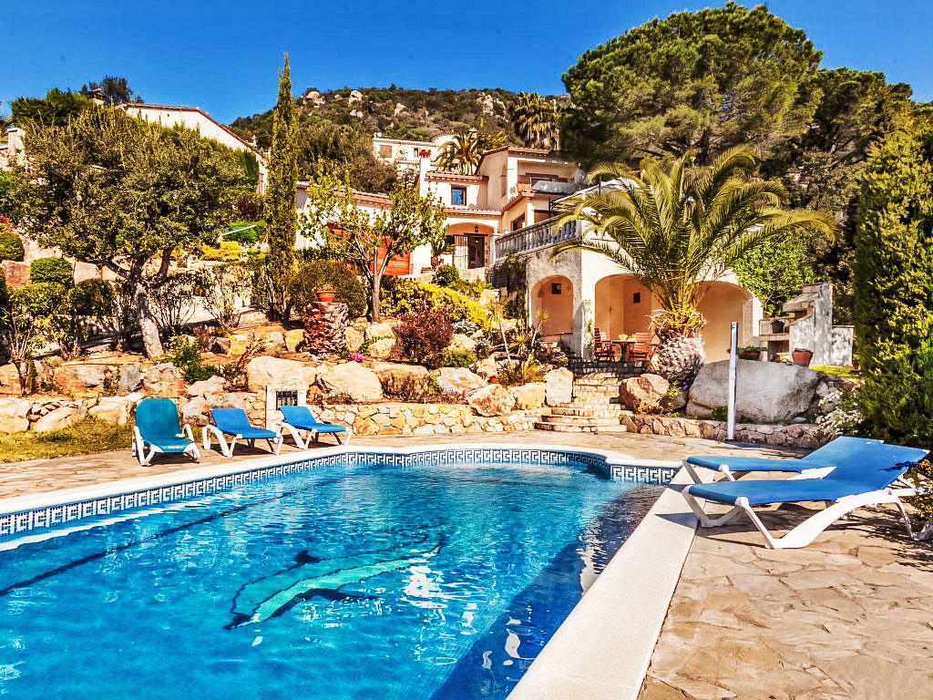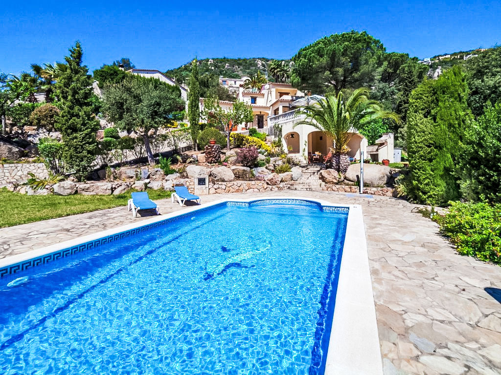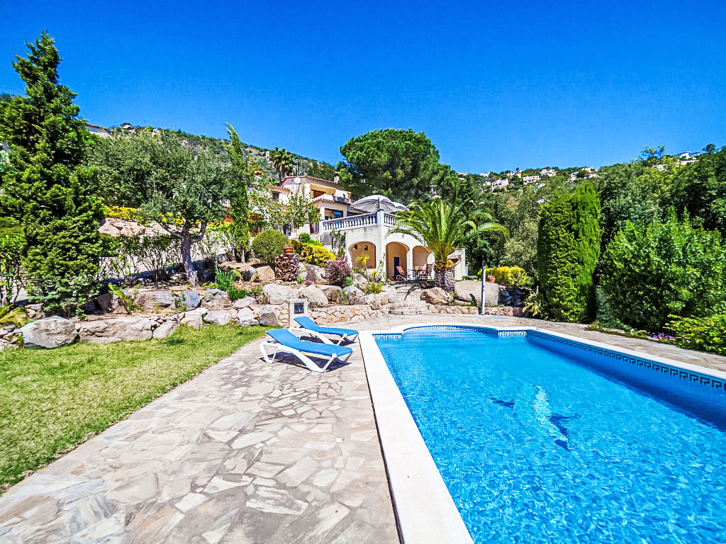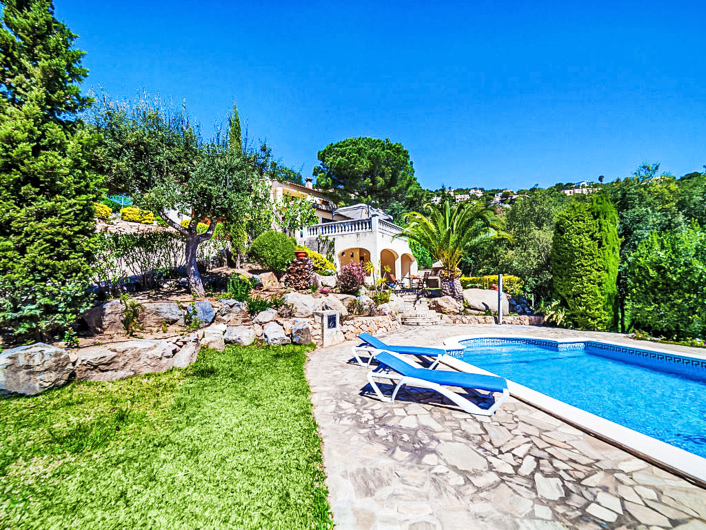 Vizcondado de Cabanyes 3 km von Calonge: Schöne, komfortable Villa "Venecia", auf 2 Stockwerken. 5 km vom Meer. Zur Alleinbenutzung: Naturgarten 1'000 m2, wunderschöner Garten zum Entspannen, Schwimmbad eckig (10 x 5 m, 01.05.-30.10.). Aussendusche, Laube, Pergola, Terrasse, Gartenmöbel, Grill, Parkplatz beim Haus. Supermarkt 1.8 km, Restaurant 700 m, Sandstrand "Sant Antoni de Calonge" 5 km. Sporthafen 8 km, Golfplatz 6 km, Tennis 2 km, Reitstall 12 km. Bitte beachten: Fahrzeug empfohlen.