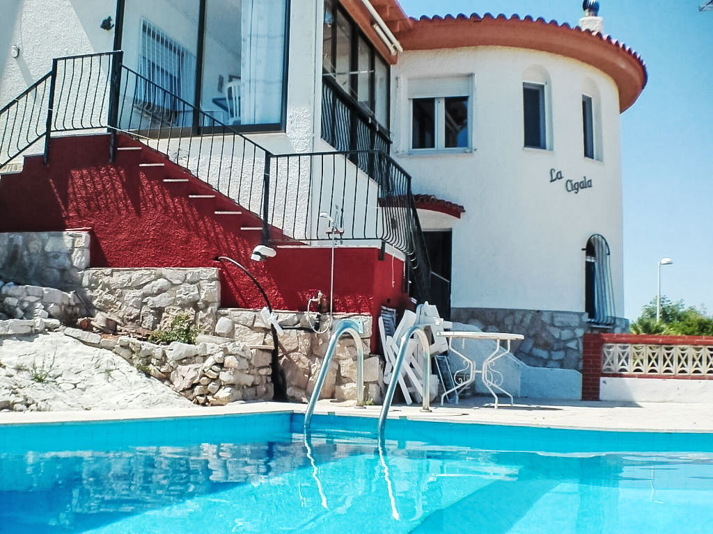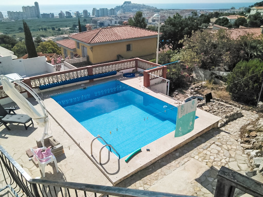 La Cigala: Gemütliches Haus "La Cigala". Ausserhalb des Ortes, 1 km vom Zentrum von Peñiscola, am Hang, 1 km vom Meer, 1.2 km vom Strand. Zur Alleinbenutzung: Grundstück (eingezäunt), Schwimmbad eckig (110 - 192 cm tief, 01.06.-15.10.). Aussendusche, Grill, Einzelgarage beim Haus. Einkaufsgeschäft 1 km, Lebensmittelgeschäft 1 km, Supermarkt 1 km, Einkaufszentrum 1 km, Restaurant, Café 600 m, Fahrradverleih 1 km, Zentrum zu Fuss in 20 Minuten erreichbar, Bushaltestelle "Peñiscola" 1 km, Bahnstation "Vinaroz" 20 km, Sandstrand "Peñiscola" 1 km.