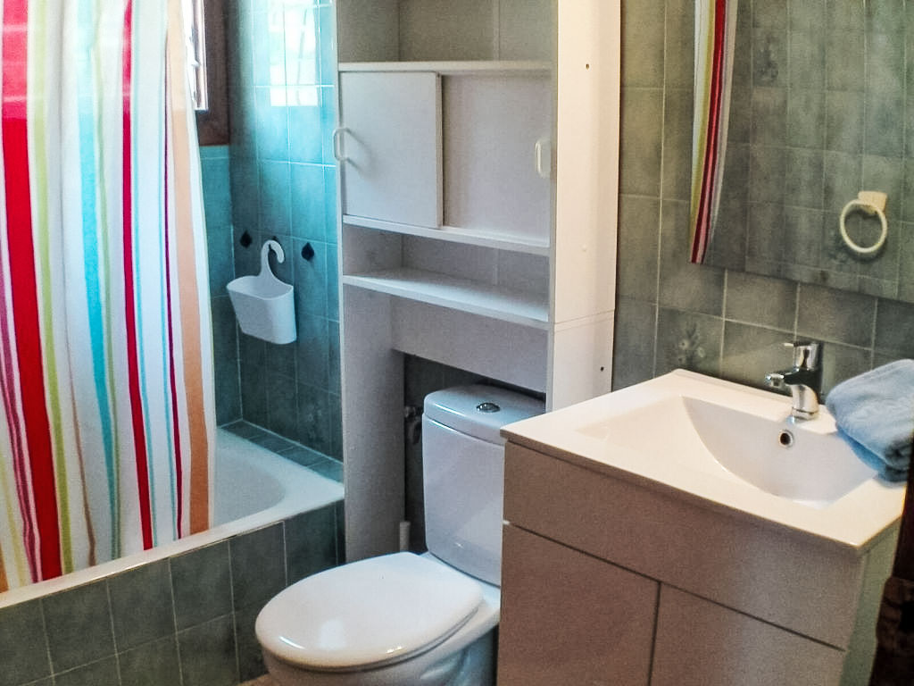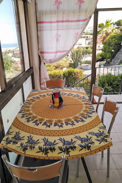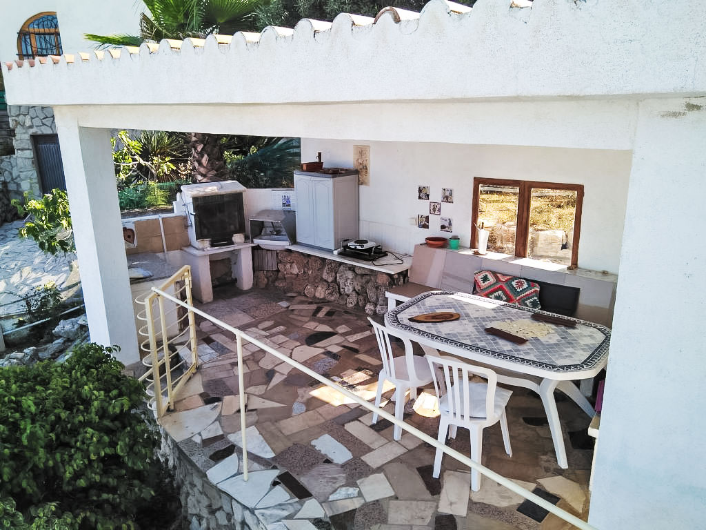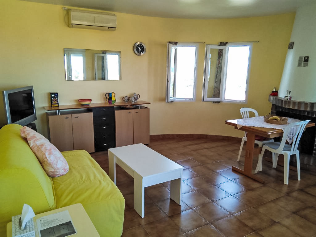 "La Cigala", 3-Zimmer-Haus 66 m2, im erhöhten Erdgeschoss. Einfach eingerichtet: Wohnzimmer mit 1 Diwanbett (110 cm, Länge 190 cm), TV mietbar. Ausgang zur Loggia. 1 Zimmer mit 1 Doppelbett (1 x 150 cm, Länge 190 cm). 1 Zimmer mit 2 Betten (90 cm, Länge 200 cm). Kleine Küche (Geschirrspüler, Mikrowelle, elektrische Kaffeemaschine). Bad/WC. Unteres Geschoss: (Aussentreppe). Dusche/WC. Schöne Sicht auf das Meer. Zur Verfügung: Waschmaschine. Parkplatz Nr. 5. Geeignet für Familien. AT34489CS