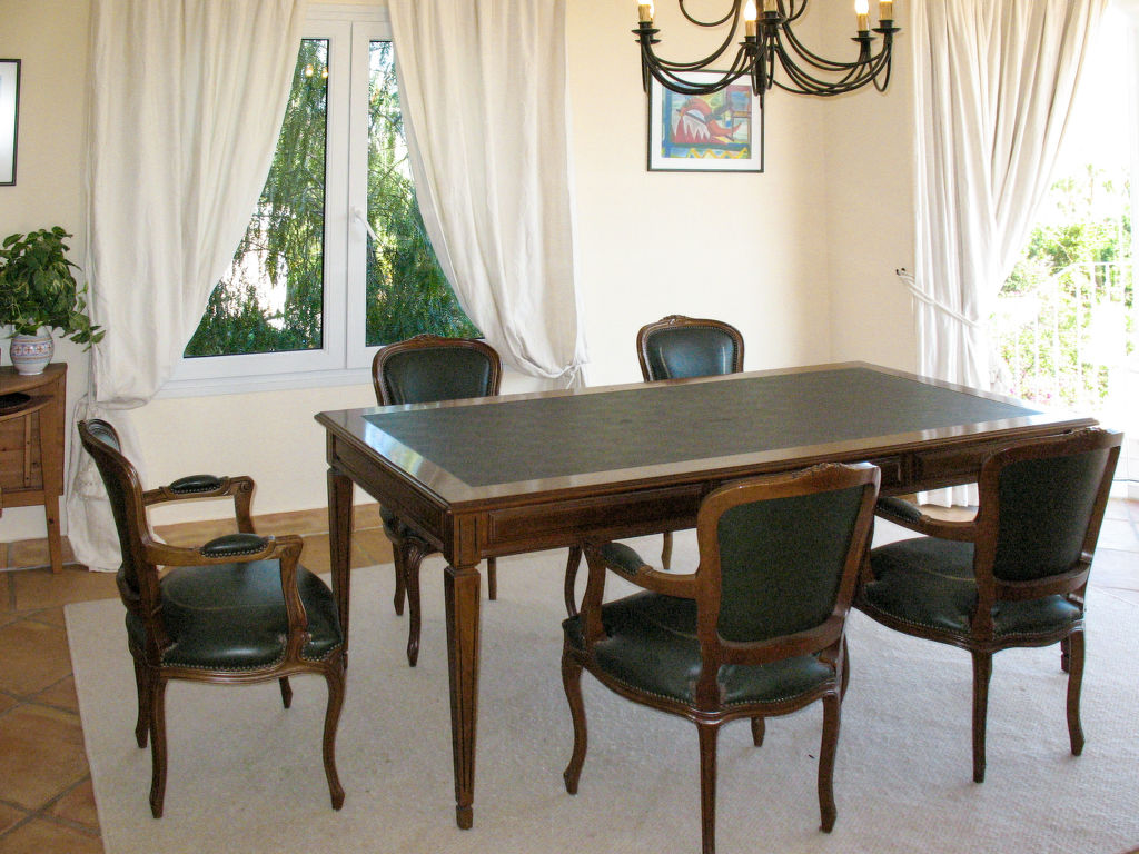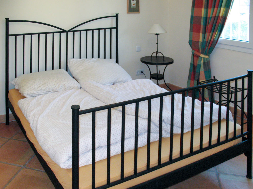 6-Zimmer-Haus, 2 Etagen, ca. 190 m². Über Terrasse Zugang zum Erdgeschoss: Wohnraum mit Sitzgruppe, Essplatz für 4 Personen, rustikaler Kochecke (2 Ceranfelder, Kaffeemaschine) und Terrassenausgang. Doppelzimmer mit Dusche/WC und Terrassenausgang. Doppelzimmer. Abstellraum mit Waschmaschine. Über Außentreppe Zugang zum Obergeschoss (keine interne Verbindung zum Erdgeschoss): Eingang in Wohnraum mit Sitzgruppe, Kamin und Ausgang zur überdachten Terrasse, offener Durchgang zum Esszimmer mit Essplatz für 8 Personen und Panoramafenster, durch Theke abgeteilte Küche (4 Ceranfelder, Backofen, Mikrowelle, Geschirrspüler, Kühlschrank, Kaffeemaschine). Doppelzimmer mit begehbarem Schrank, Dusche/WC/Doppelwaschbecken und Klimaanlage. Doppelzimmer. Bad/WC.Hinweis: Bei Buchung zum Preis für 4 Personen bleibt das Erdgeschoss mit Waschmaschine verschlossen.