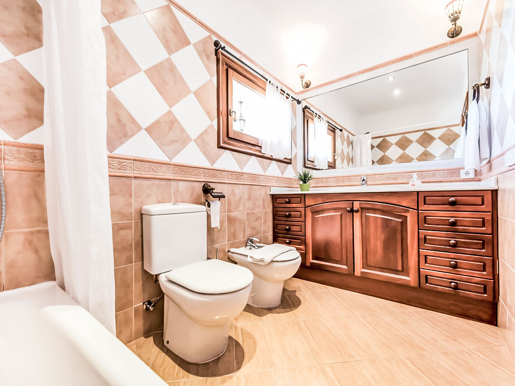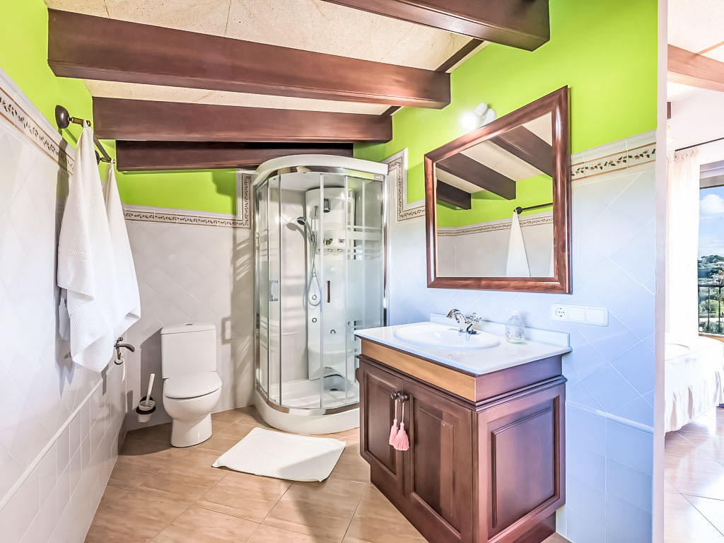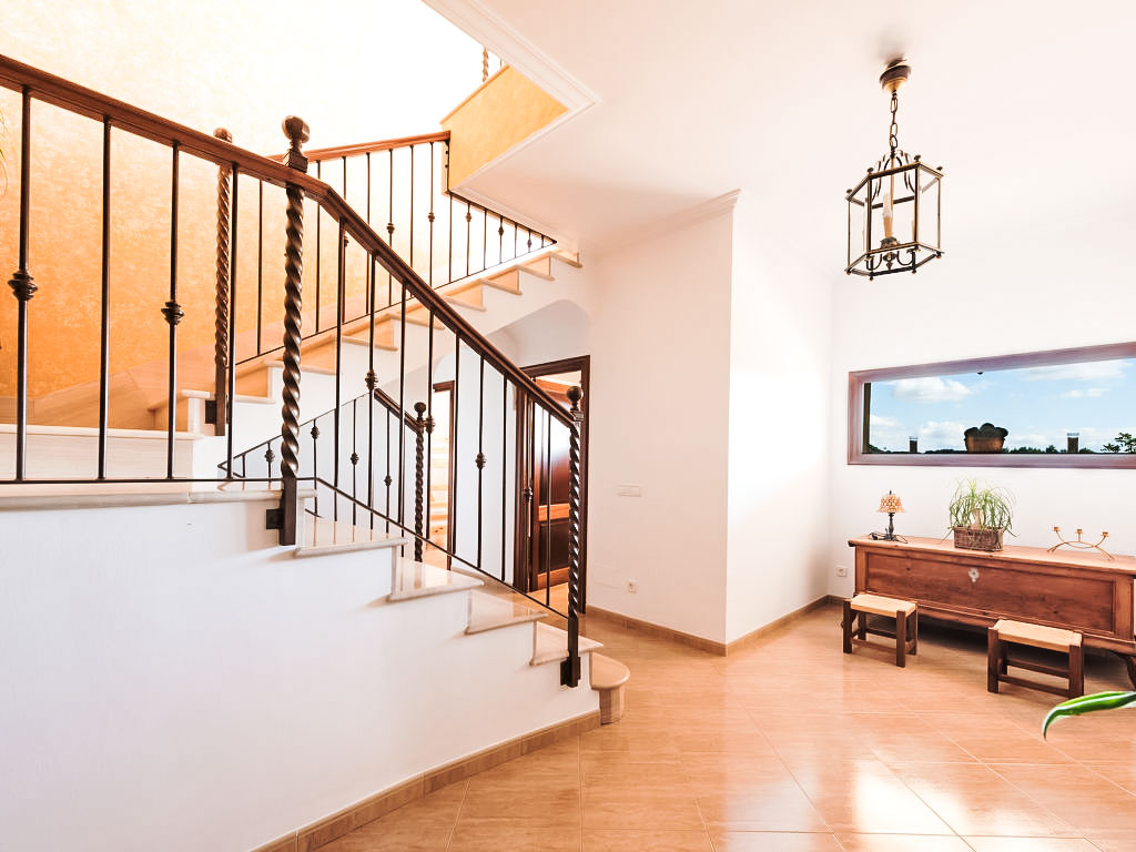 Sineu: Grosses, schönes Haus "Ses Vistes", auf 2 Stockwerken, renoviert. Im Ort, 400 m vom Zentrum von Sineu, ruhige, sonnige Lage, 2.5 km vom Waldrand, 24 km vom Meer, 24 km vom Strand. Zur Alleinbenutzung: Aufstellpool rund (3 m Durchmesser, 01.05.-30.10.). Pergola (47 m2), Terrasse (47 m2), Gartenmöbel, Grill. Im Hause: Internetzugang, Wireless LAN, Einstellraum für Fahrräder, Klimaanlage, Waschmaschine. Einzelgarage beim Haus. Lebensmittelgeschäft 400 m, Supermarkt 500 m, Restaurant, Bar 400 m, Bäckerei 380 m, Fußgängerzone 400 m, Zentrum zu Fuss in 4 Minuten erreichbar, Bushaltestelle 400 m, Bahnstation 900 m, Sandstrand 24 km, Felsstrand 25 km, Freibad 900 m. Sporthafen 25 km, Golfplatz 15 km, Tennis 900 m, Reitstall 14 km, Sportzentrum 900 m. Bitte beachten: geeignet für Familien, geeignet für Senioren. Objekt geeignet für 4 Erwachsene Jugendgruppen nur auf Anfrage. Be- und Entladen am Ferienhaus möglich. Flugplatz 35 km vom Haus.