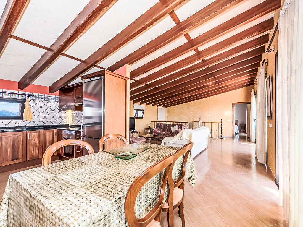 "Ses Vistes", 4-Zimmer-Haus 170 m2 auf 2 Stockwerken. Objekt geeignet für 4 Erwachsene. Geräumig und hell, sehr komfortabel und schön eingerichtet: 1 grosses Doppelzimmer mit Panoramafenster mit 1 franz. Bett (160 cm, Länge 200 cm). (Toaster, Wasserkocher). Bad/Dusche/Bidet/WC. Obergeschoss: offenes Wohn-/Esszimmer mit Schiebetür, Panoramafenster mit Esstisch, Sat-TV, Digital-TV, Flachbildschirm, Klimaanlage und Warmluftheizung. Ausgang zur Terrasse. 1 grosses Doppelzimmer mit Schiebetür, Panoramafenster mit 1 franz. Bett (180 cm, Länge 200 cm), Bad/Dusche/WC, Klimaanlage und Warmluftheizung. Ausgang zur Terrasse. Offene Küche (Backofen, Geschirrspüler, 4 Glaskeramikherd Platten, Mikrowelle, Tiefkühler, Grill, elektrische Kaffeemaschine) mit Klimaanlage und Warmluftheizung. Ausgang zur Terrasse. Komfortable Einrichtung im Landhausstil. Grosse Terrasse 47 m2. Terrassenmöbel, Balkonmöbel, Gartengrill (mobil), Liegestühle, Loggia. Herrliche Panoramasicht auf die Berge, die Landschaft und die Ortschaft. Zur Verfügung: Waschmaschine, Bügeleisen, Haartrockner. Internet (Wireless LAN, gratis). Garage. Geeignet für Familien. L95E16629