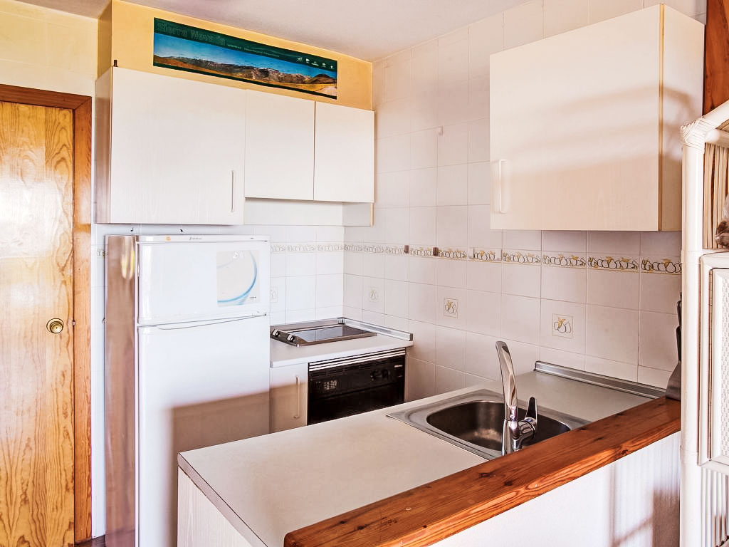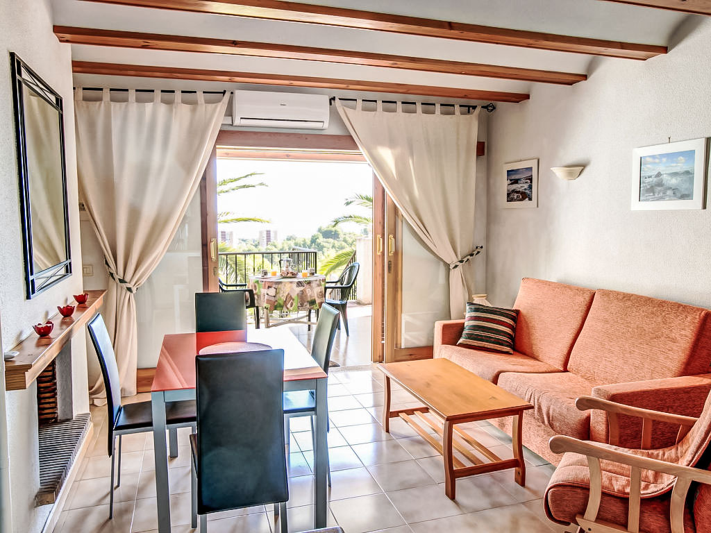 "Parque Denia", 2-Zimmer-Wohnung im 2. Stock. Einfach eingerichtet: Wohn-/Esszimmer mit 1 Diwanbett, Digital-TV, Klimaanlage und Warmluftheizung. Ausgang zur Terrasse. 1 Zimmer mit 1 franz. Bett. Offene Küche (Backofen, 2 Glaskeramikherd Platten, Mikrowelle, Tiefkühler). Bad/WC. Terrasse. Terrassenmöbel. Sehr schöne Sicht auf das Meer und die Landschaft. Zur Verfügung: Waschmaschine. Bitte beachten: TV nur ES, DE. AT-463152-A