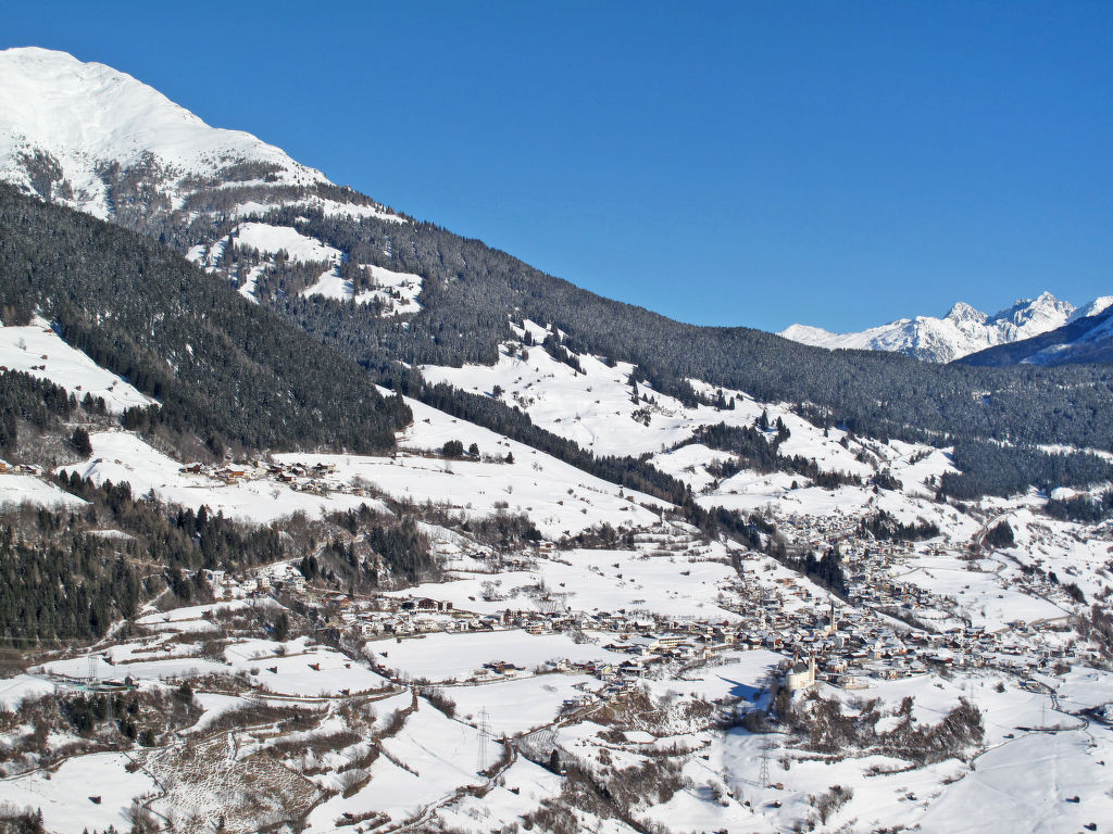 BURG BIEDENEGG, in Fliess liebevoll 'Schloss' genannt, steht in dominierender Lage hoch über Fliess. Herrlicher Rundblick über Ort, Tal und Berge. Ortsmitte mit Lebensmittelgeschäft ca. 850 m. Freibad 2 km. Supermarkt und Hallenbad (im Hotel Mozart) in Landeck, 8 km. Die aus dem 11. Jhdt. stammende Burg ist vollständig erhalten, Schutzmauern mit Tor, Pforte, Burghalle und Turm lassen das Mittelalter aufleben. Die Burg wurde in 8 großzügige Wohnungen umgewandelt, wovon eine gelegentlich vom Besitzer bewohnt wird. Über einen Vorraum erreicht man die große, hohe Burghalle in Naturstein, von der aus man intern, teils über Treppen, zu den einzelnen Wohnungen gelangt. Jede Wohnung, nach einem der vergangenen Burggeschlechter benannt, wird von dessen Wappen geziert. Burg Biedenegg bietet Sauna (montags 1x pro Woche im Preis inklusive, ansonsten € 6/Person), Kinderspielzimmer. Im Burggarten vor den Mauern (innerhalb des umzäunten Privatgrundstücks) einige Kinderspielgeräte und Liegewiese mit einigen Obstbäumen. Vor der Burgpforte Freisitz mit Mobiliar für ca. 30 Personen und Grill zur allgemeinen Nutzung. Großer Privatparkplatz vor den Burgmauern. Den Gästen von FIE 211 steht zusätzlich zu den jeweiligen Wohnungen das 'Schlosscafé' zur Verfügung. Dieses ehemalige Café (ca. 53 m²) bietet Essplätze für 20 Personen, Bartresen und eine schmale Küche (4 Platten, Backofen, Geschirrspüler, 2x Kühlschrank, Wasserkocher, Toaster). Es liegt im Erdgeschoss neben der Burgpforte mit Zugang von der Burghalle und hat einen eigenen Ausgang zum Freisitz. Die Ferienwohnungen sind rustikal mit schönen Holzmöbeln, teils handbemalten Bauernmöbeln stilvoll eingerichtet, der Burgatmosphäre bestens angepasst. Jeweils Parkettboden. Sat-TV. Internetzugang (WLAN, inklusive). Öl-Zentralheizung. Winter-Infos: Bergbahn/Skilift/Skischule: Venet-Süd 5,5 km, Fiss/Serfaus 21 km, Kaunertaler Gletscher 42 km. Skibushaltestelle ca. 150 m (kostenloser Pendelbus Fliess-Venet Süd). Rodelbahn 5,5 km. Langlaufloipe 2 km. Skiraum mit Skischuhheizung.
